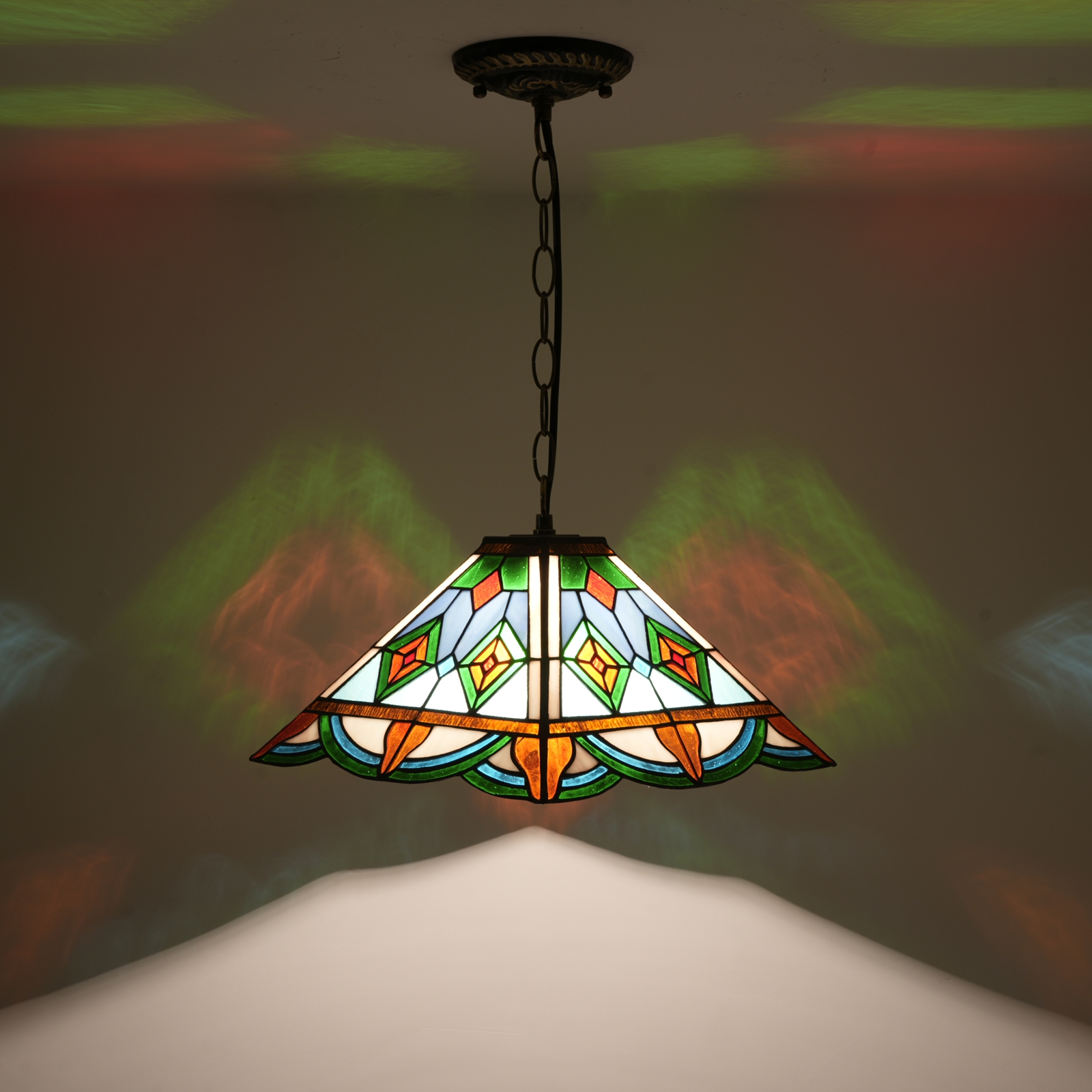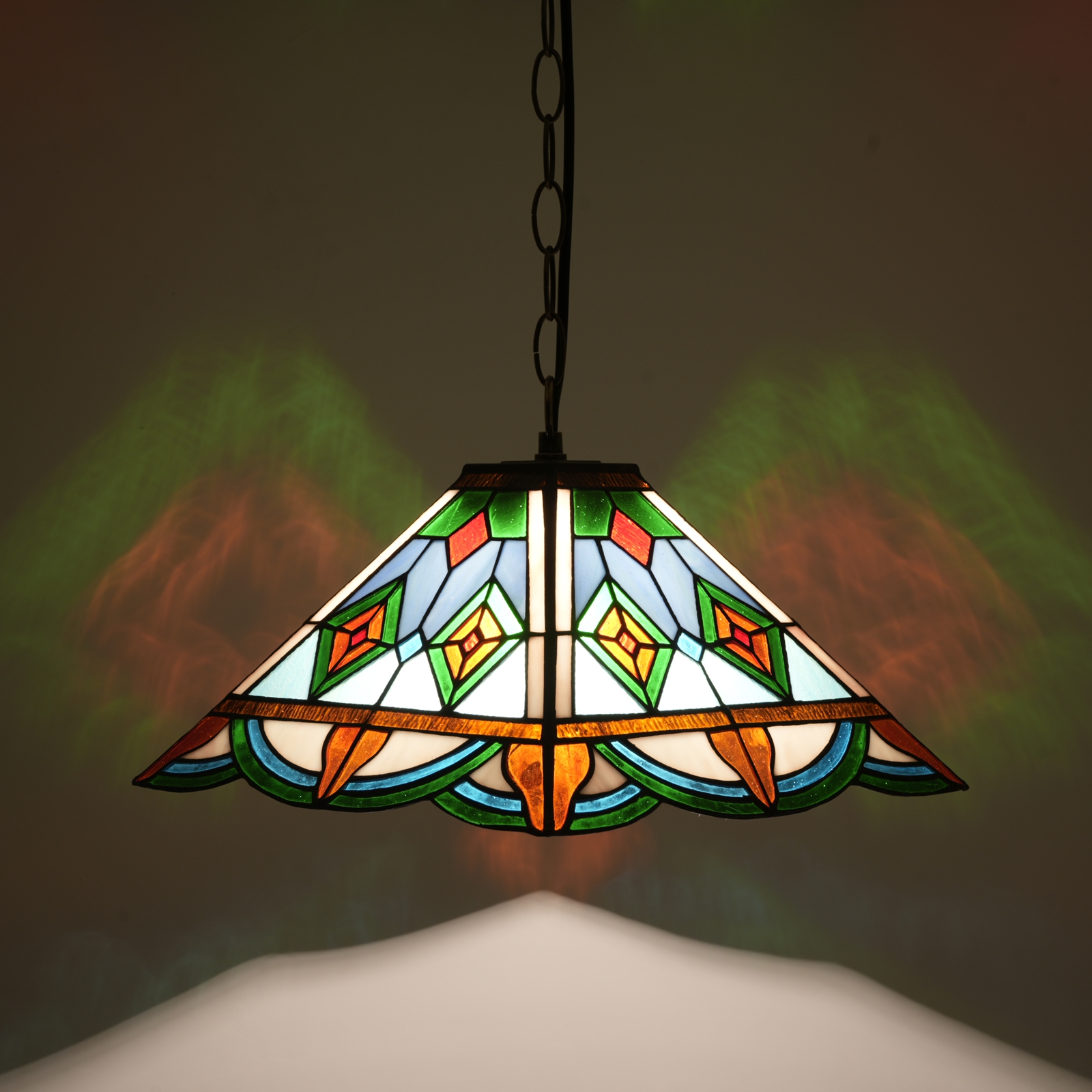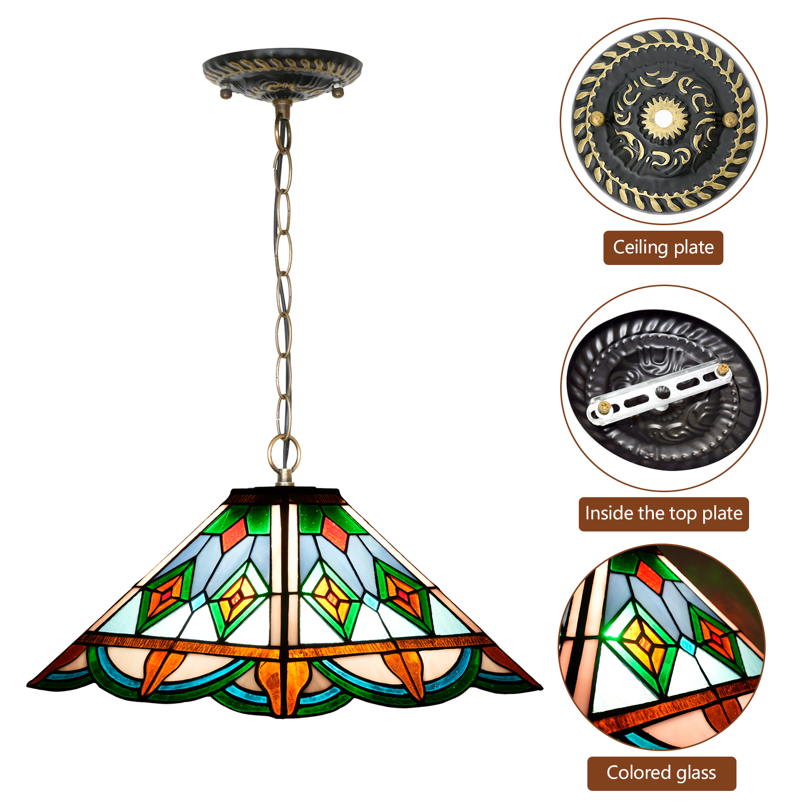 Blivuself Tiffany Style Handmade Creative Stained Glass Chandelier 16 Inches Green Peacock Back Shaped Square Lamp Suitable For Bedroom Dormitory Living Room Dining Room Traditional Retro Style Home Decoration Classical Art OFP1405