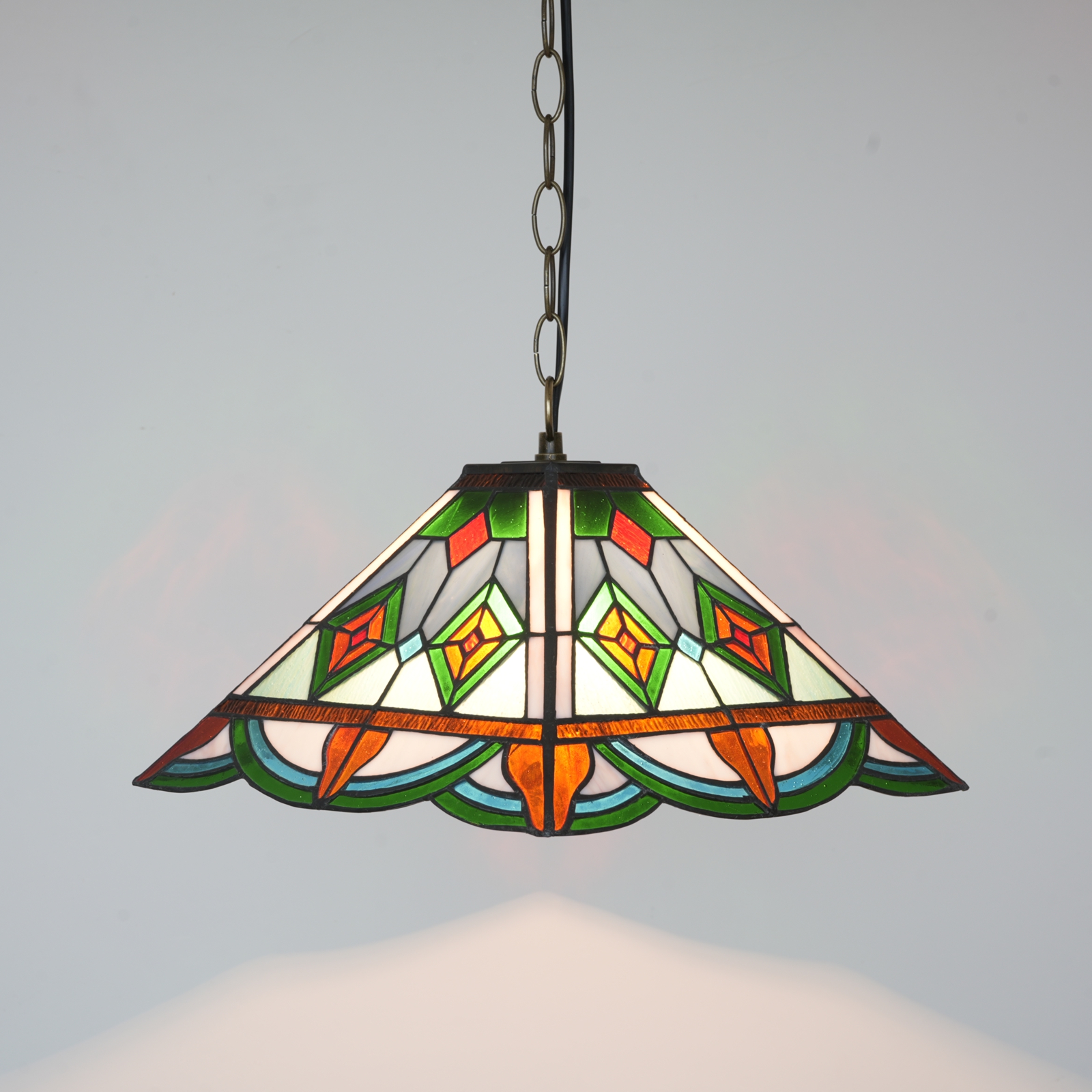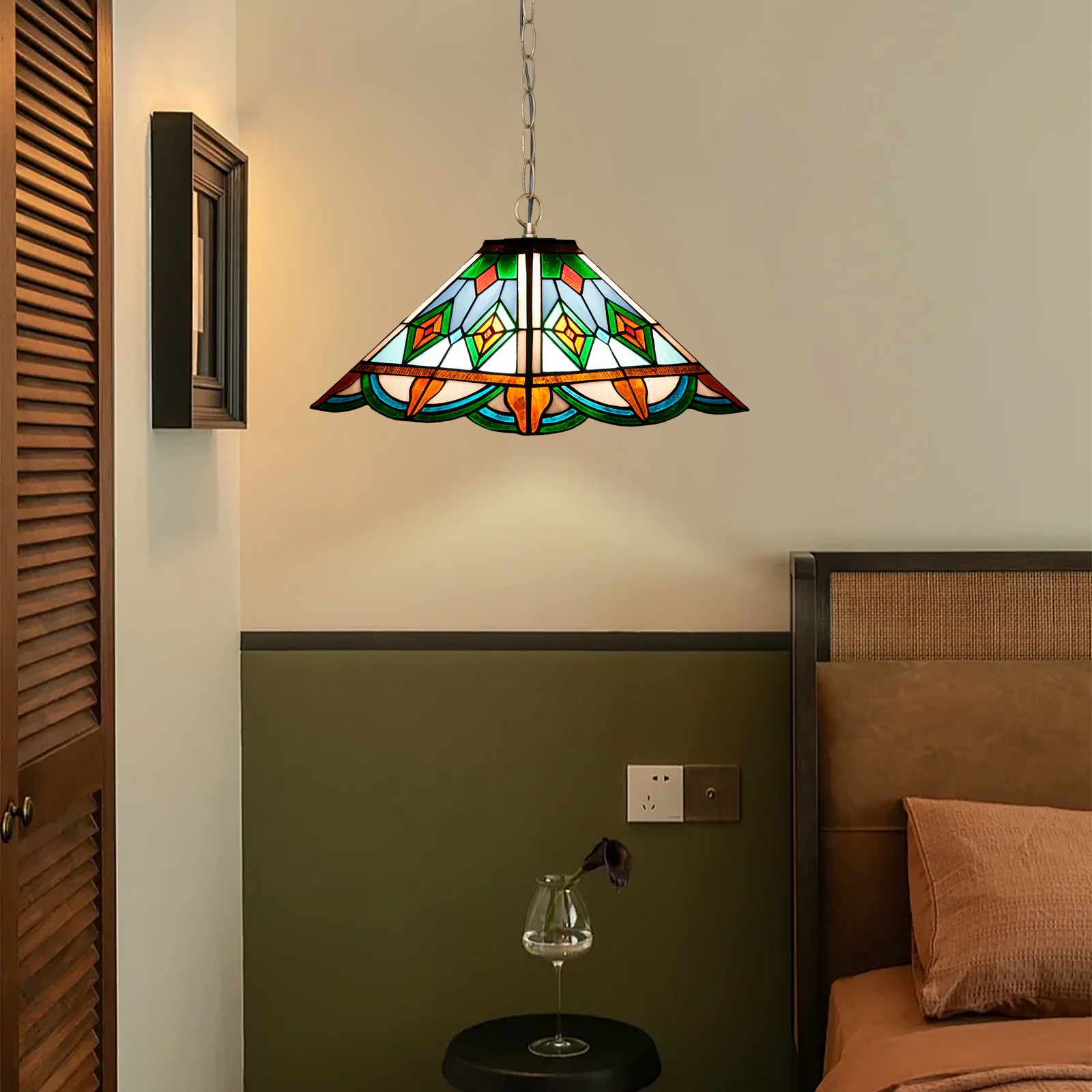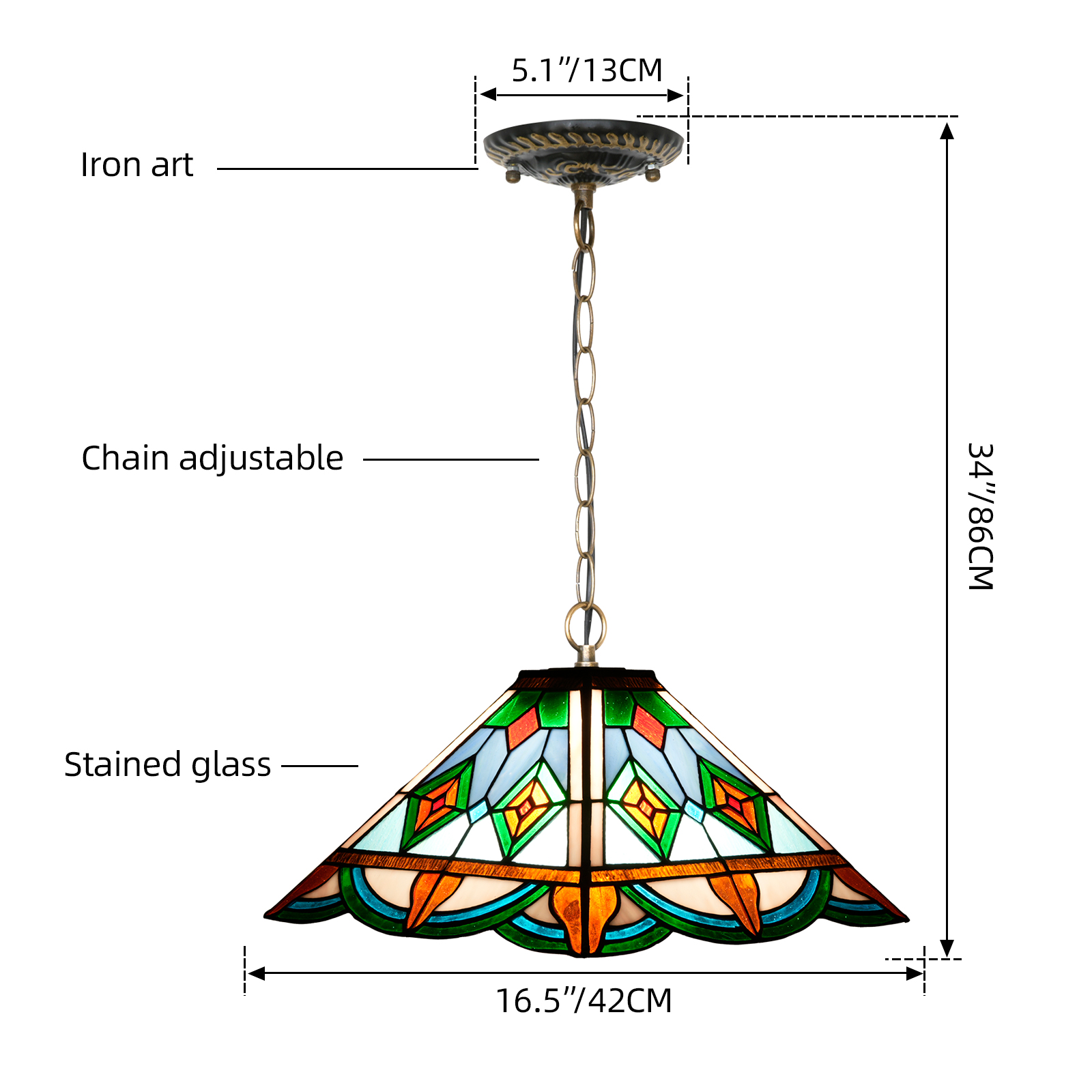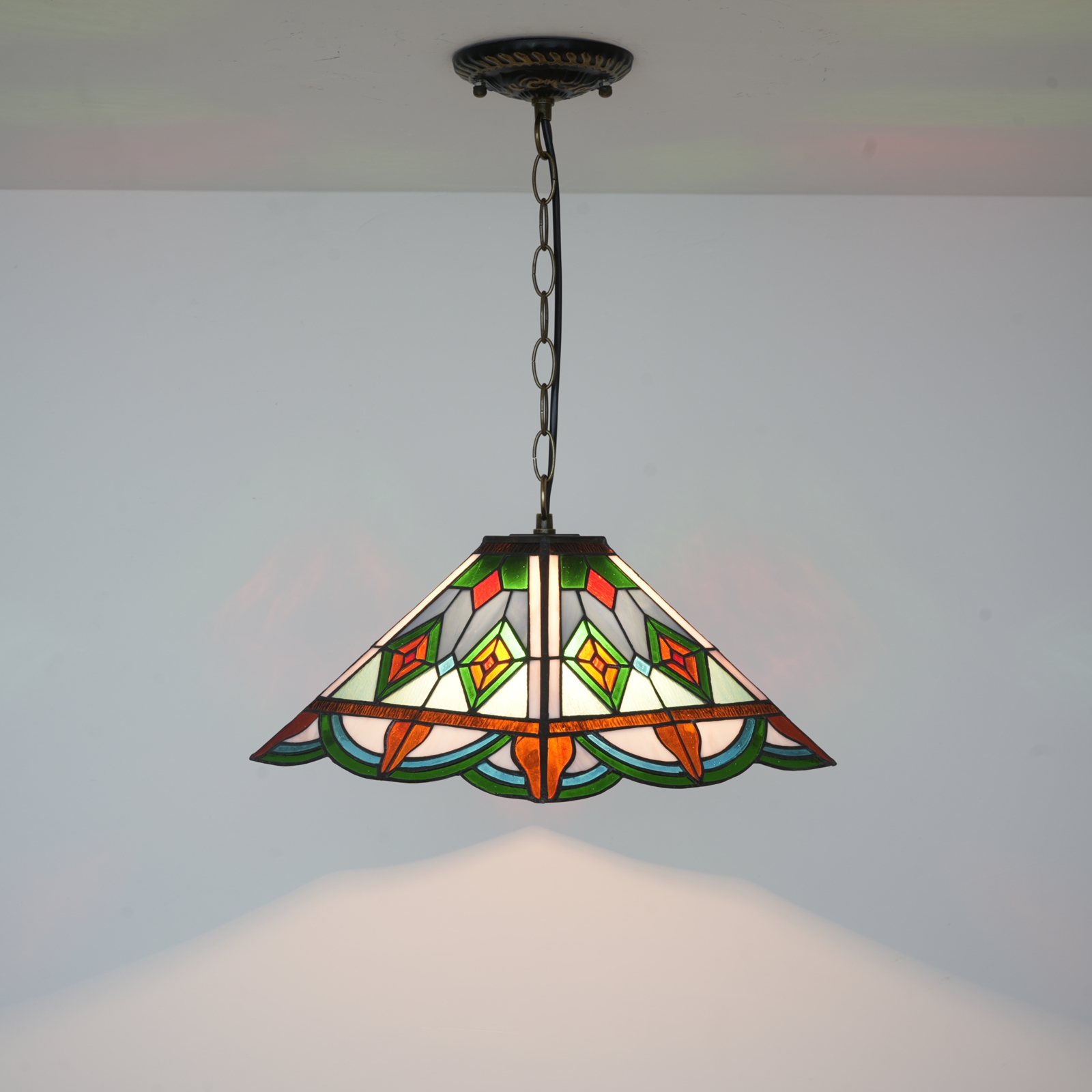 Blivuself Tiffany Style Handmade Creative Stained Glass Chandelier 16 Inches Green Peacock Back Shaped Square Lamp Suitable For Bedroom Dormitory Living Room Dining Room Traditional Retro Style Home Decoration Classical Art OFP1405