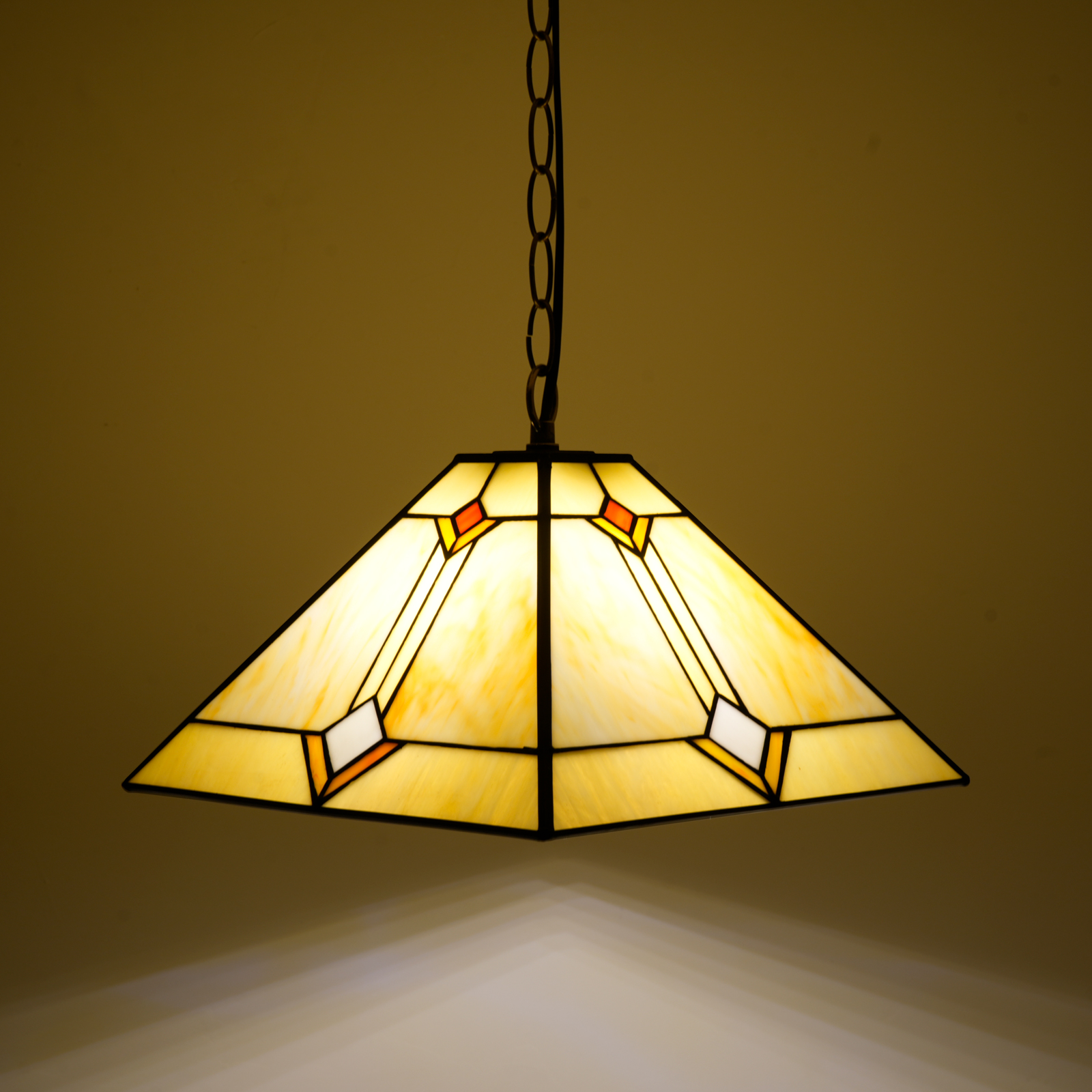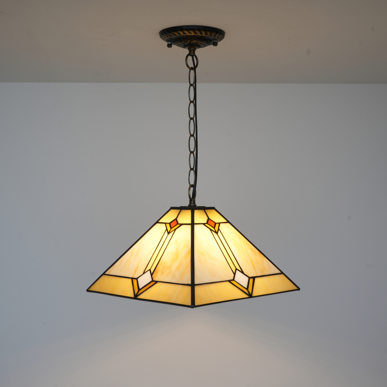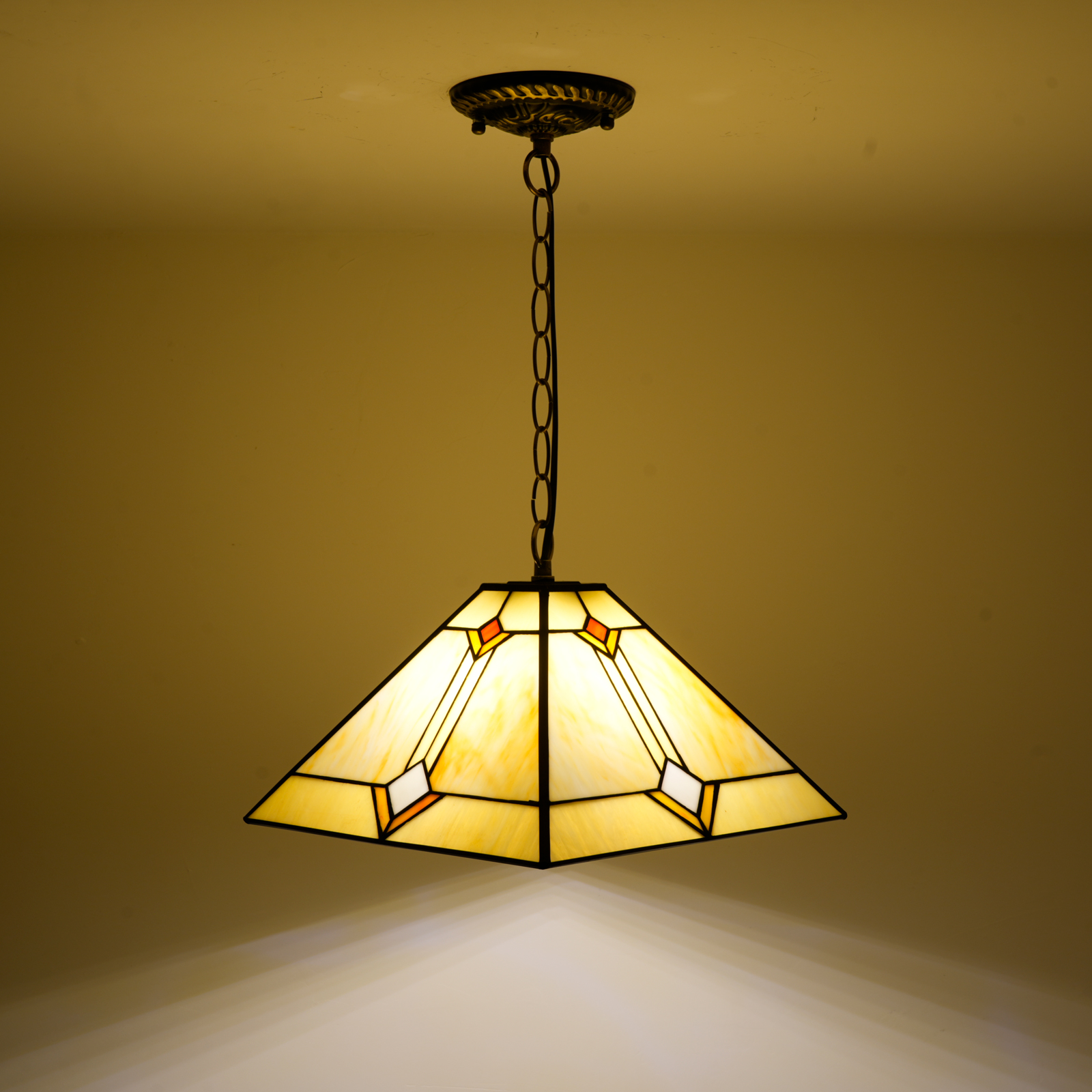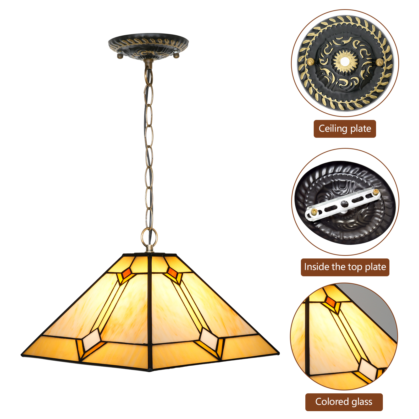 Blivuself Tiffany Style Handmade Creative Stained Glass Chandelier 16 Inches Warm Yellow Square Lamp Suitable For Bedroom Dormitory Living Room Dining Room Traditional Retro Style Home Decoration Classical Art OFP1413