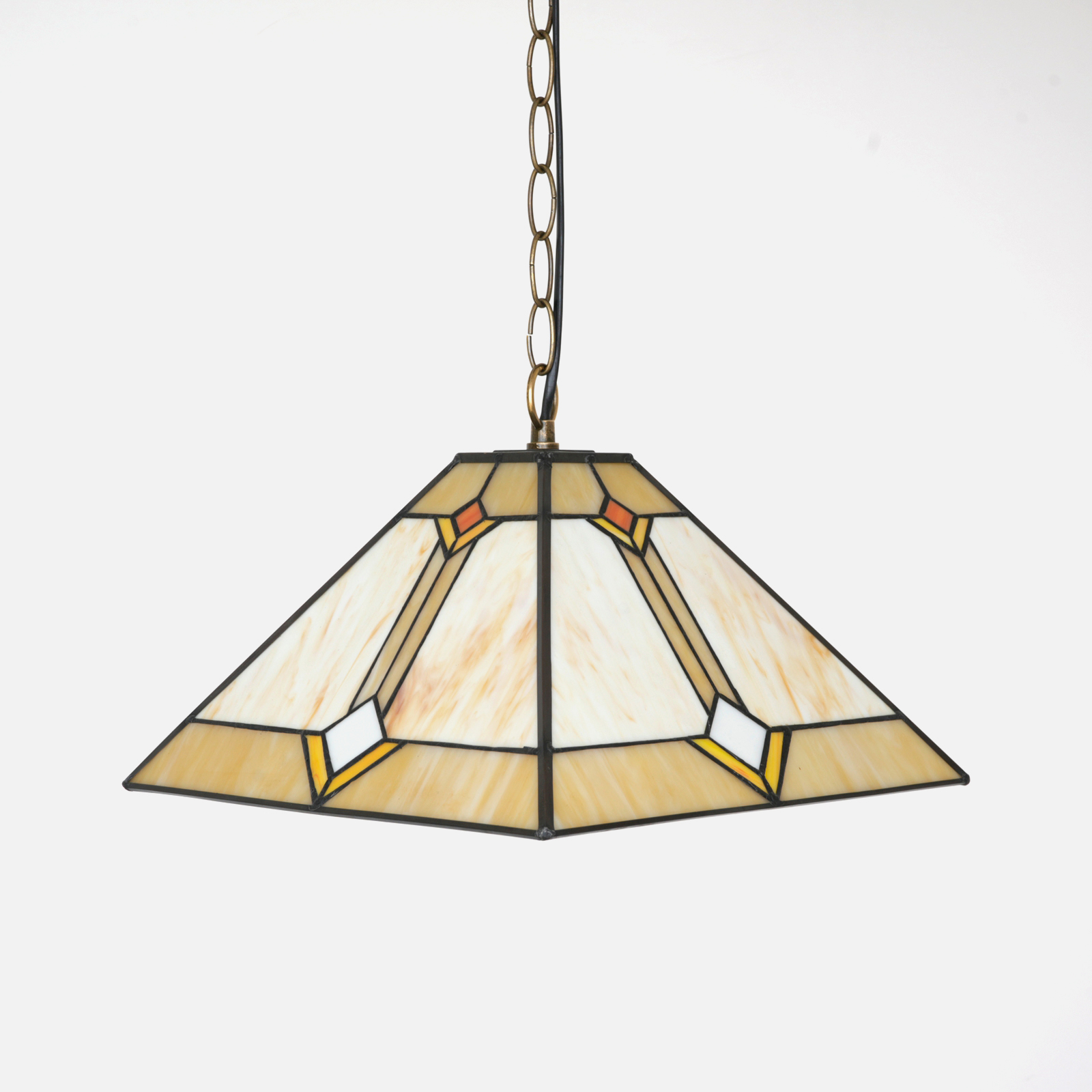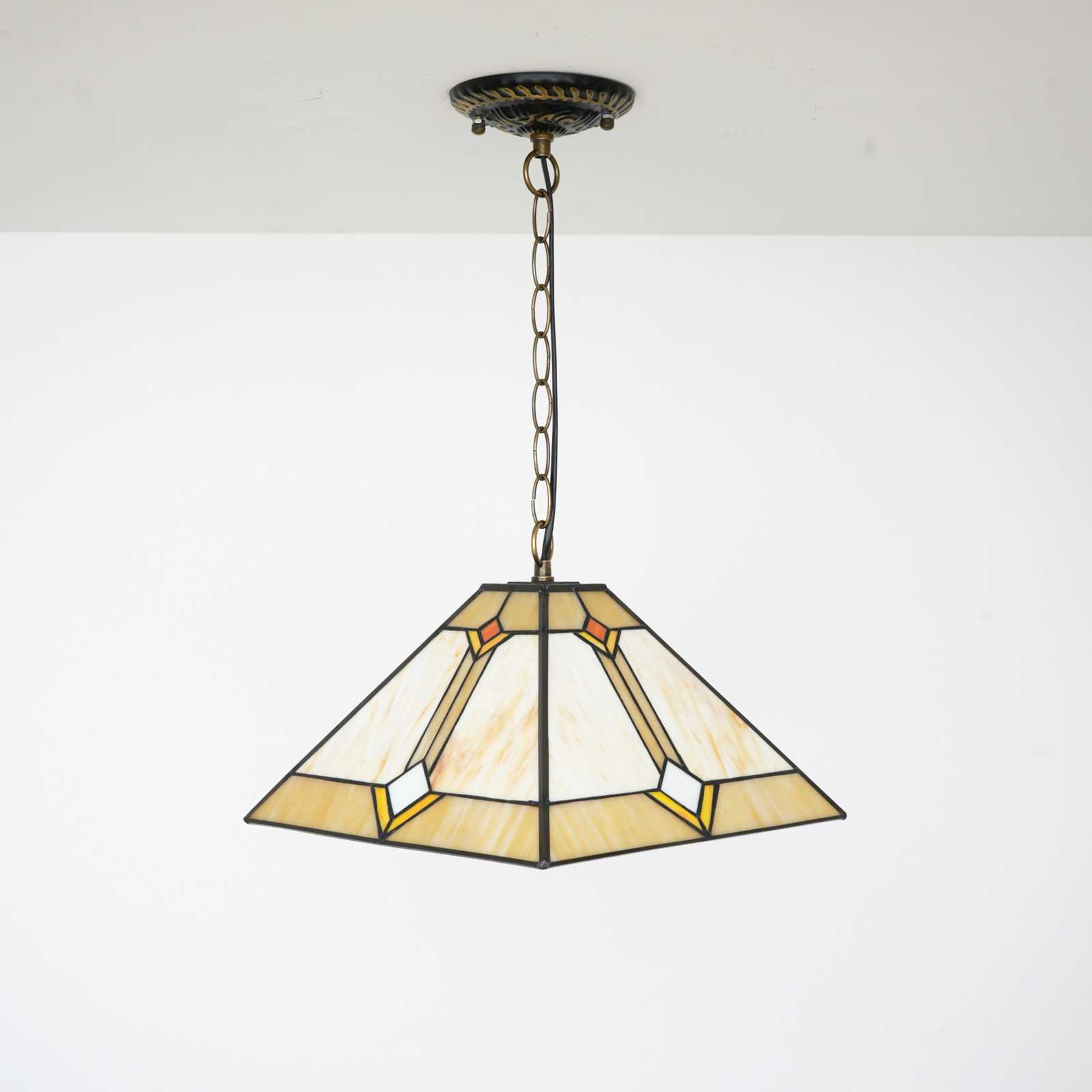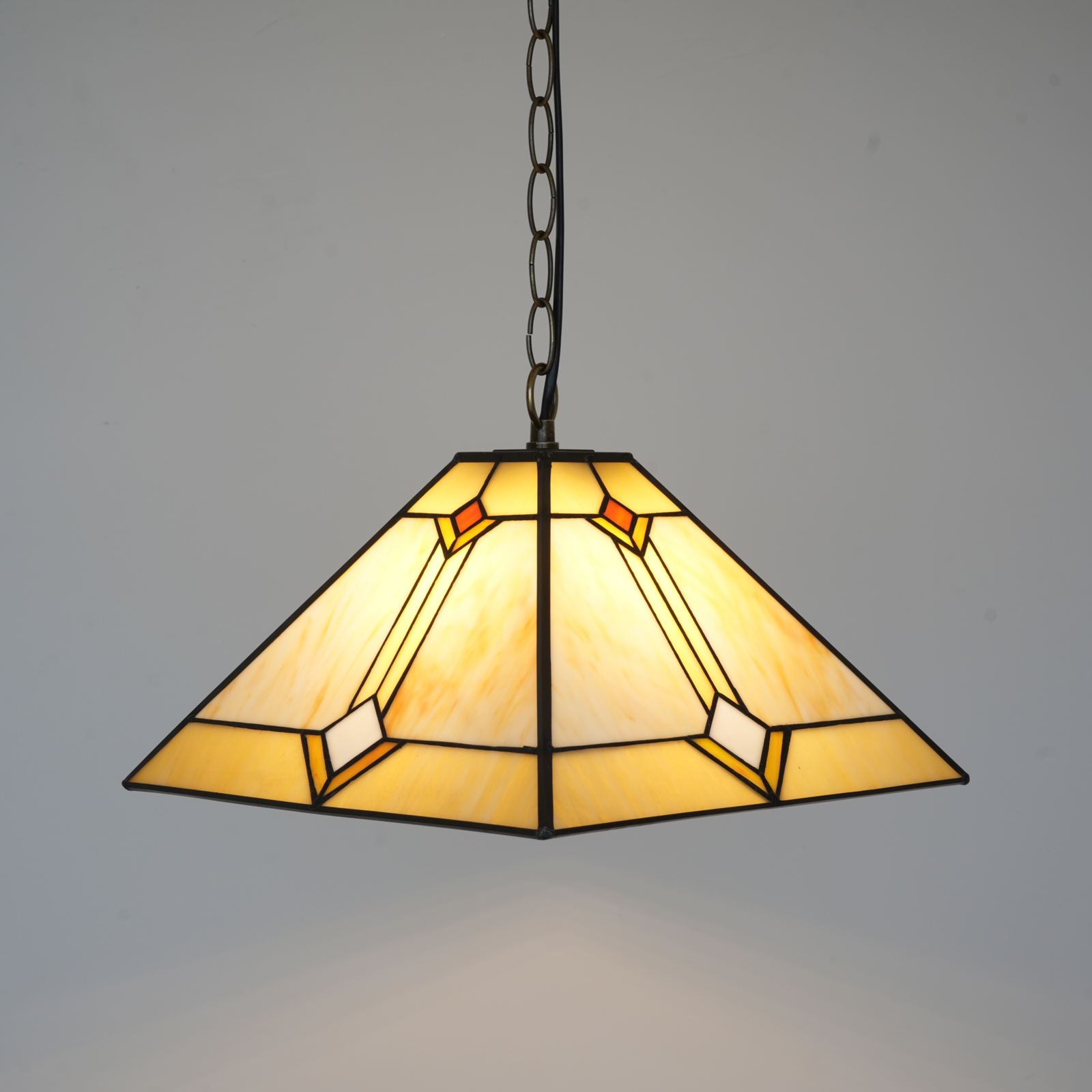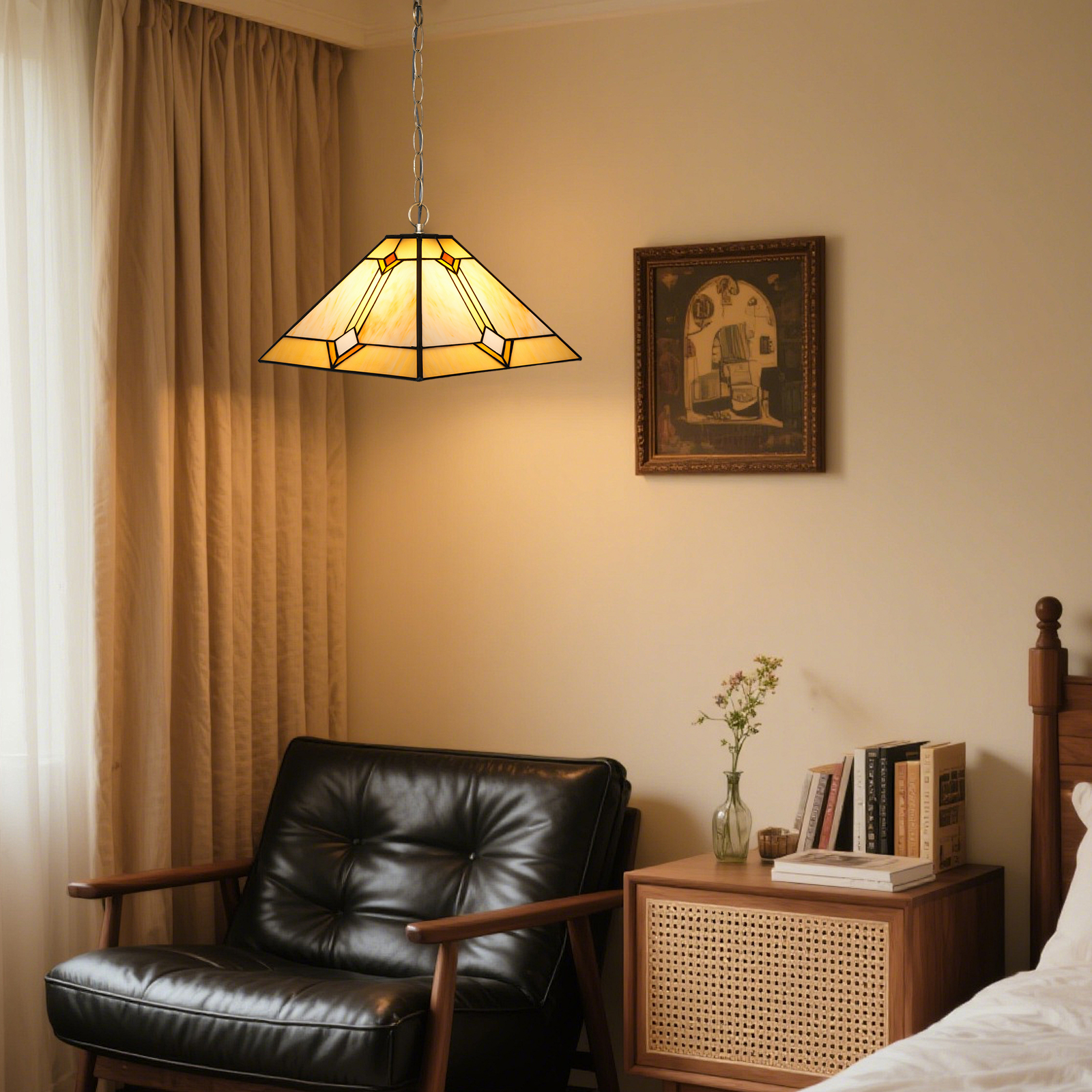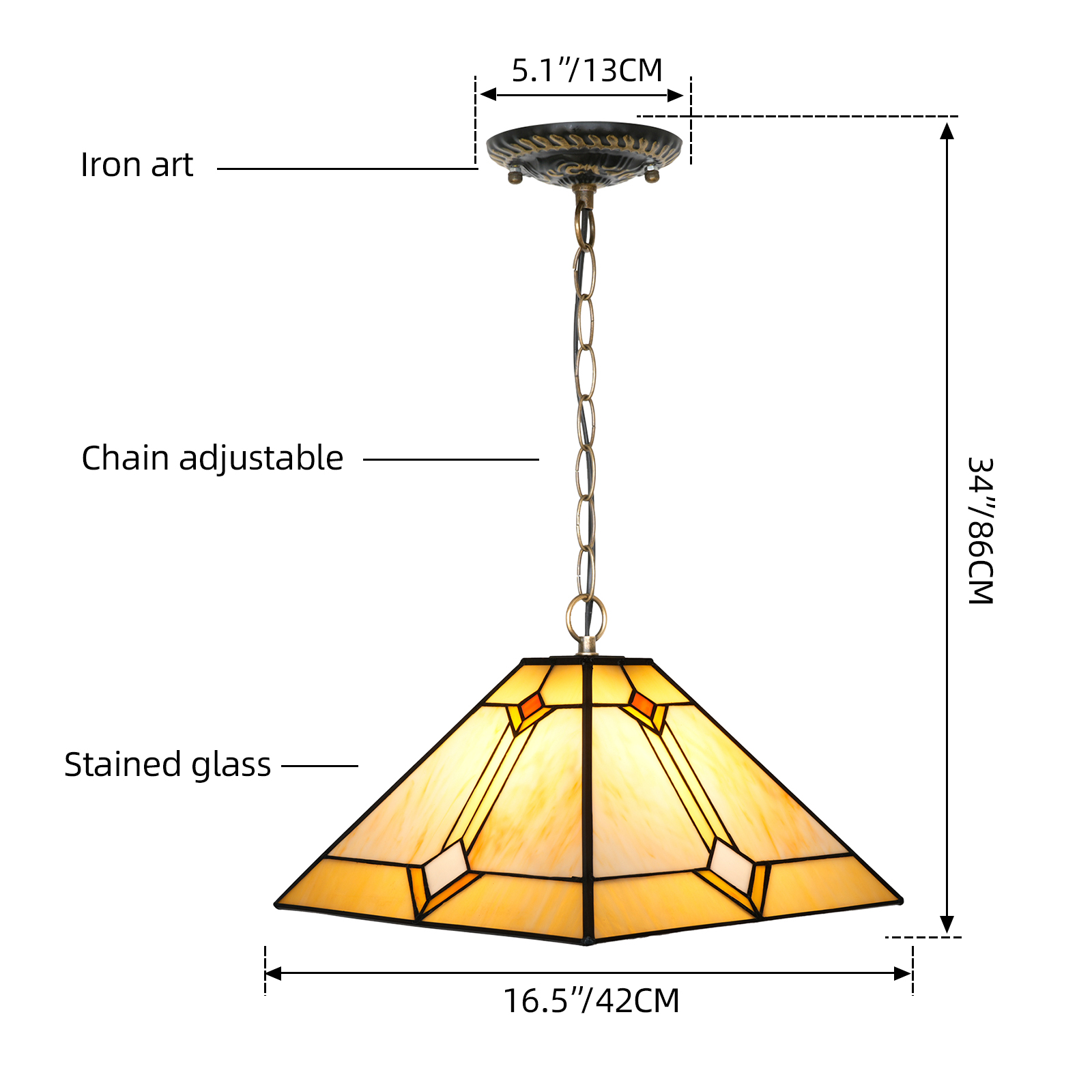 Blivuself Tiffany Style Handmade Creative Stained Glass Chandelier 16 Inches Warm Yellow Square Lamp Suitable For Bedroom Dormitory Living Room Dining Room Traditional Retro Style Home Decoration Classical Art OFP1413