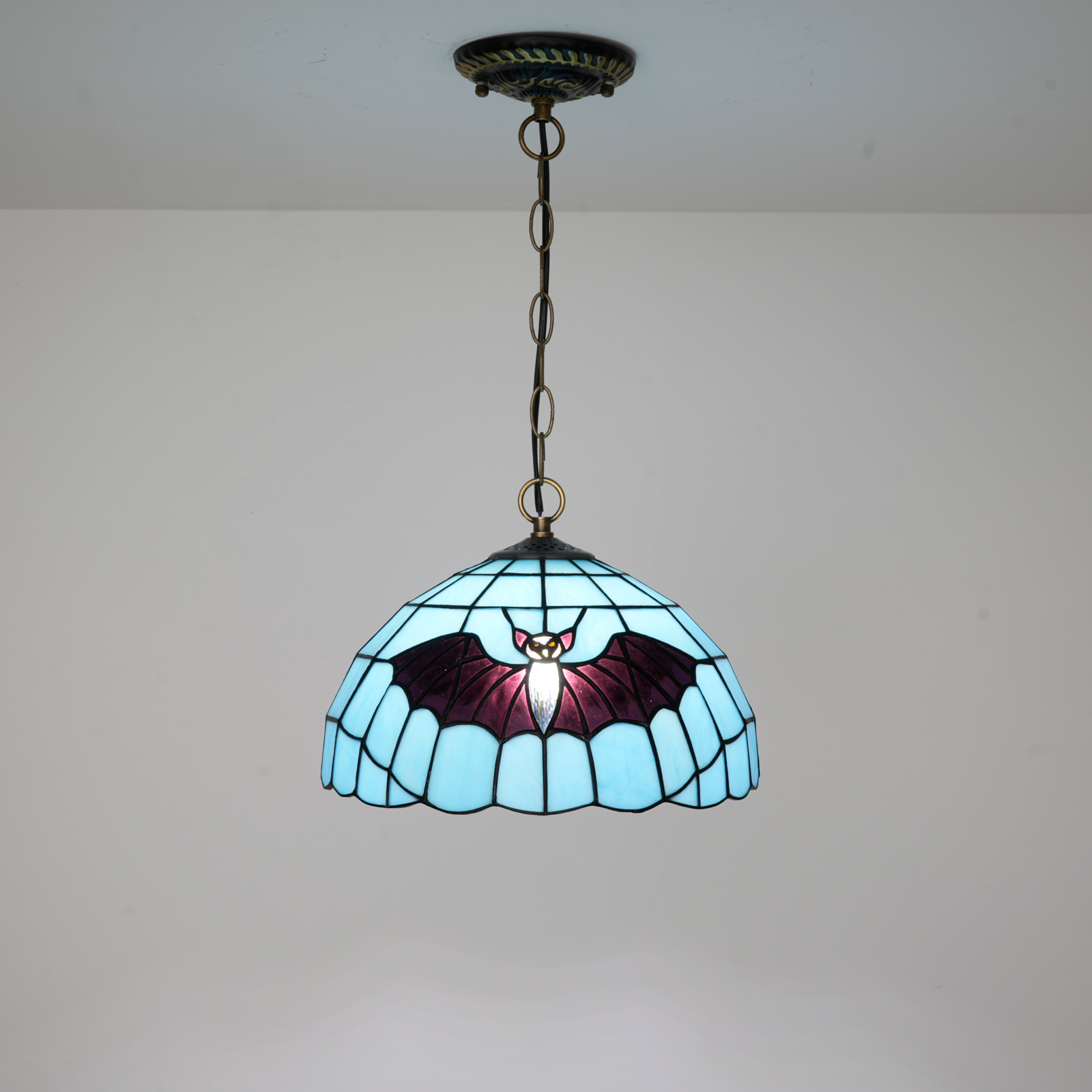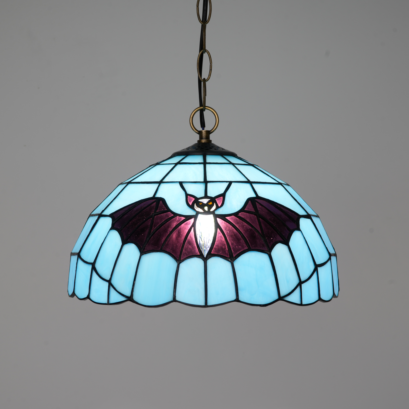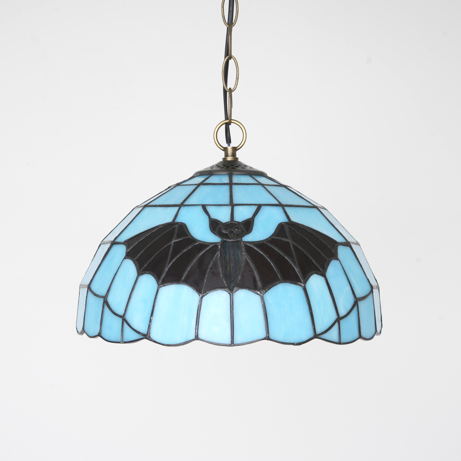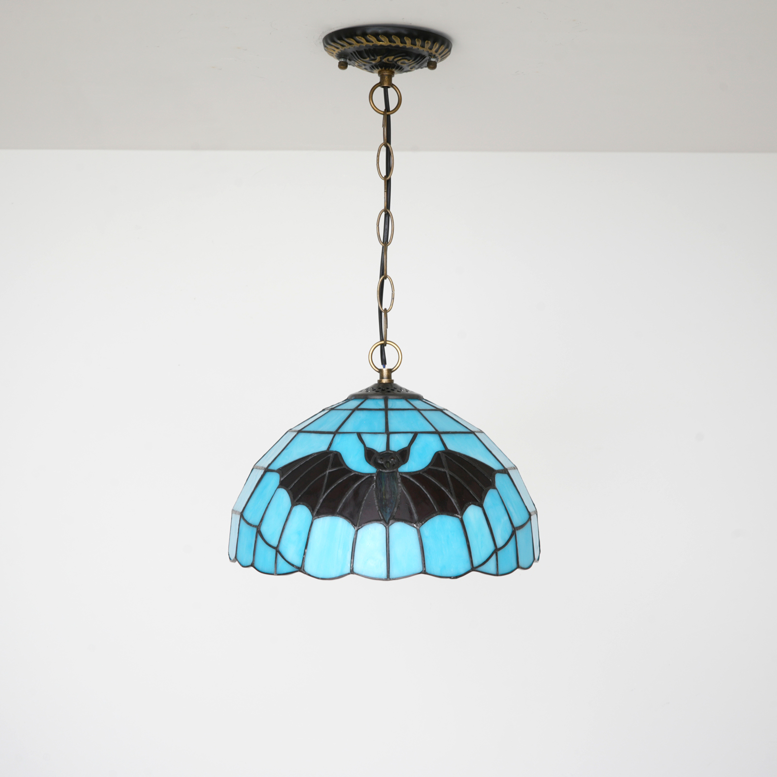 Blivuself Tiffany Style Handmade Creative Stained Glass Chandelier Blue Bat Adaptation Bedroom Dormitory Living Room Dining Room Traditional Retro Style Home Decoration Classical Art OFP1380