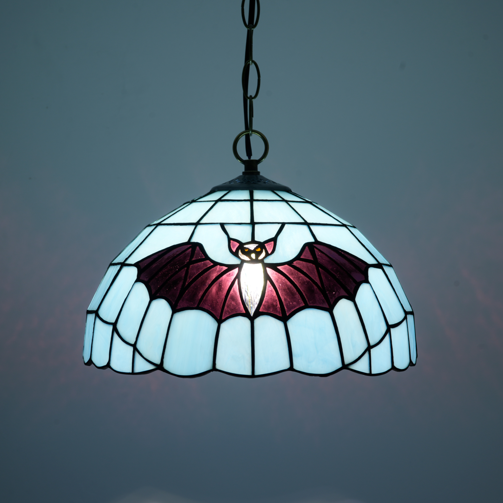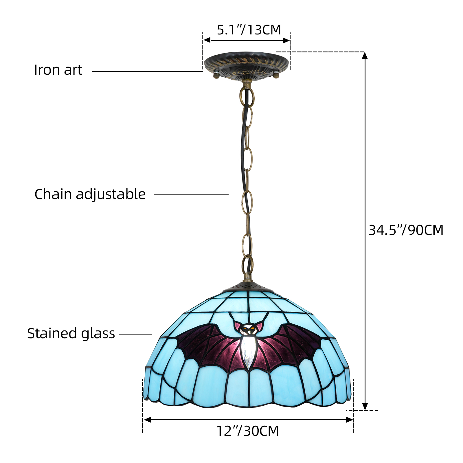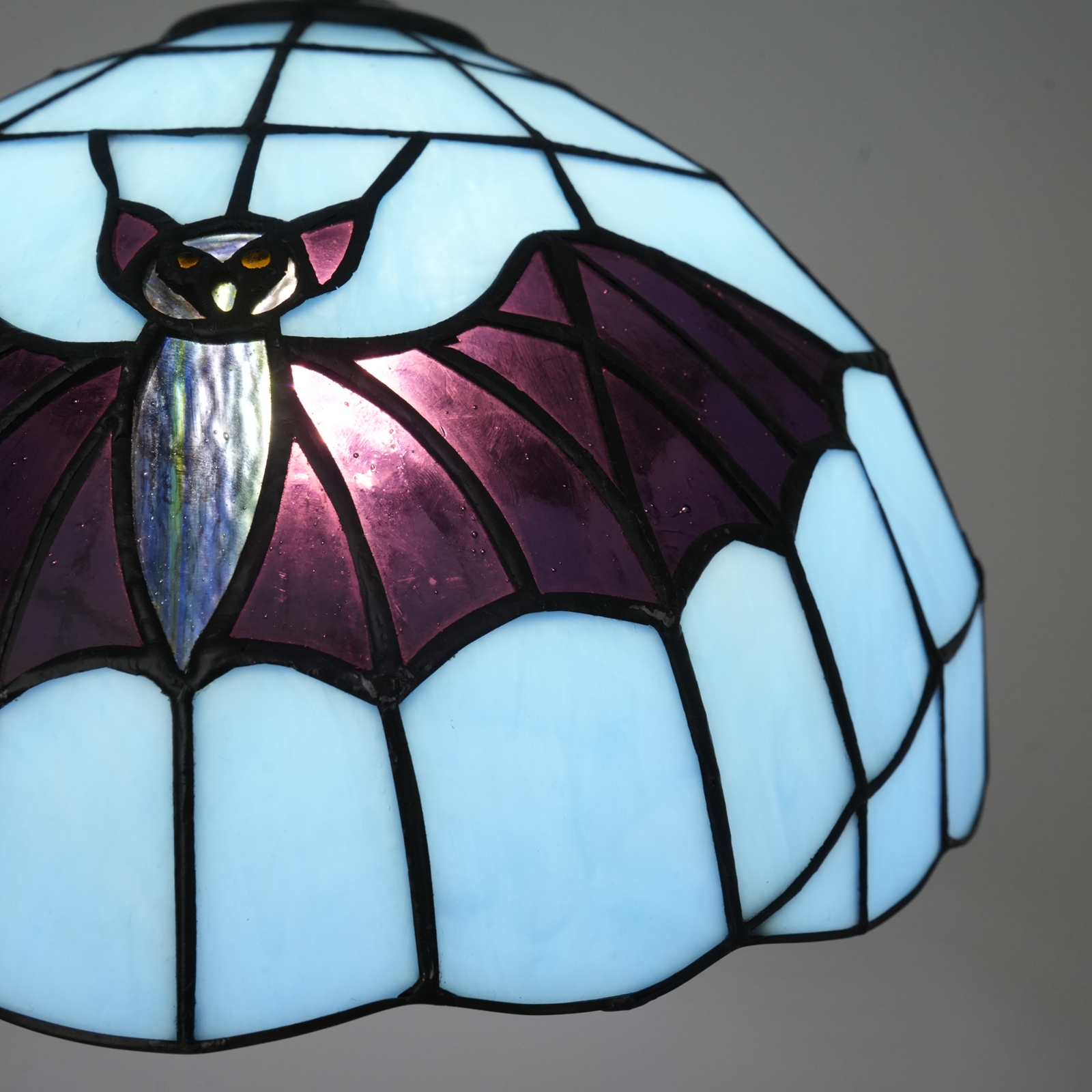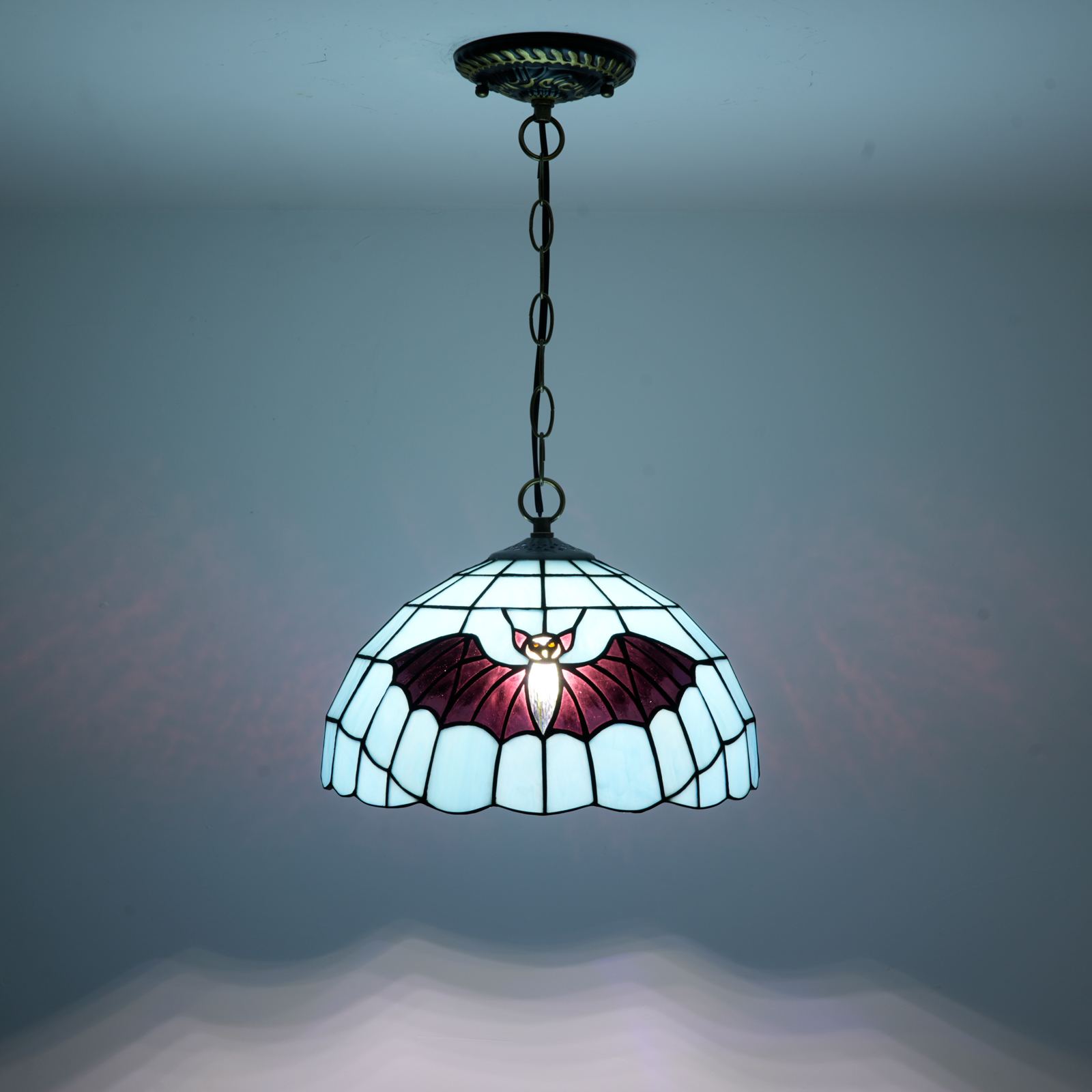 Blivuself Tiffany Style Handmade Creative Stained Glass Chandelier Blue Bat Adaptation Bedroom Dormitory Living Room Dining Room Traditional Retro Style Home Decoration Classical Art OFP1380