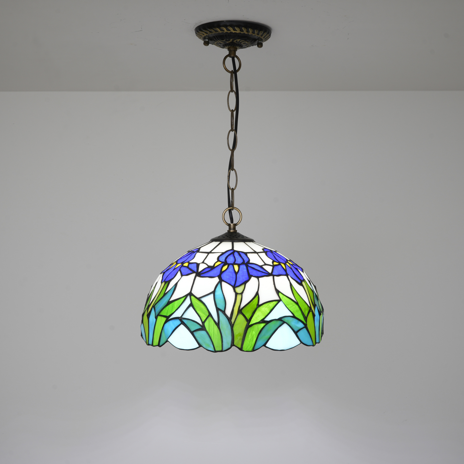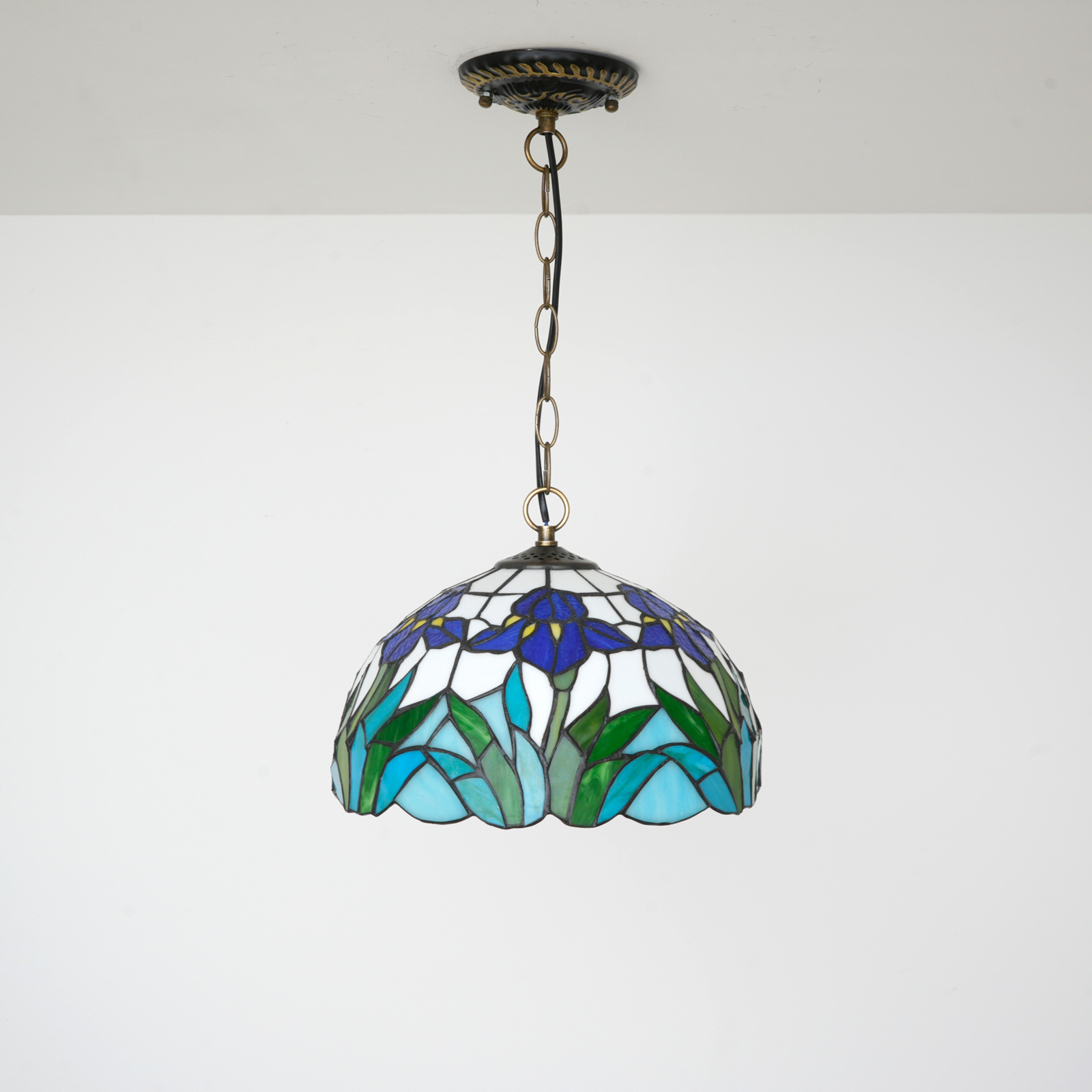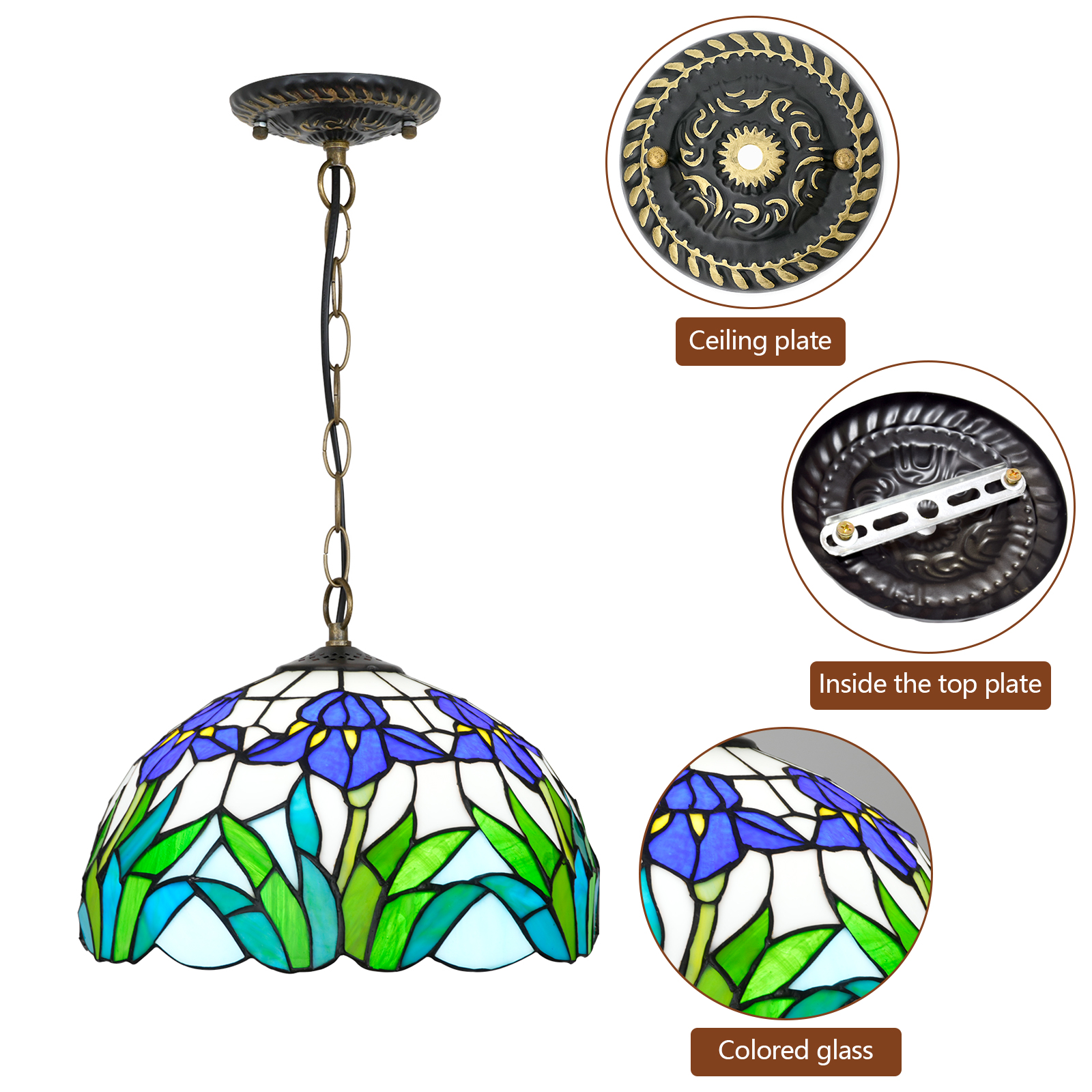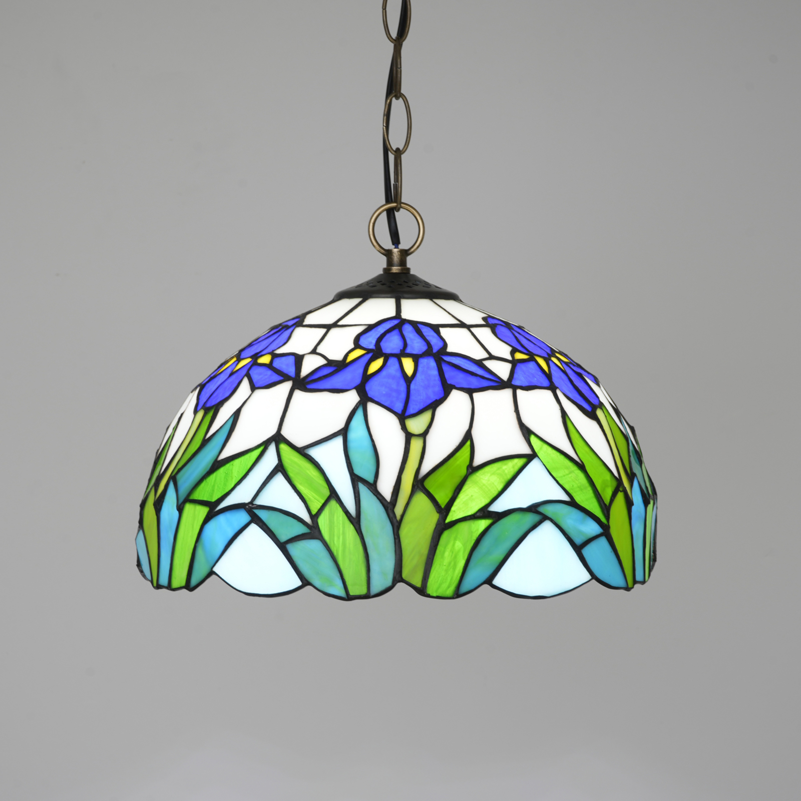 Blivuself Tiffany Style Handmade Creative Stained Glass Chandelier Blue Iris Adapted Bedroom Dormitory Living Room Dining Room Traditional Retro Style Home Decoration Classical Art OFP1382