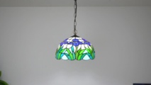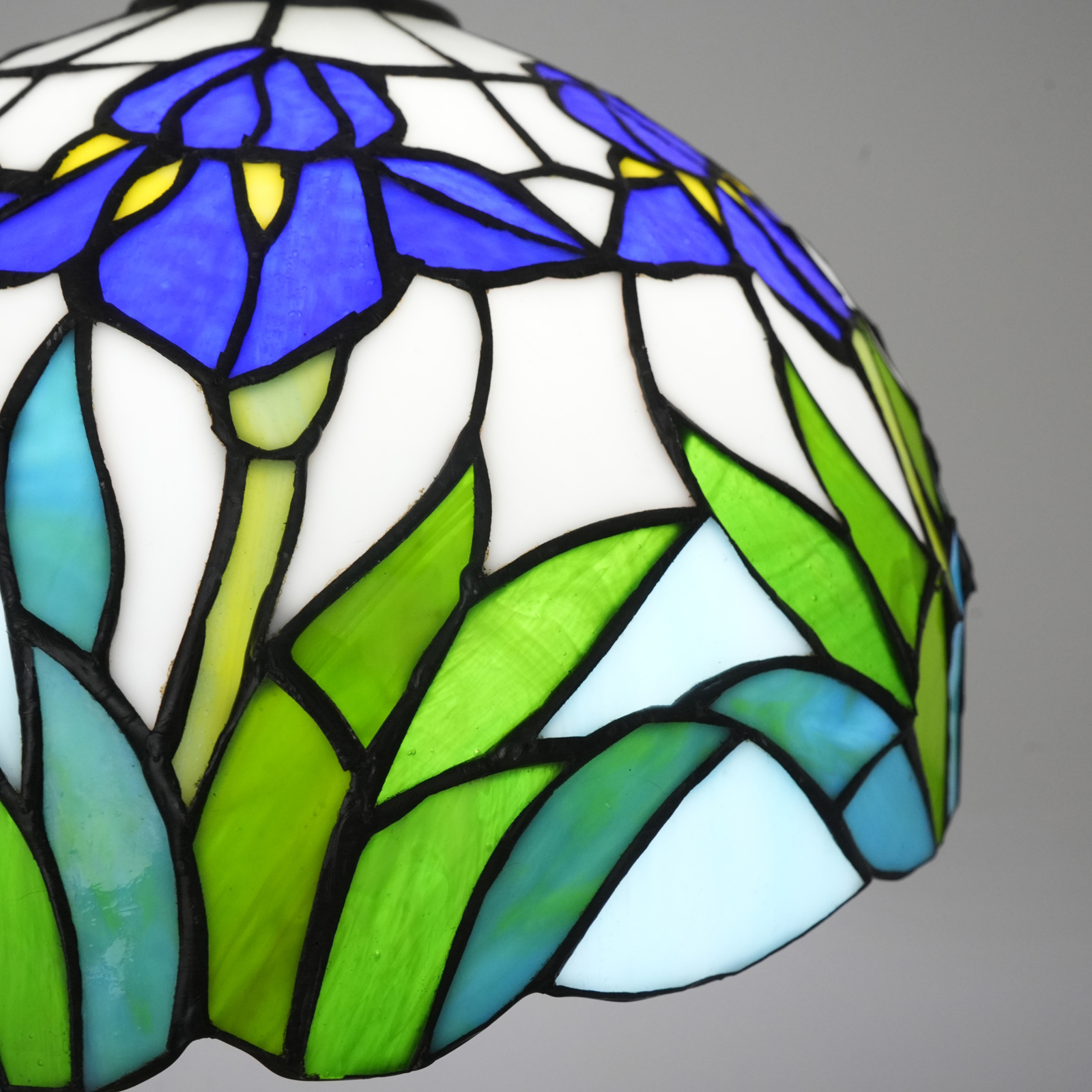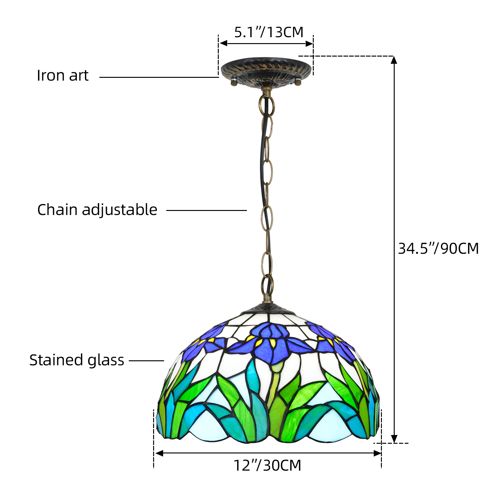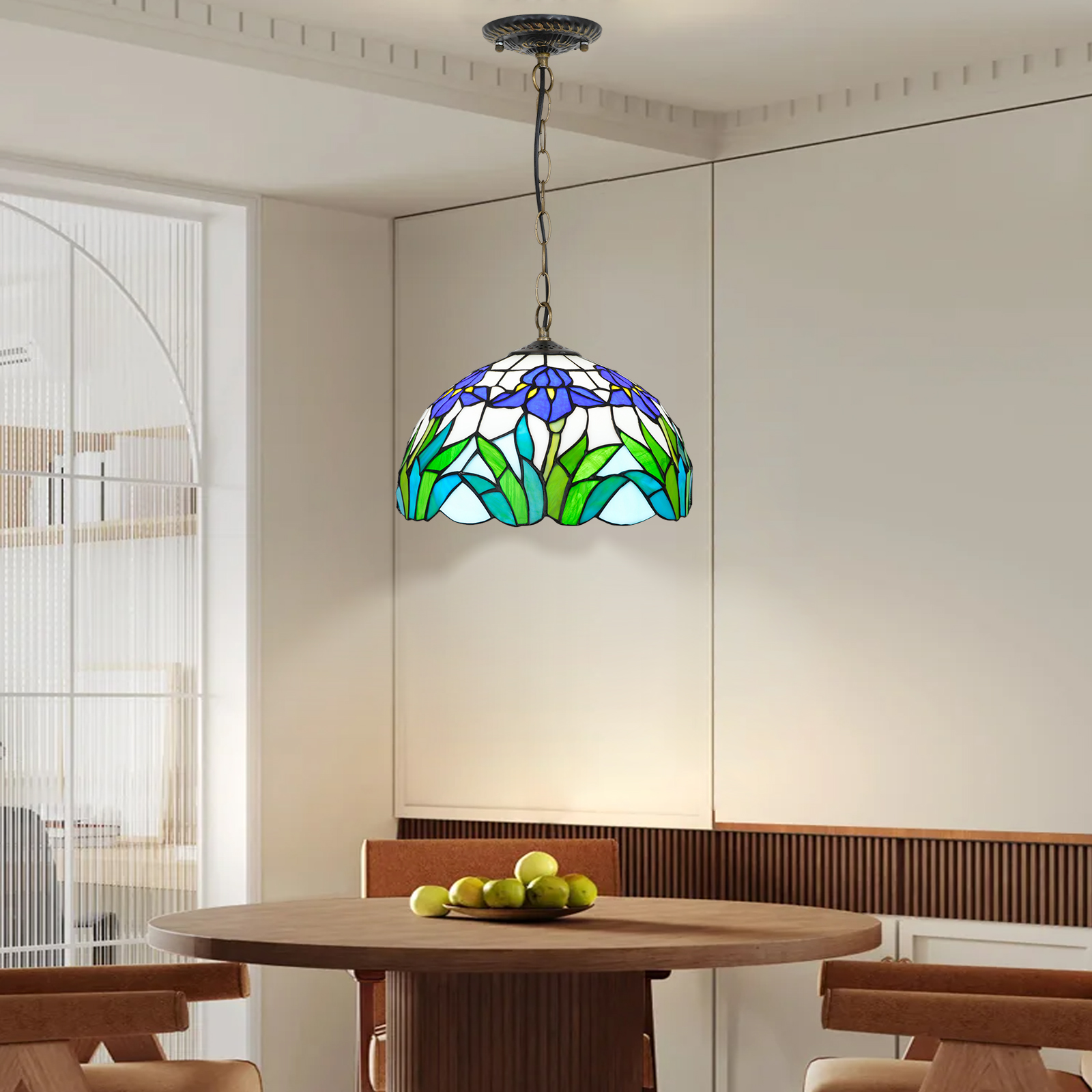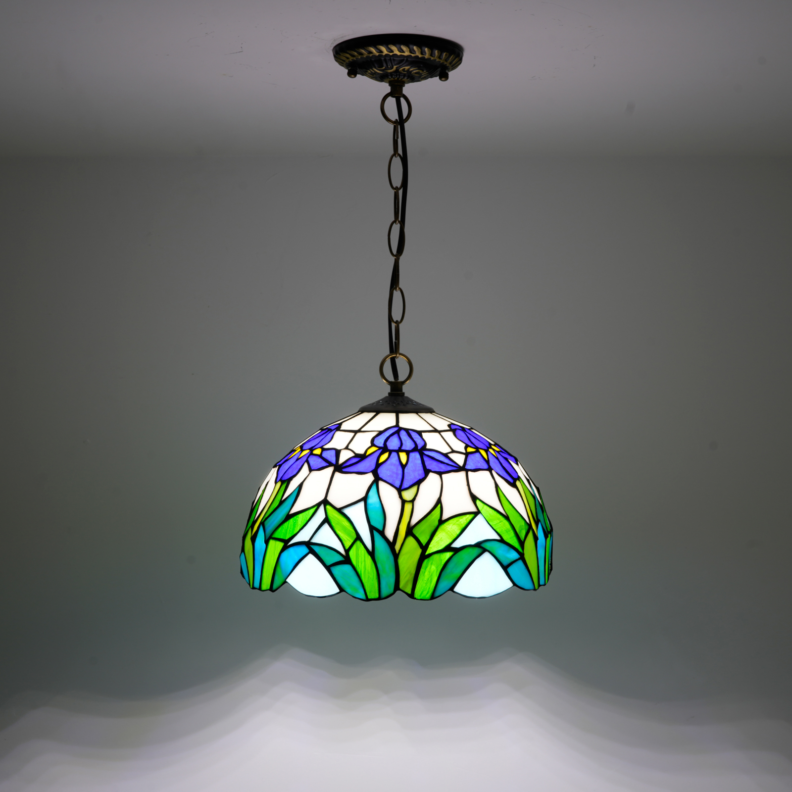Blivuself Tiffany Style Handmade Creative Stained Glass Chandelier Blue Iris Adapted Bedroom Dormitory Living Room Dining Room Traditional Retro Style Home Decoration Classical Art OFP1382