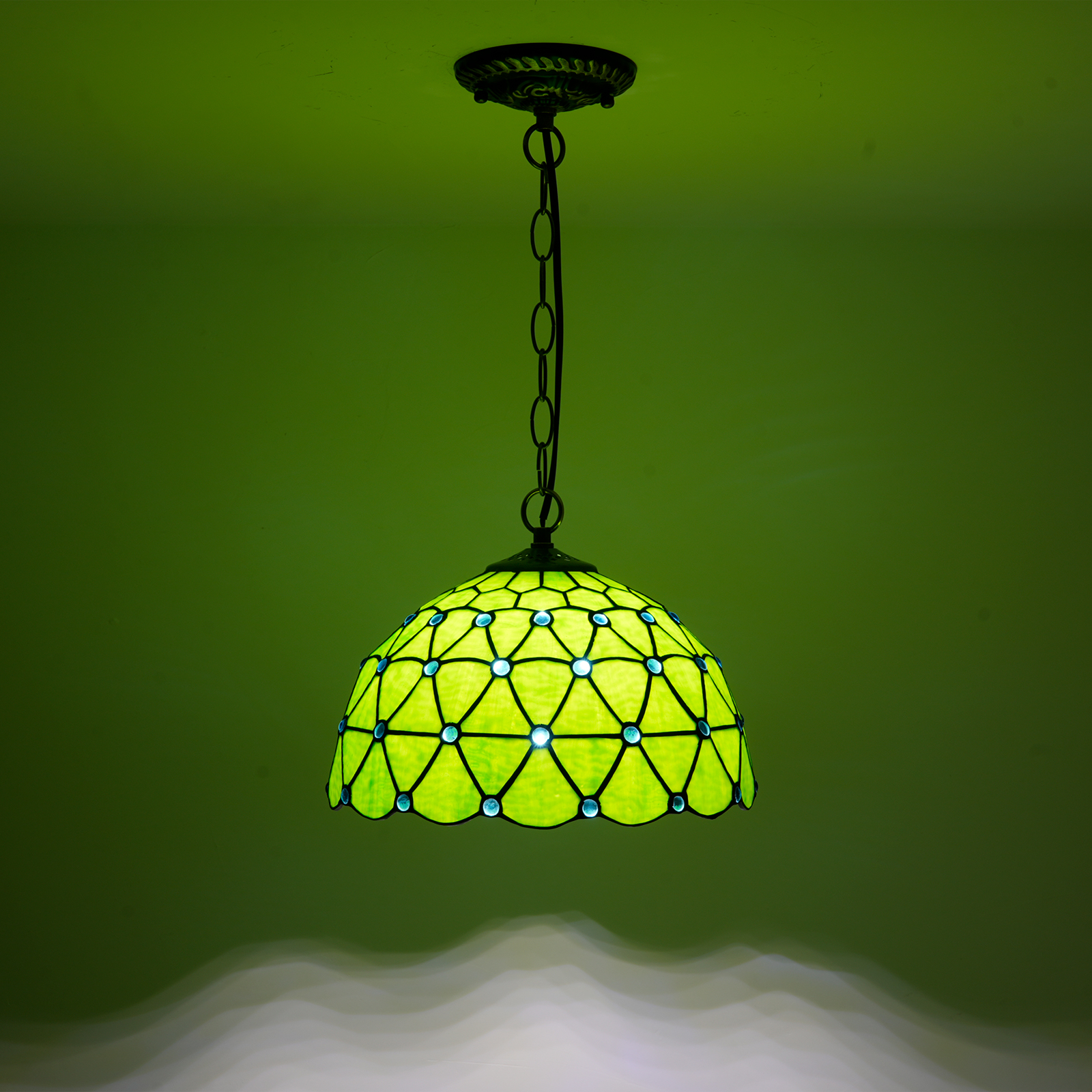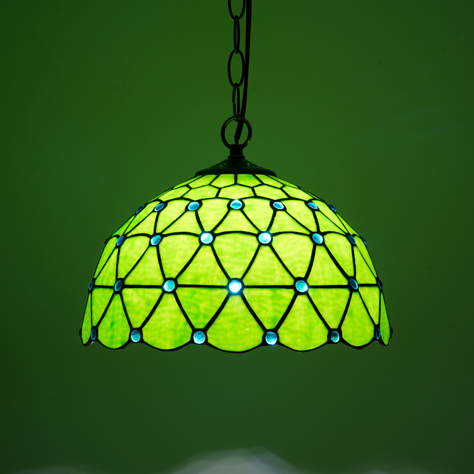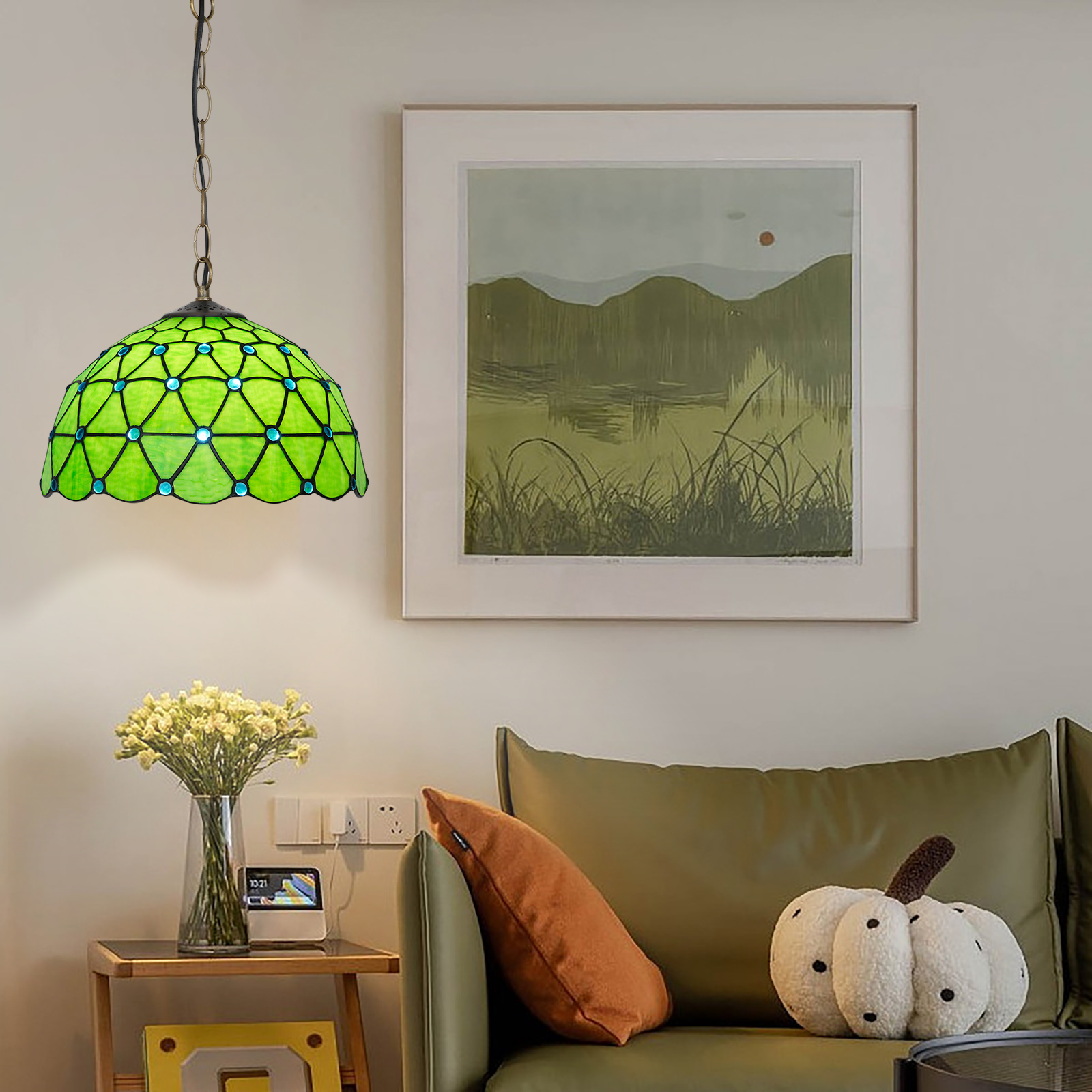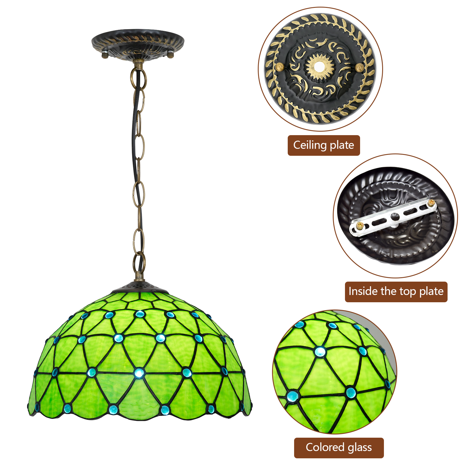 Blivuself Tiffany Style Handmade Creative Stained Glass Chandelier Green Bottom Blue Beads Adapted Bedroom Dormitory Living Room Dining Room Traditional Retro Style Home Decoration Classical Art OFP1385