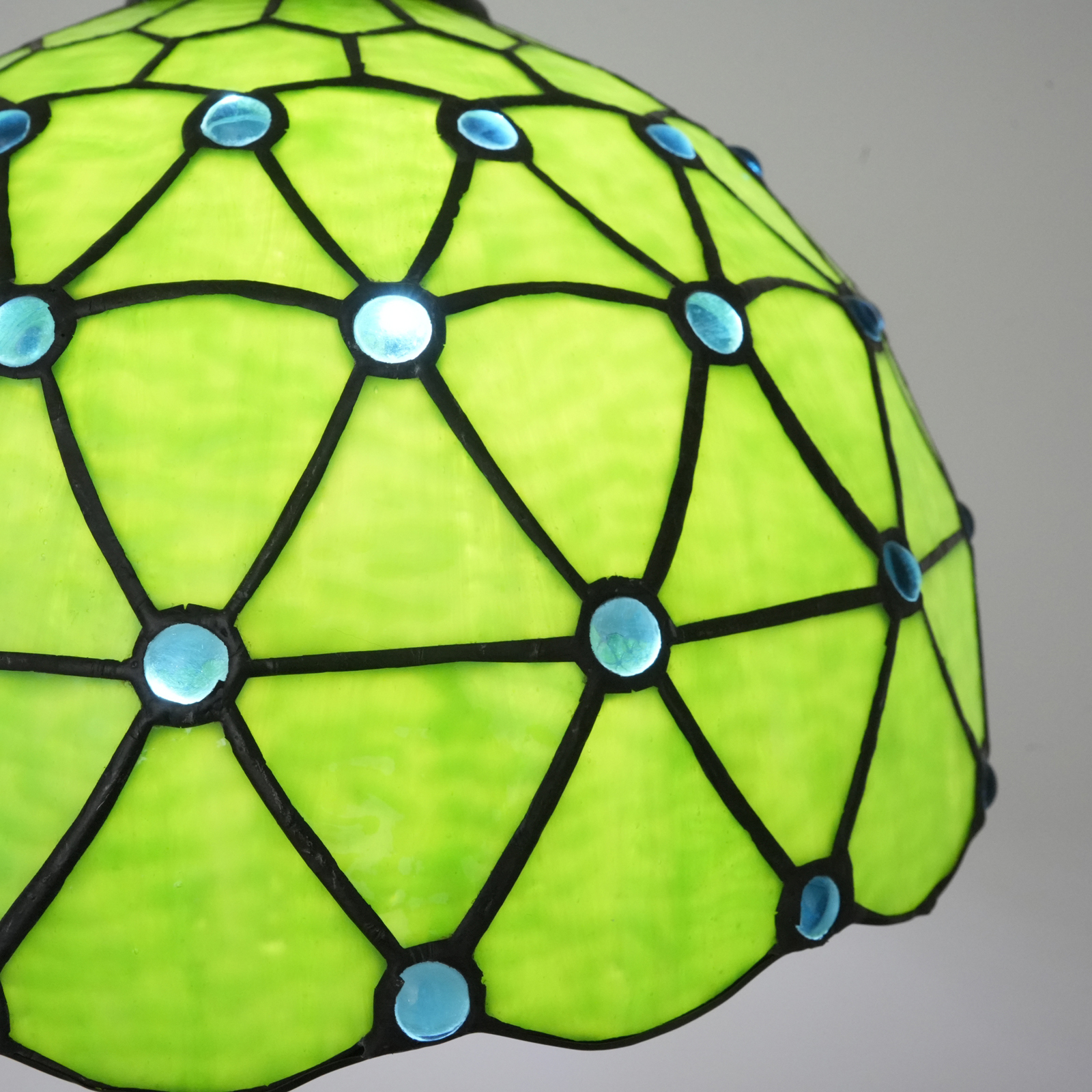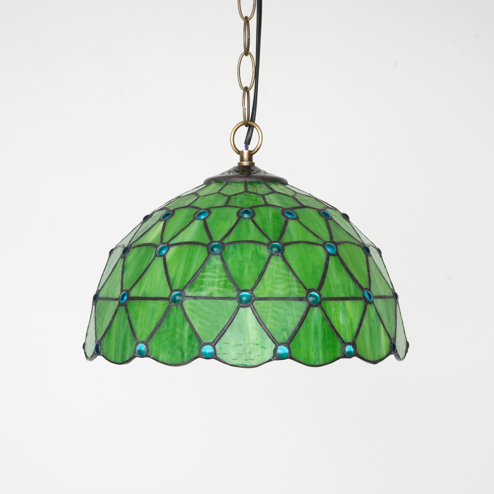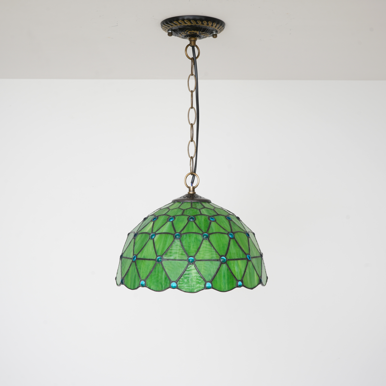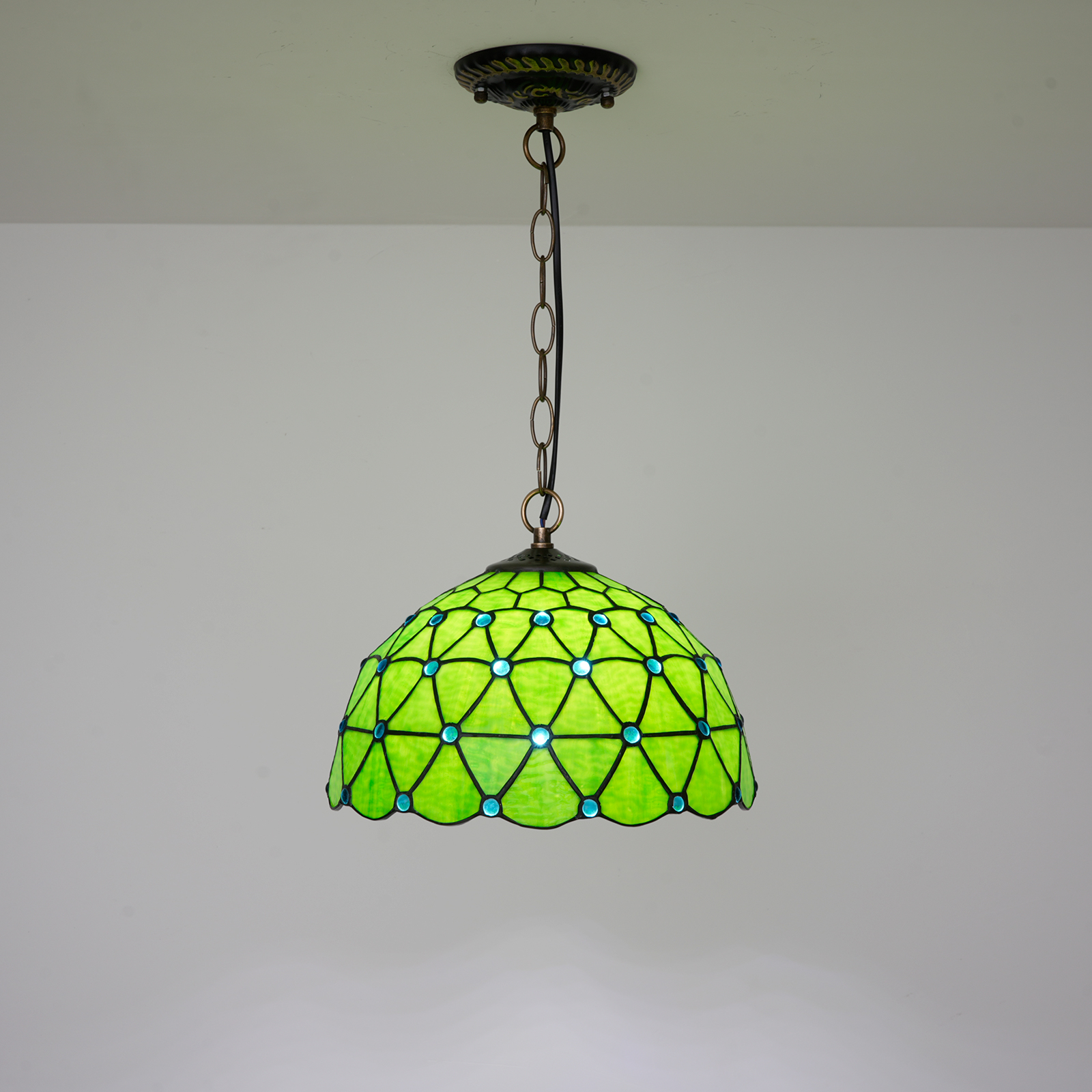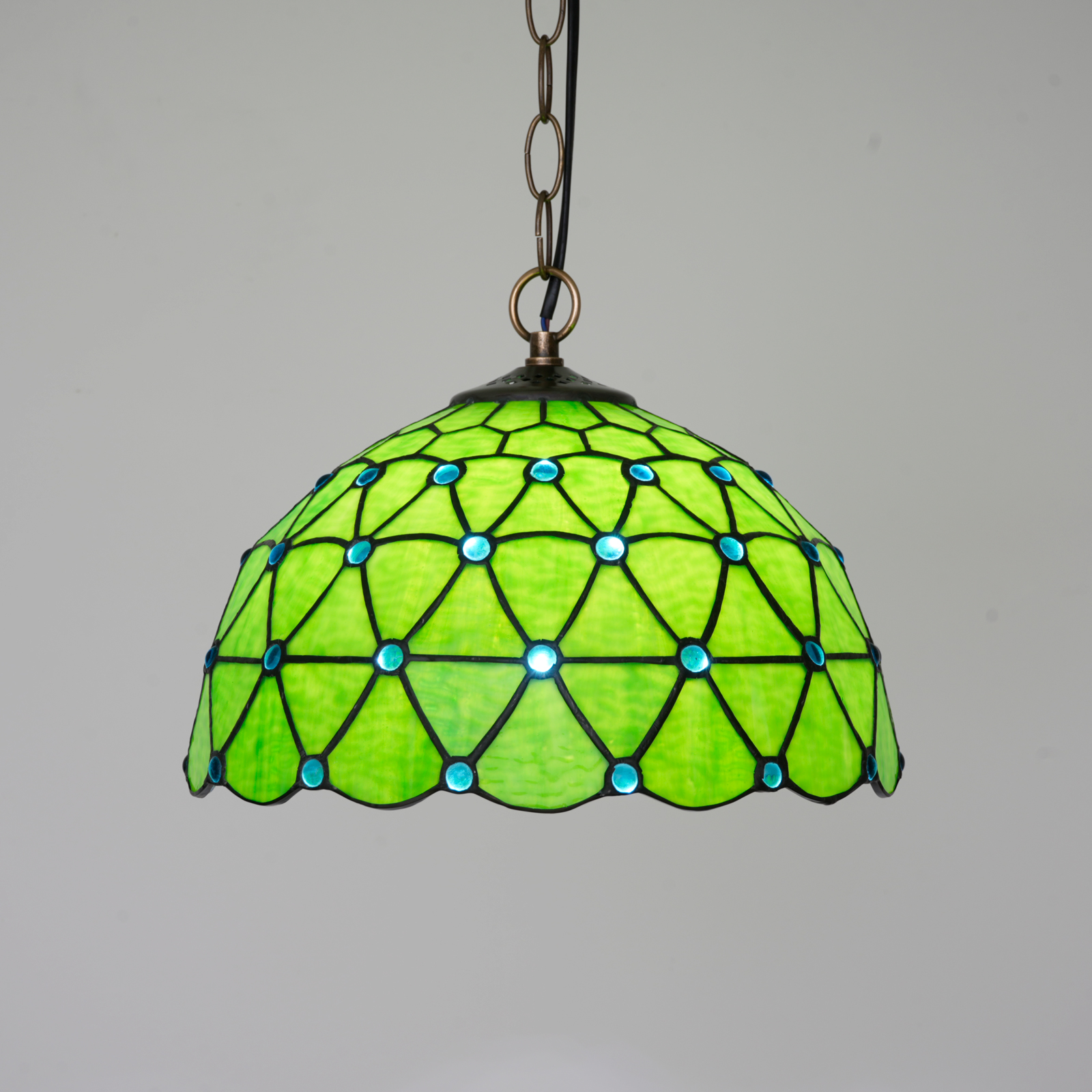 Blivuself Tiffany Style Handmade Creative Stained Glass Chandelier Green Bottom Blue Beads Adapted Bedroom Dormitory Living Room Dining Room Traditional Retro Style Home Decoration Classical Art OFP1385