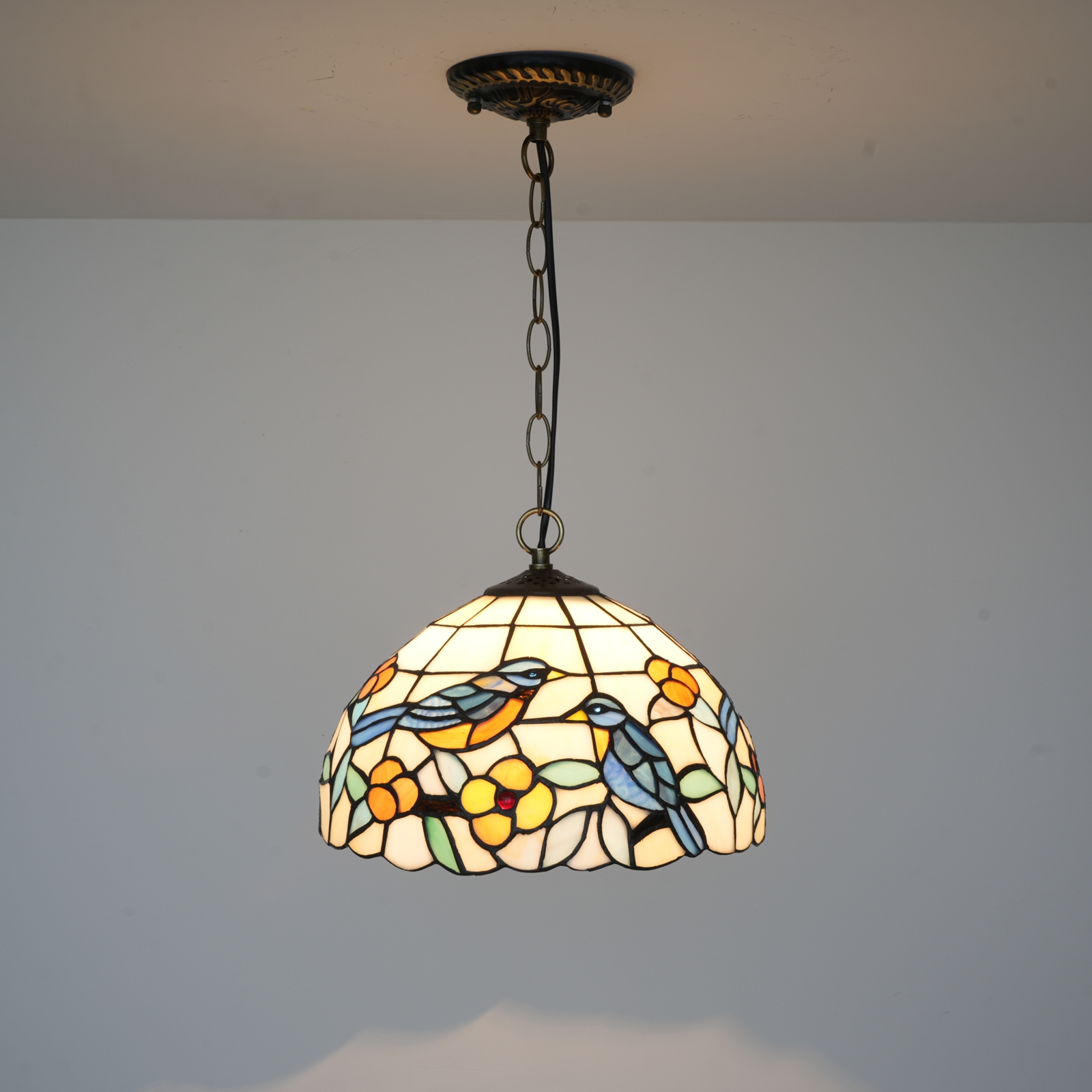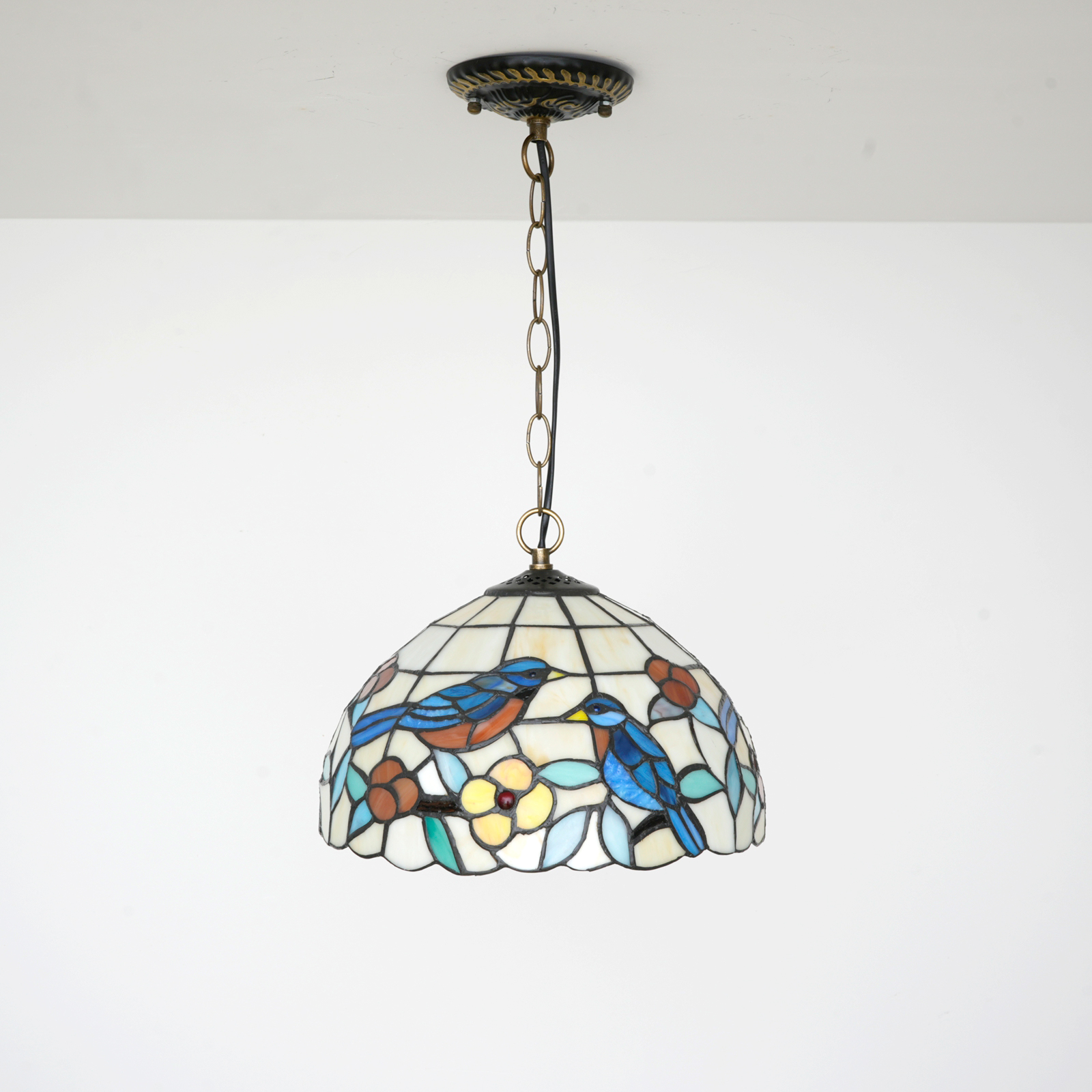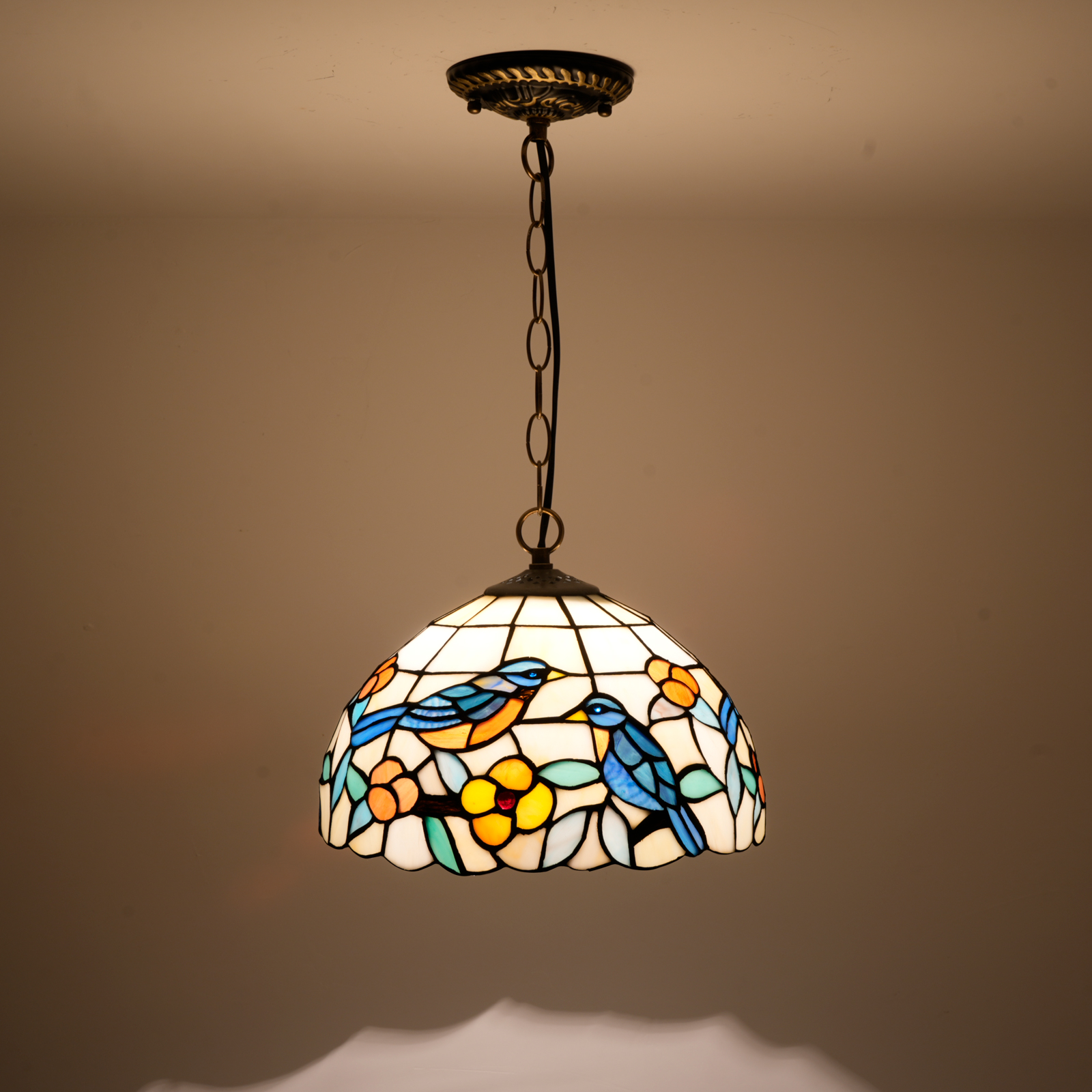 Blivuself Tiffany Style Handmade Creative Stained Glass Chandelier Robin Fit Bedroom Dormitory Living Room Dining Room Traditional Retro Style Home Decoration Classical Art Craft OFP1376