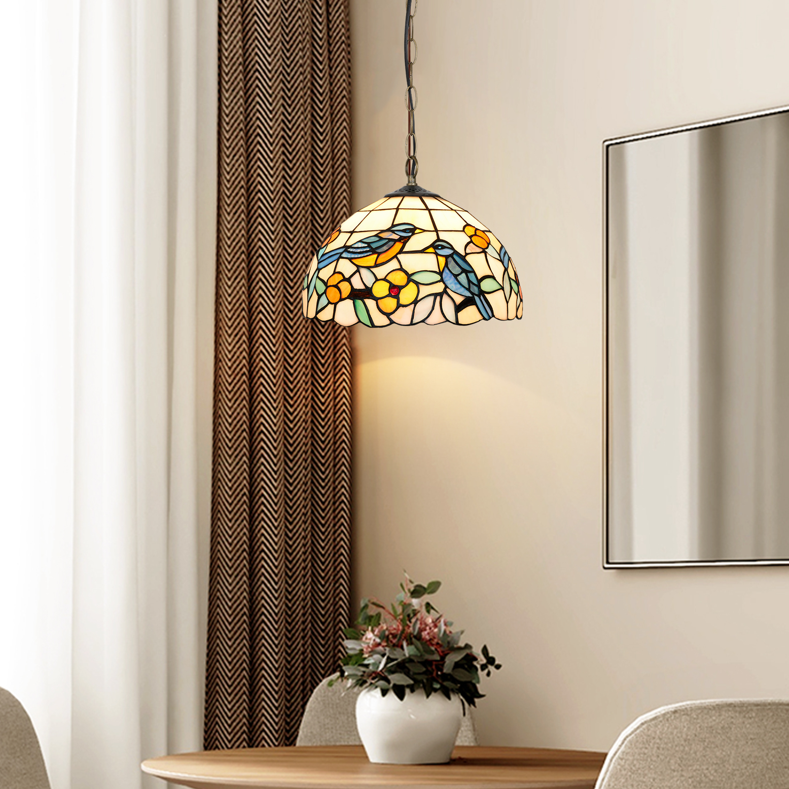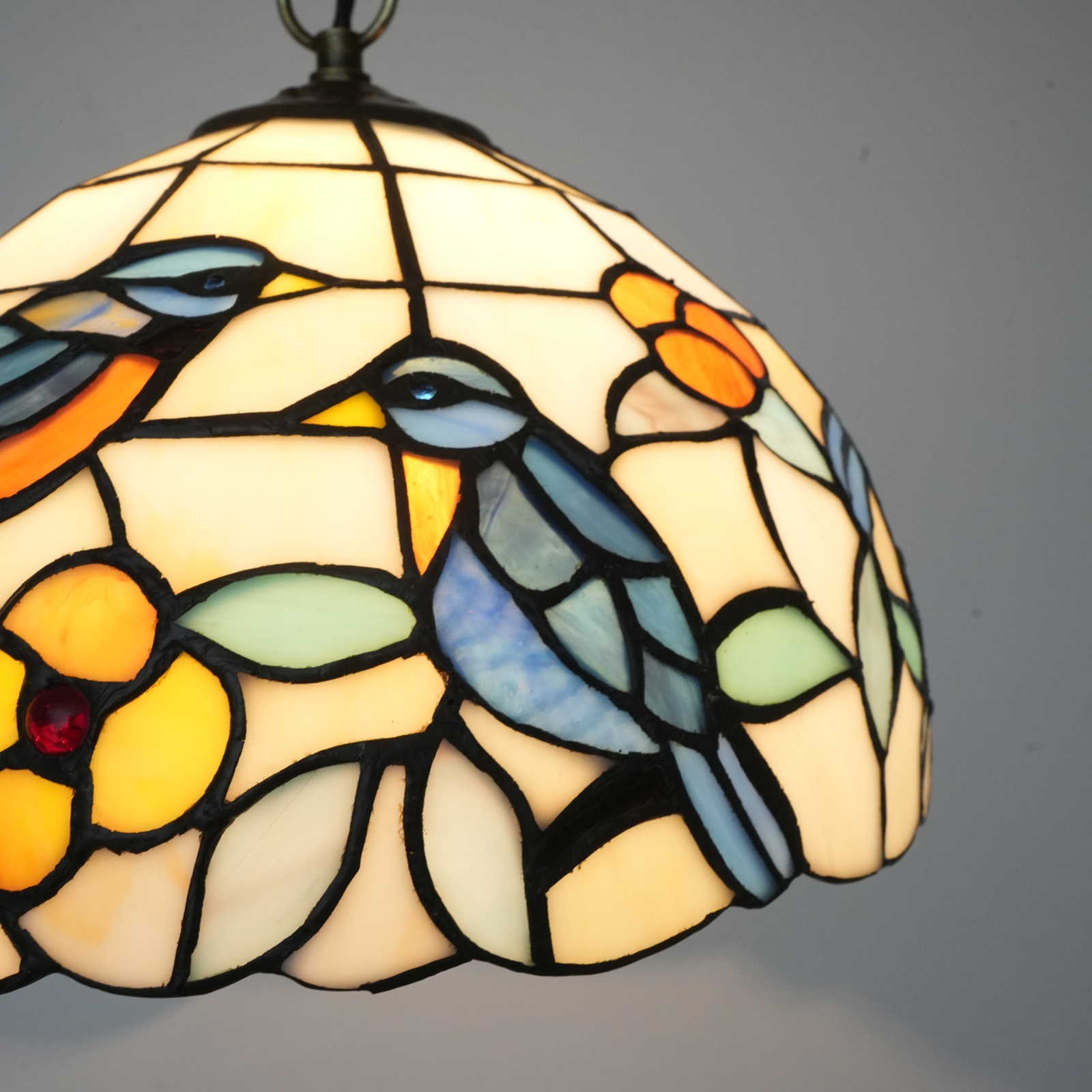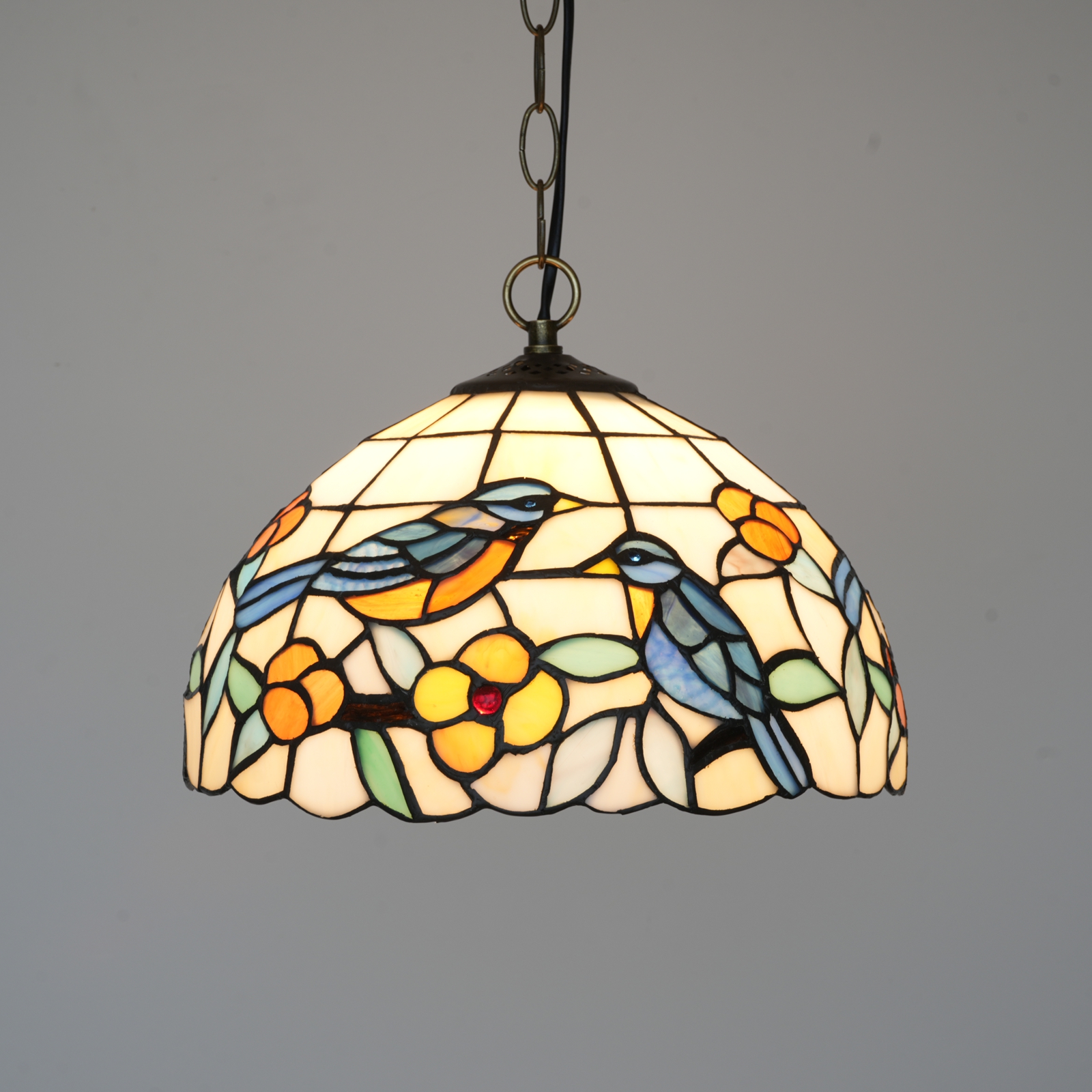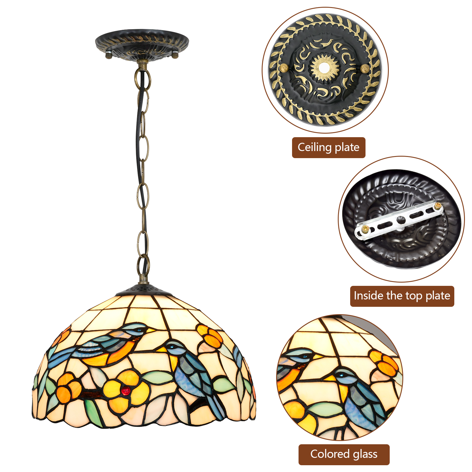 Blivuself Tiffany Style Handmade Creative Stained Glass Chandelier Robin Fit Bedroom Dormitory Living Room Dining Room Traditional Retro Style Home Decoration Classical Art Craft OFP1376