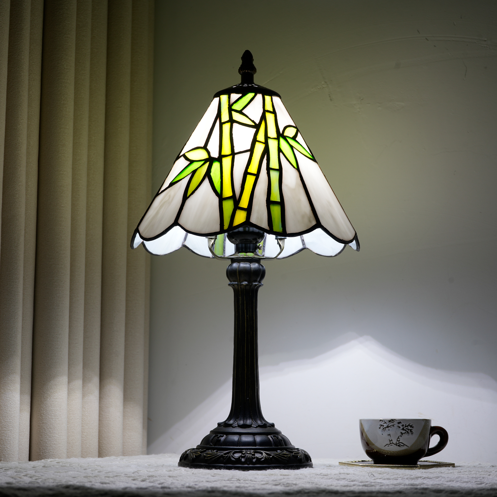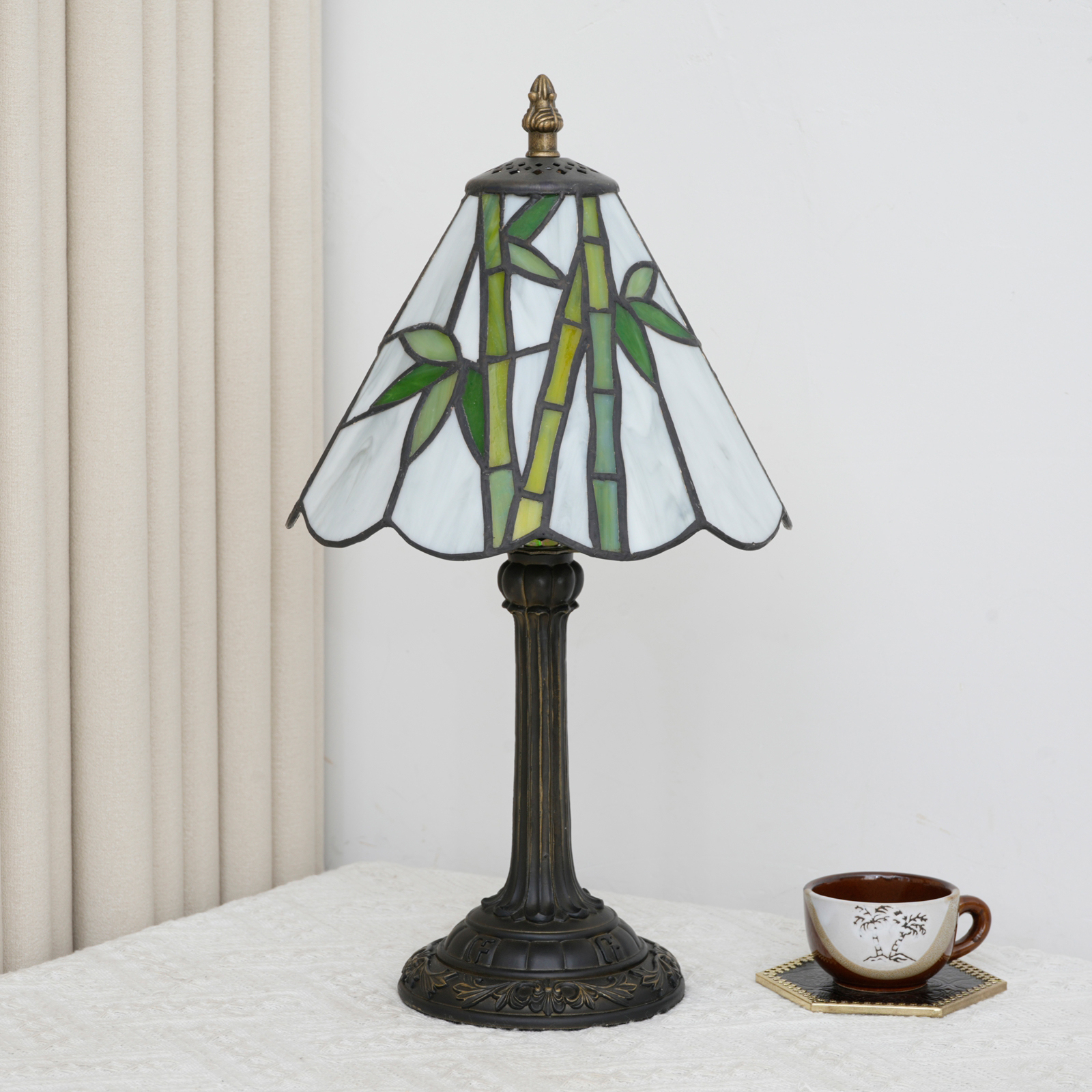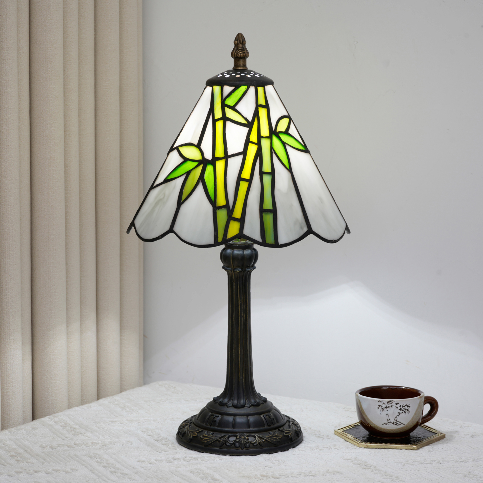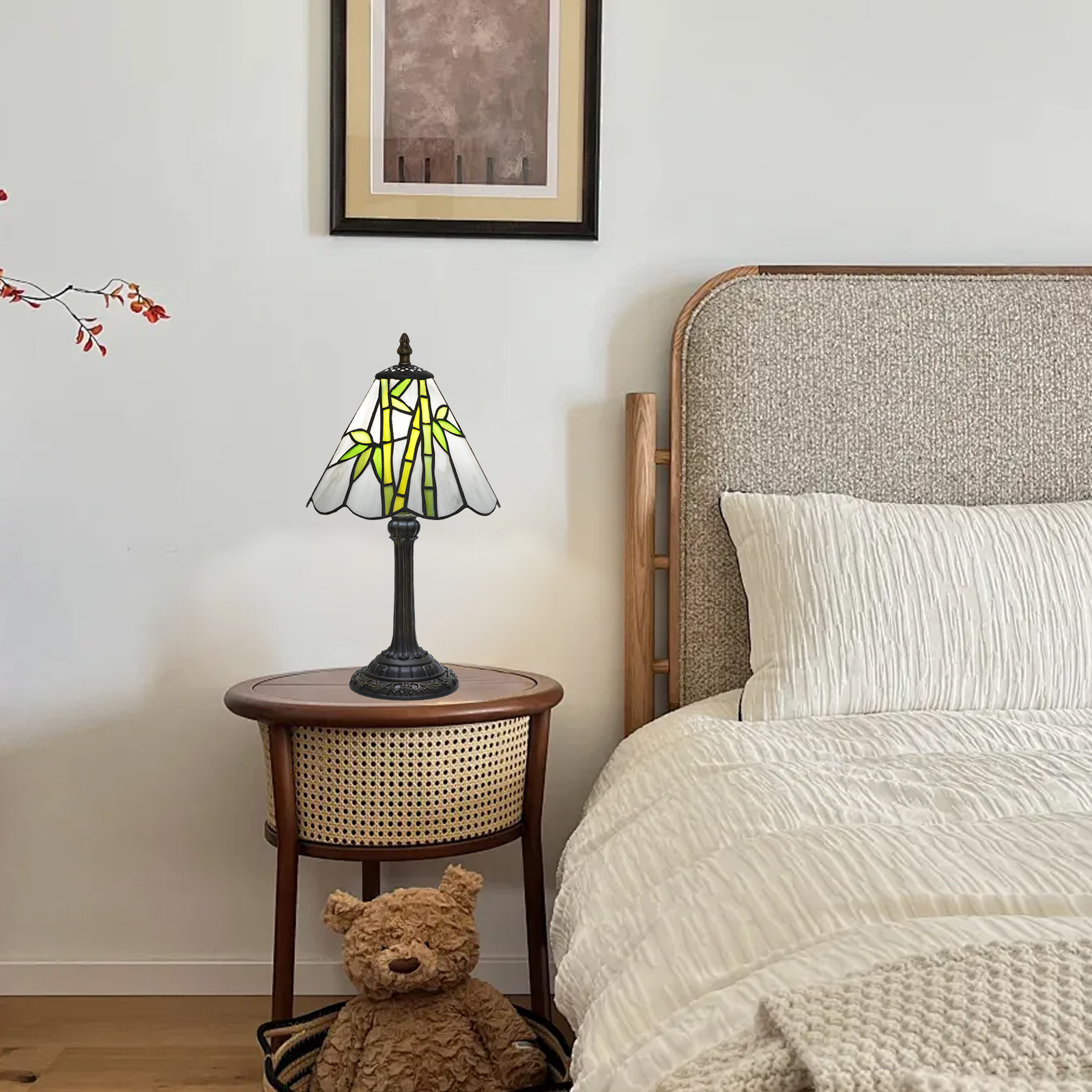 Blivuself Tiffany Style Handmade Creative Stained Glass Table Lamp Green Bamboo Adapted To The Bedroom Dormitory Dining Room And Other Traditional Retro Style Bedside Lamp Home Decoration Classical Art Process OFU1383