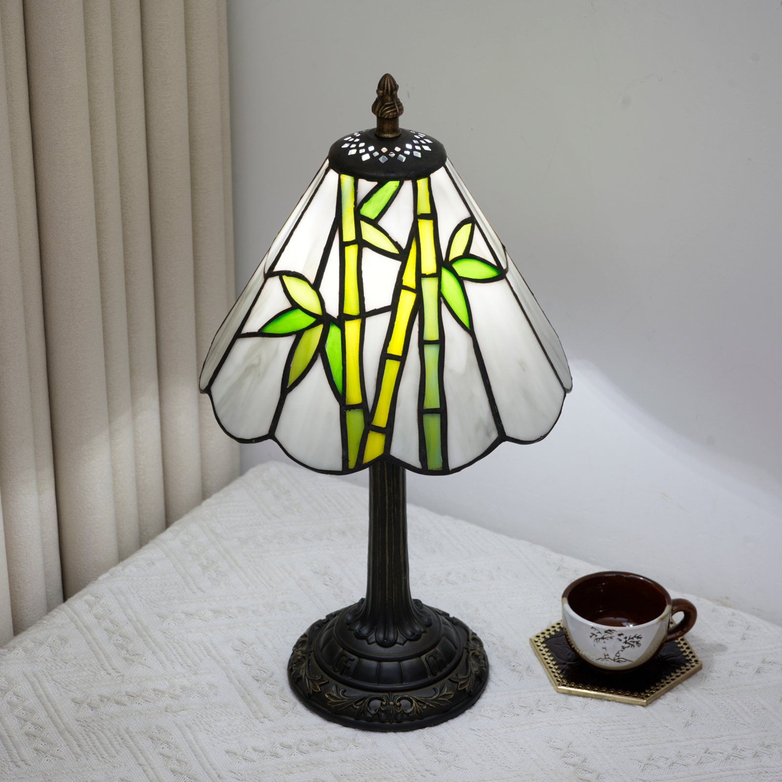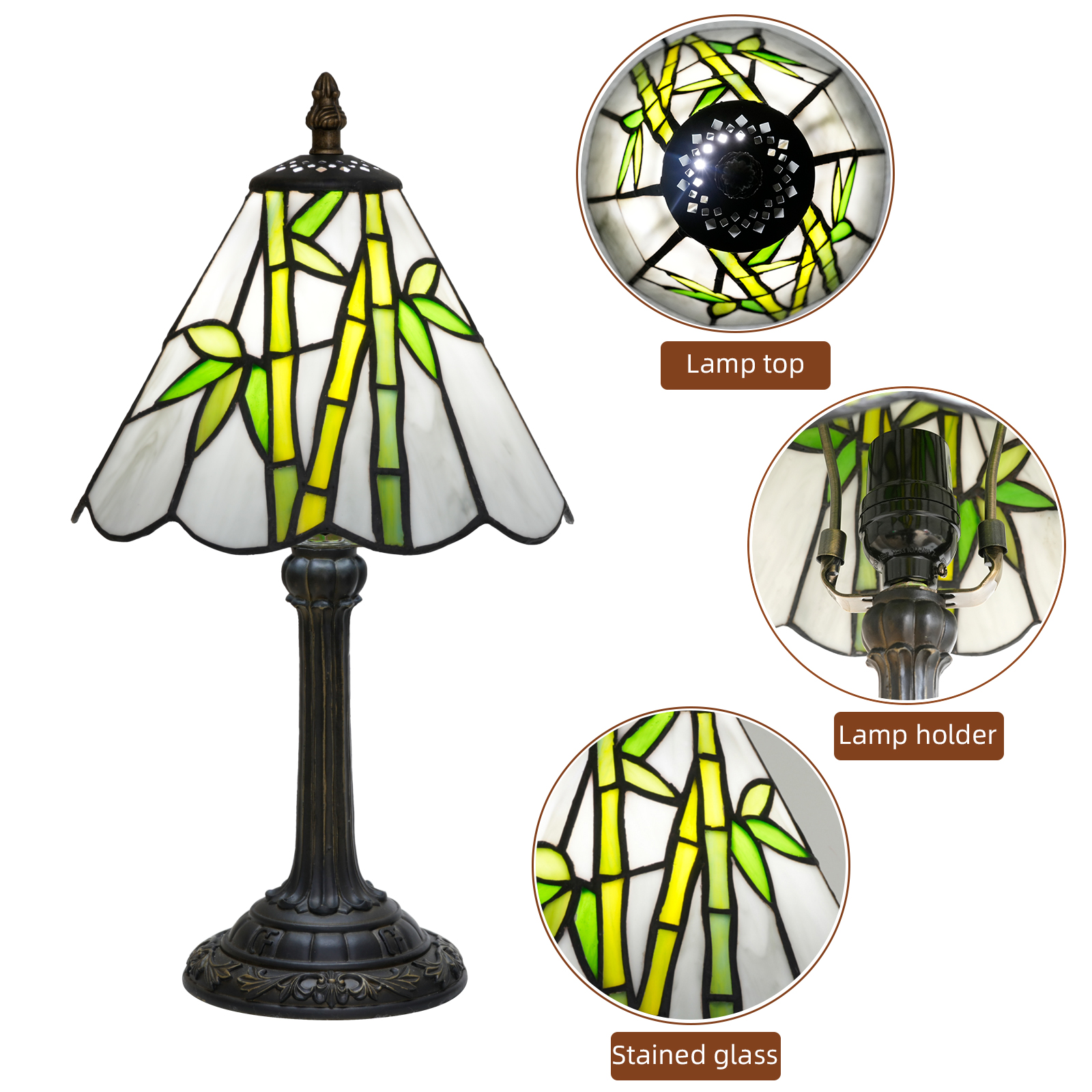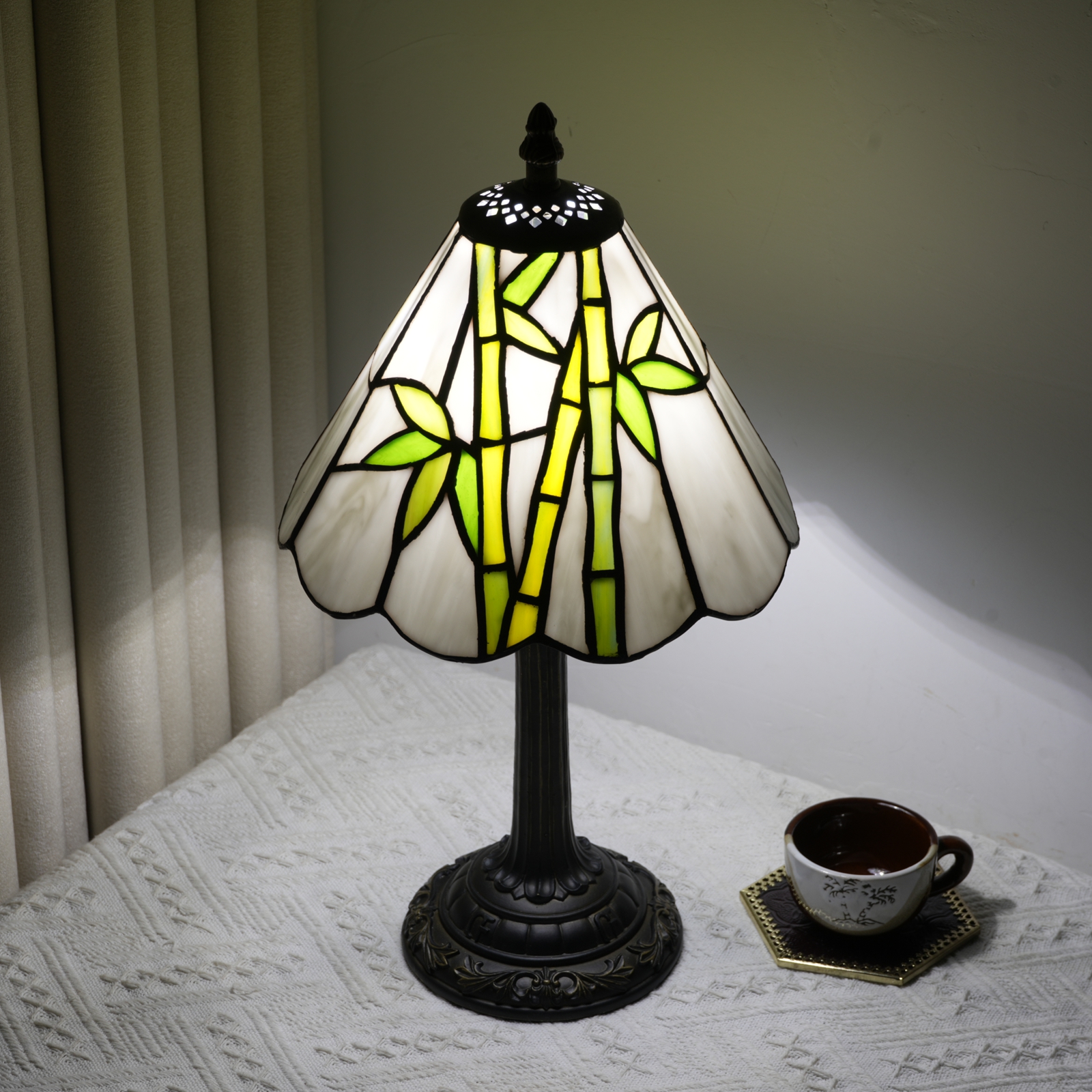 Blivuself Tiffany Style Handmade Creative Stained Glass Table Lamp Green Bamboo Adapted To The Bedroom Dormitory Dining Room And Other Traditional Retro Style Bedside Lamp Home Decoration Classical Art Process OFU1383