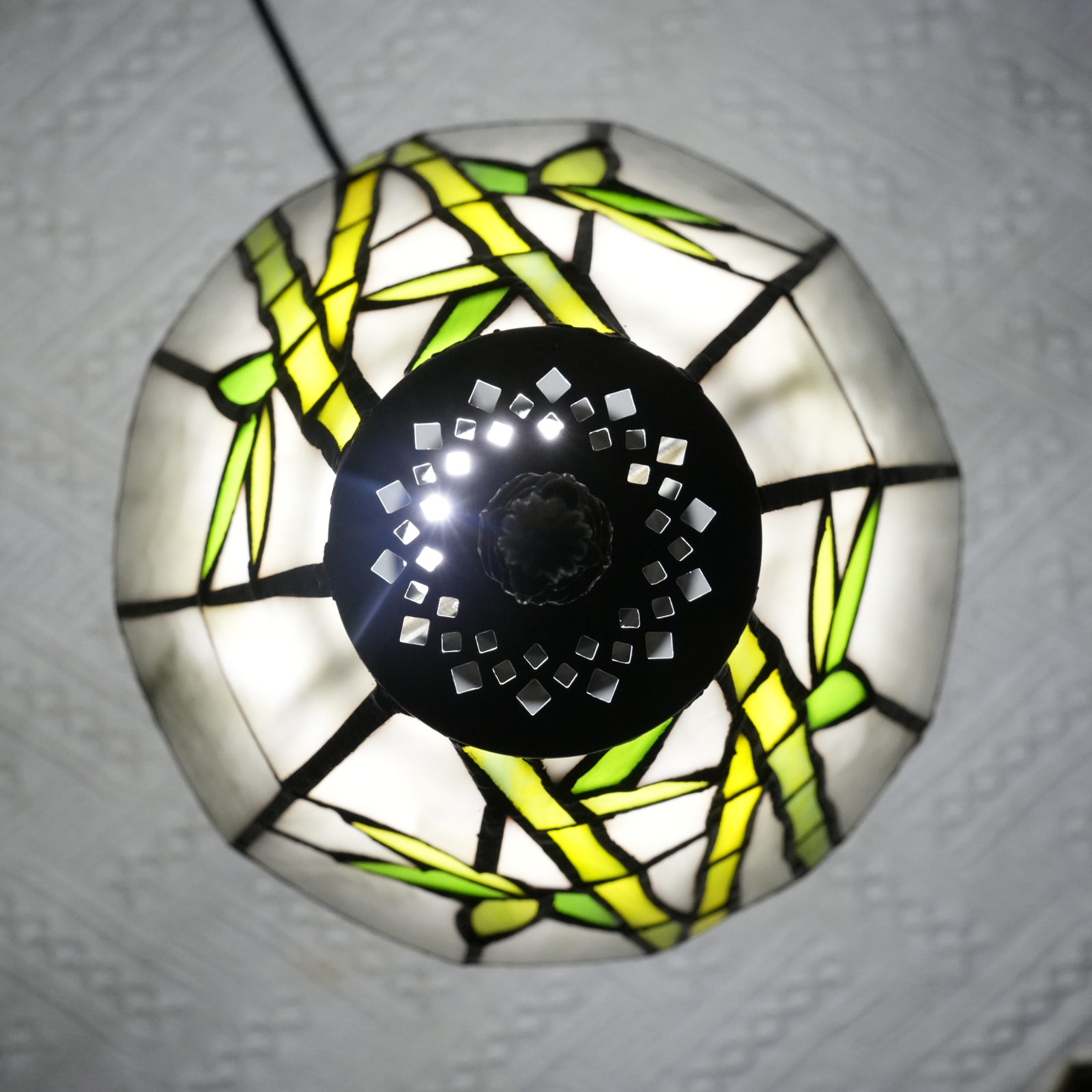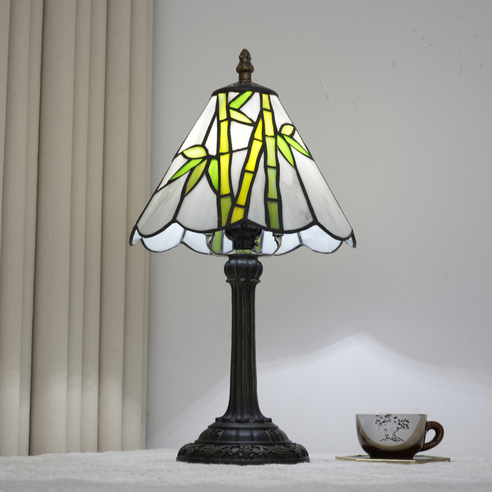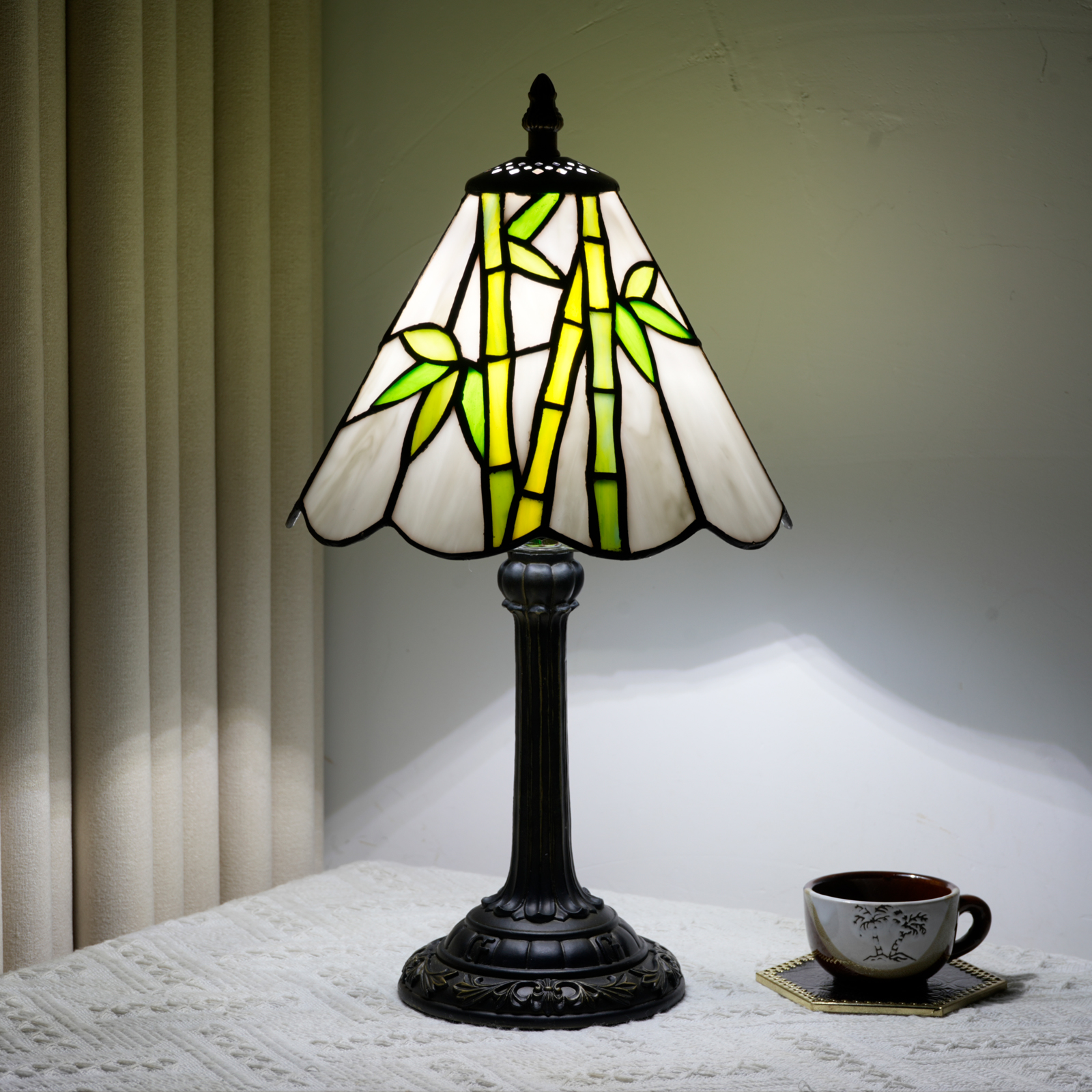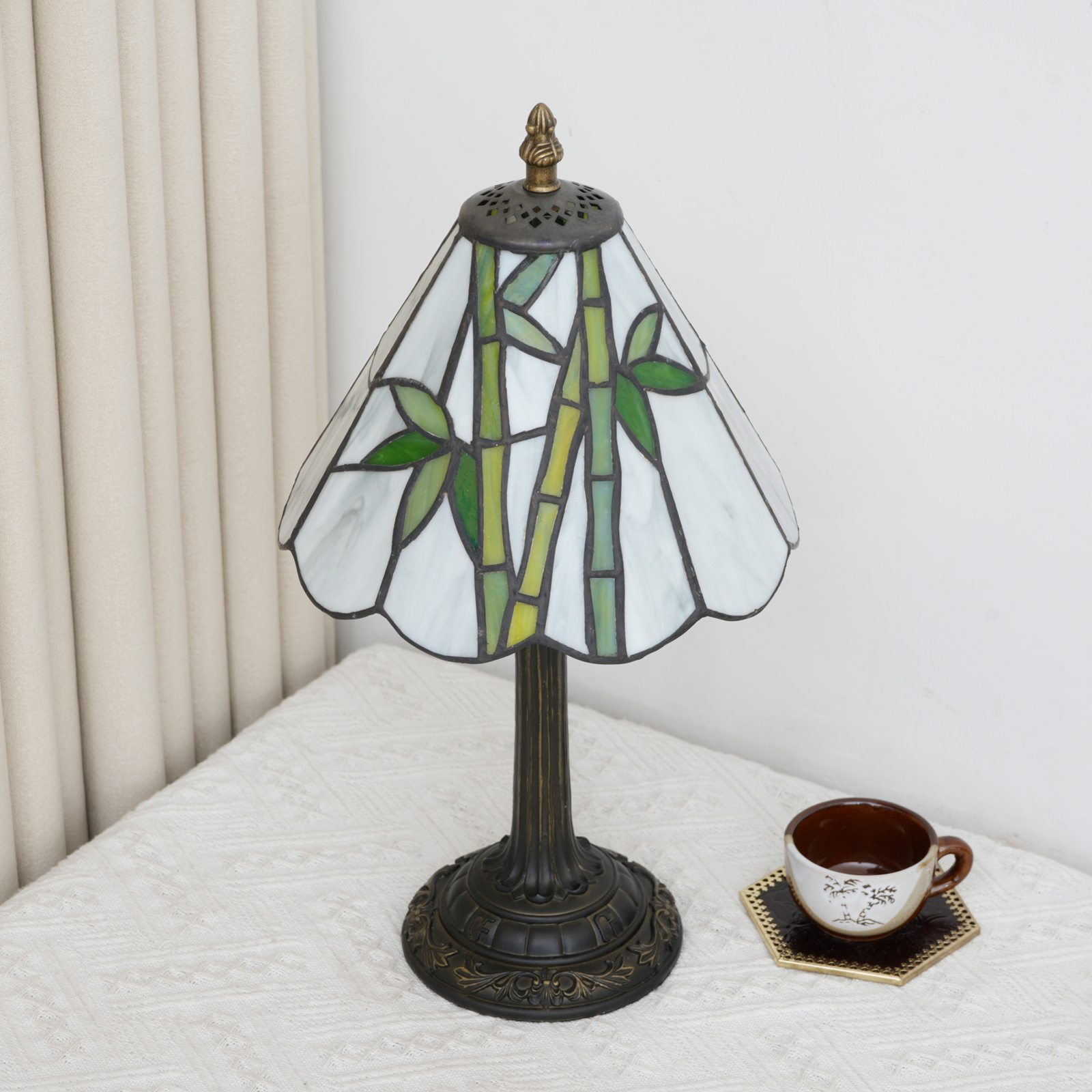 Blivuself Tiffany Style Handmade Creative Stained Glass Table Lamp Green Bamboo Adapted To The Bedroom Dormitory Dining Room And Other Traditional Retro Style Bedside Lamp Home Decoration Classical Art Process OFU1383