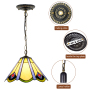 Blivuself Tiffany Style Stained Glass 12-Inch Yellow Umbrella Chandelier European And American Retro Garden Style Suitable For Living Room, Dining Room, Bedroom, Bar And Other Indoor Home Decoration 12-Inch Japanese Umbrella - Conventional Single Chain Chandelier OFP1187