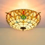 Blivuself Tiffany Style Stained Glass 24-Inch Warm Yellow Flat Mouth Semi-Ceiling Light European And American Retro Style, Suitable For Living Room, Dining Room, Bedroom, Bar And Other Indoor Home Decoration 24-Inch Baroque Flat Mouth - Semi-Ceiling Light OFC8004