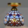 Blivuself Tiffany Style Stained Glass 8-Inch Lavender Purple Ceiling Light European And American Retro Style, Suitable For Living Room, Dining Room, Bedroom, Bar And Other Indoor Home Decoration 8-Inch Blue Baroque Big Mouth - Small Ceiling Light OFC1020