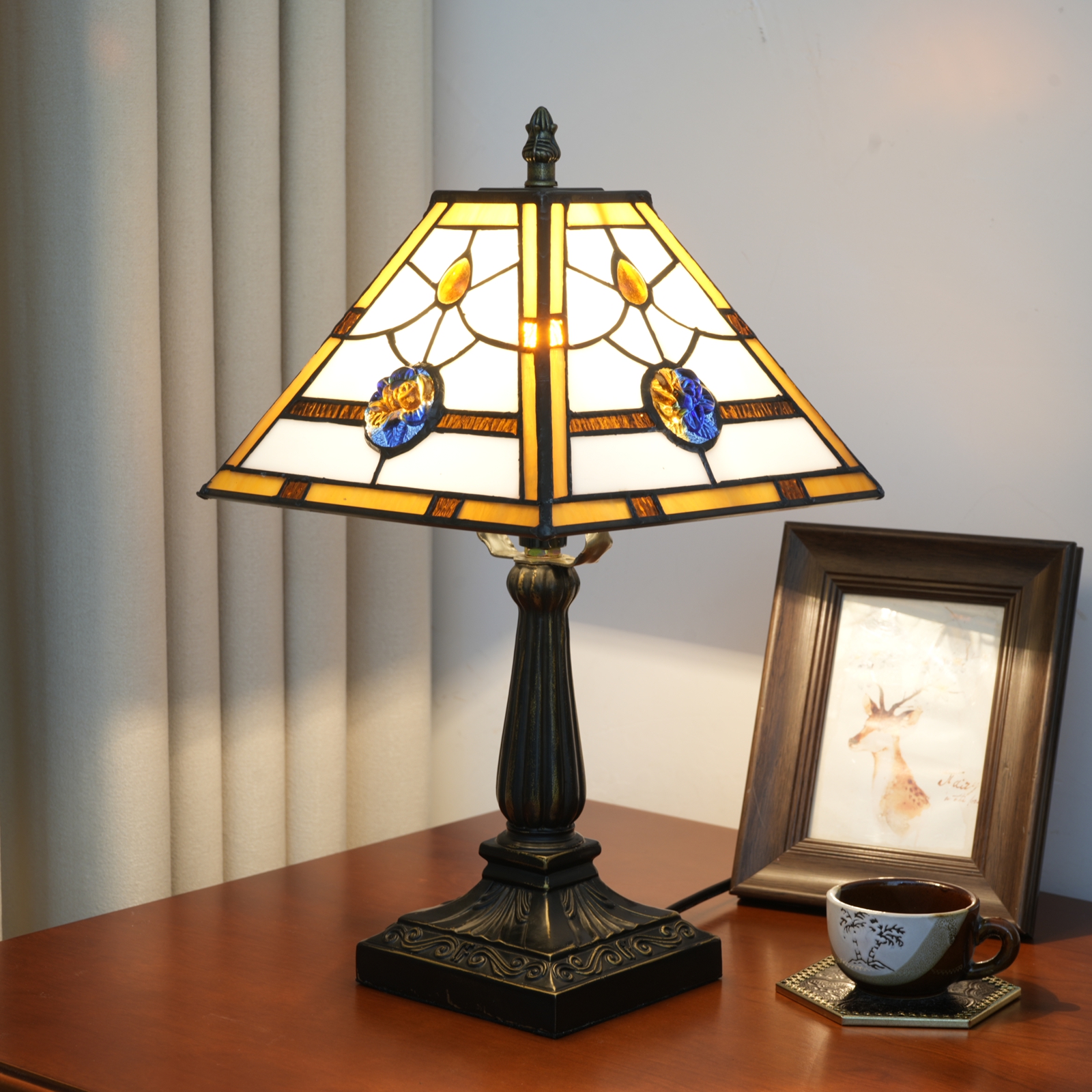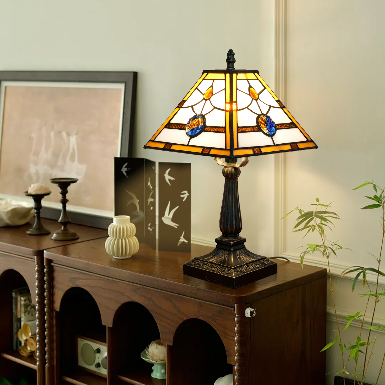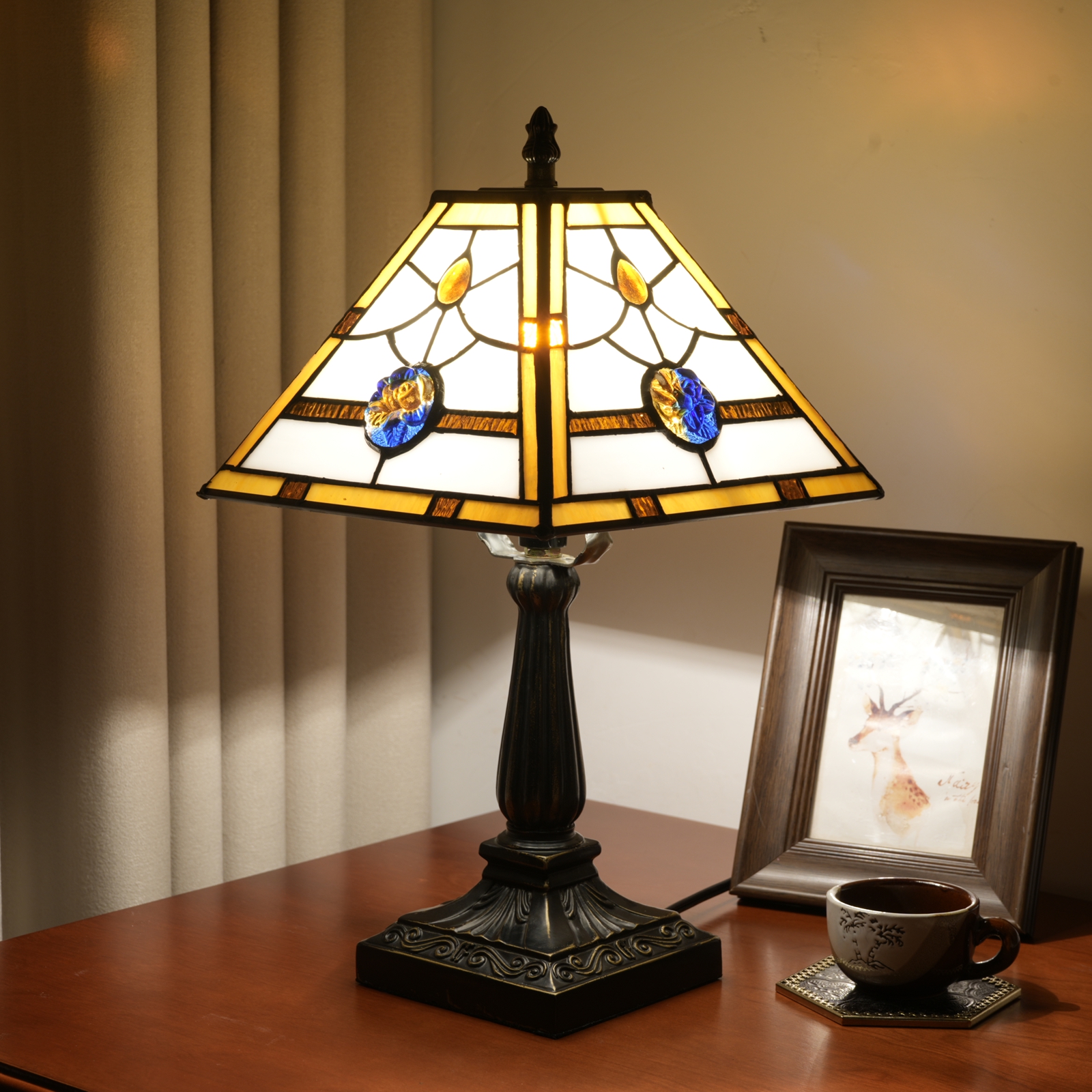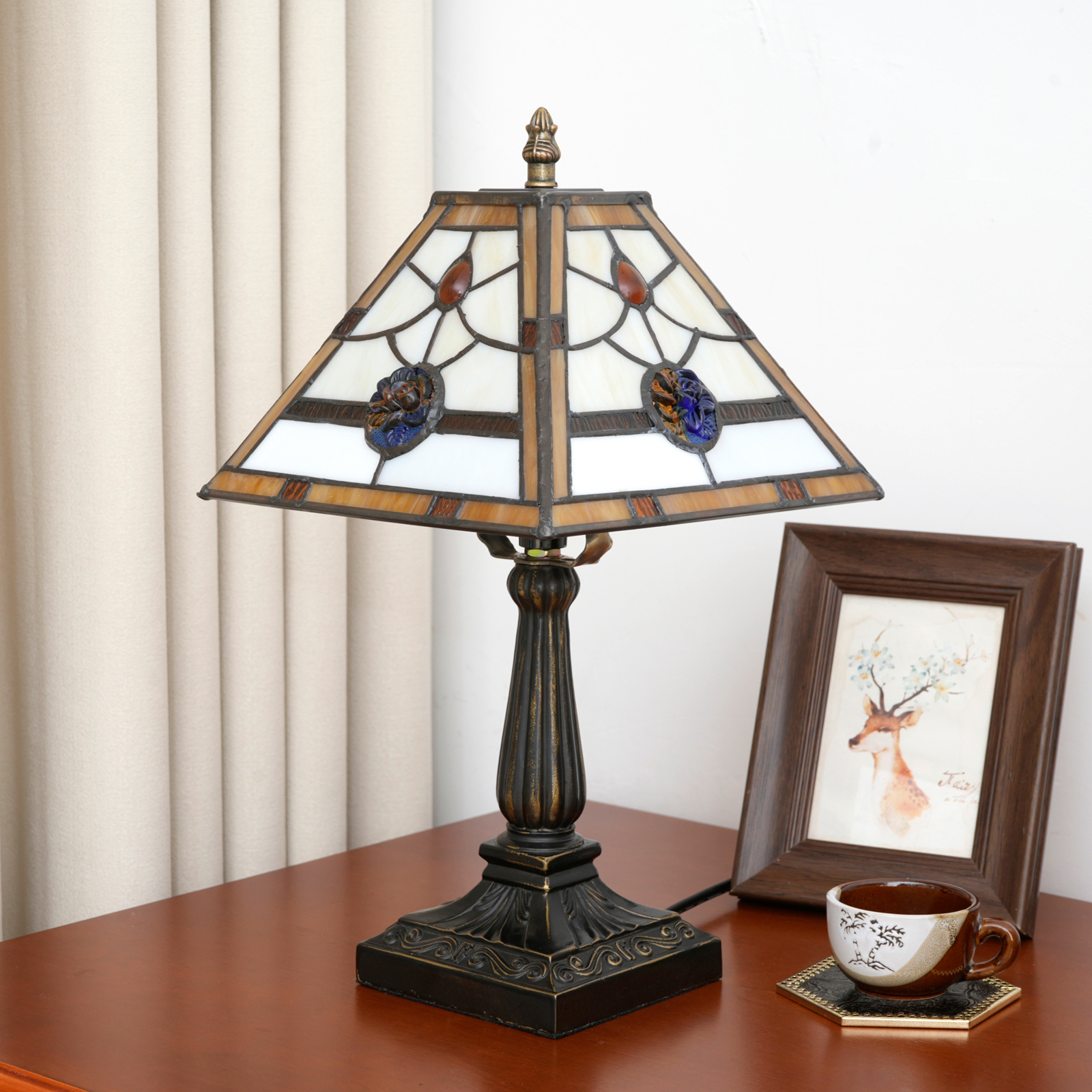 Blivuself Tiffany Table Lamp Red Blue Rose Beads Square Stained Glass Lamp Warm Light Warm Atmosphere Bedside Lamp Suitable For Bedroom Dormitory Dining Room And Other Tiffany Style Retro Home Decoration (8 Inches, OFU1336)