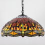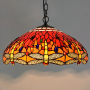 Blivuself Tiffany Style Stained Glass 18-Inch Deep Red Chandelier European And American Retro Garden Style Suitable For Living Room, Dining Room, Bedroom, Bar And Other Indoor Home Decoration 18-Inch Red Dragonfly - Conventional Three-Light Chain Chandelier OFP1090