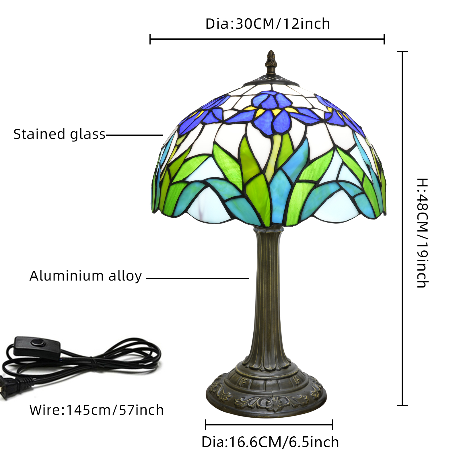 12 Inch Blue And White Iris Tiffany Stained Glass Table Lamp: The Art Of Light And Shadow Into The Life Of The Retro Poetry <OFT1328>