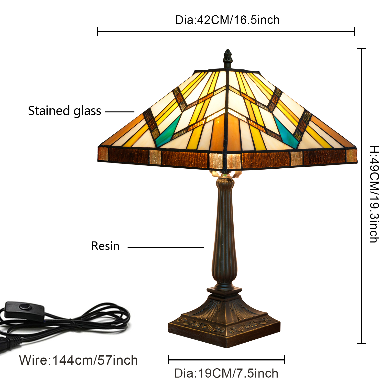 Base diameter 19CM (7.5 inches): The stable square base has an appropriate area, even on a small side table, it can be securely placed.