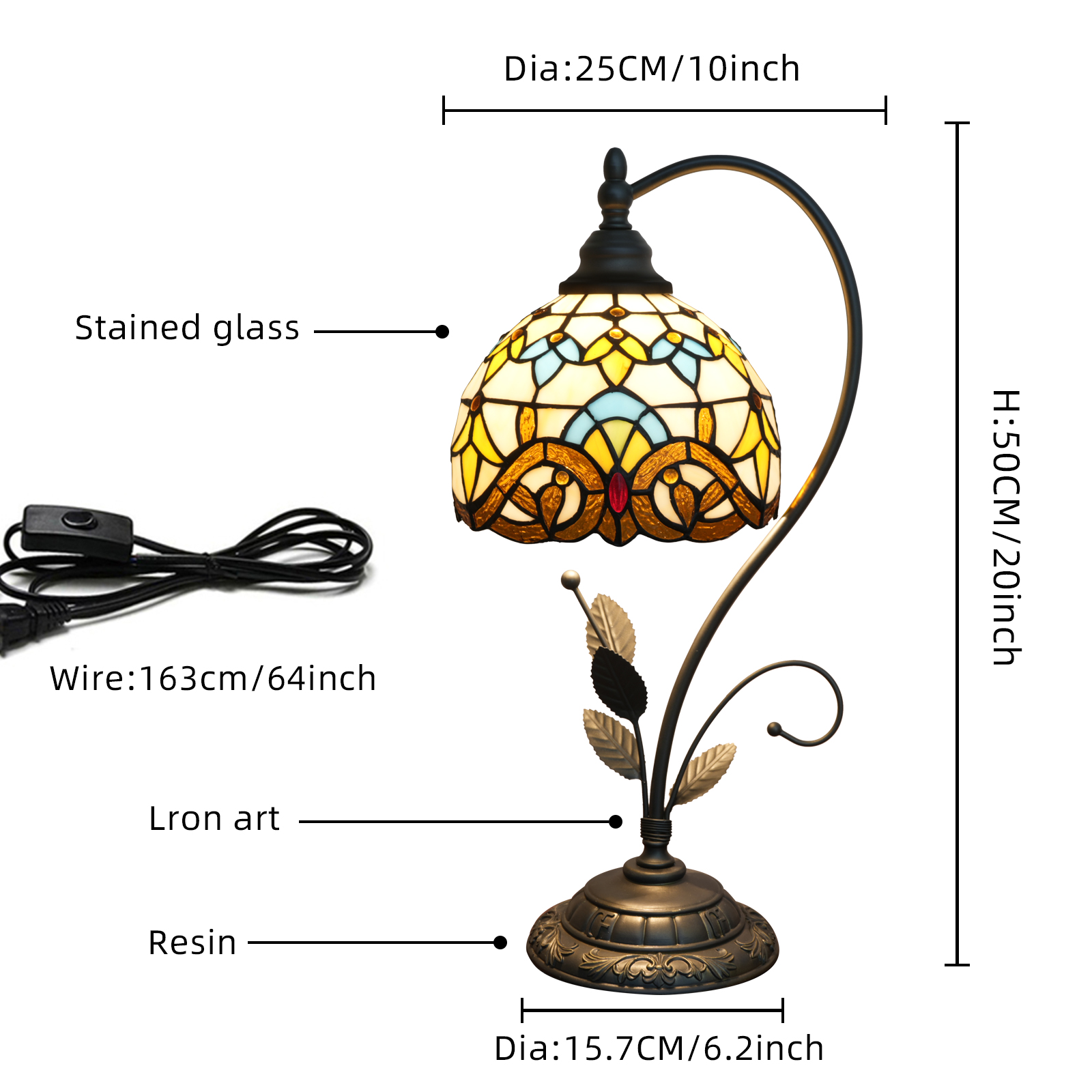 In the flow of light and shadow, a meeting of retro and art unfolds - this Tiffany-style colored glass table lamp, with yellow Baroque as its design core, integrates century-old Tiffany craftsmanship with Baroque's magnificent aesthetics. It is not only a lighting fixture that illuminates the space, but also a home collection that carries artistic texture, infusing each corner with retro romance and warm style.