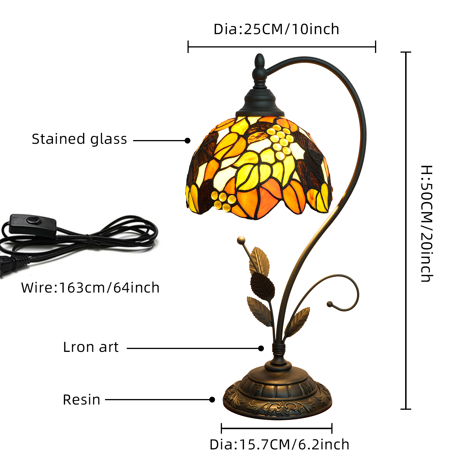 Convenient operation: Equipped with a 163CM (64 inches) long power cord and a remote control switch, it can be easily controlled for the light switch without getting up, using it is convenient and worry-free; the lamp head adopts an adjustable design, which can be adjusted according to the need to adjust the lighting angle, meeting the lighting needs of different scenarios. Durable quality: Made of high-quality colored glass, ironwork and resin materials, the glass is impact-resistant and does not fade easily, the ironwork frame is rust-proof and corrosion-resistant, and the resin base is sturdy and wear-resistant. The overall quality is excellent and the lifespan is long. It is a good home item that can accompany you for many years.