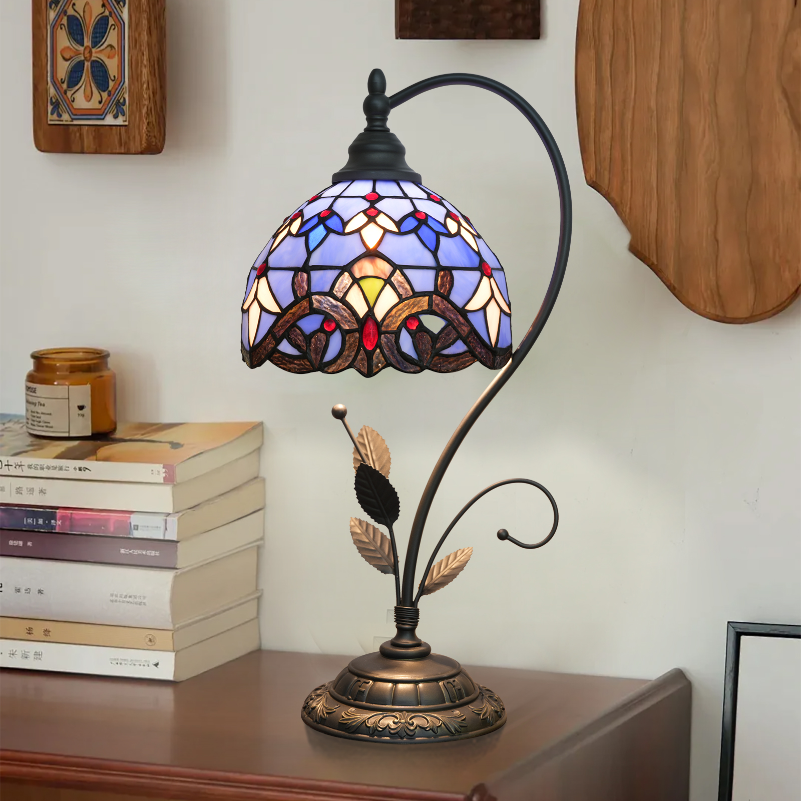 Choosing this Tiffany vintage-style colored glass table lamp is choosing a retro and elegant lifestyle. Let the romantic blue light and shadow accompany you through every tender day and night; let the warmth of handmade art blend into every corner of your life. In the flow of light and shadow, encounter retro aesthetics and enjoy your poetic home life.