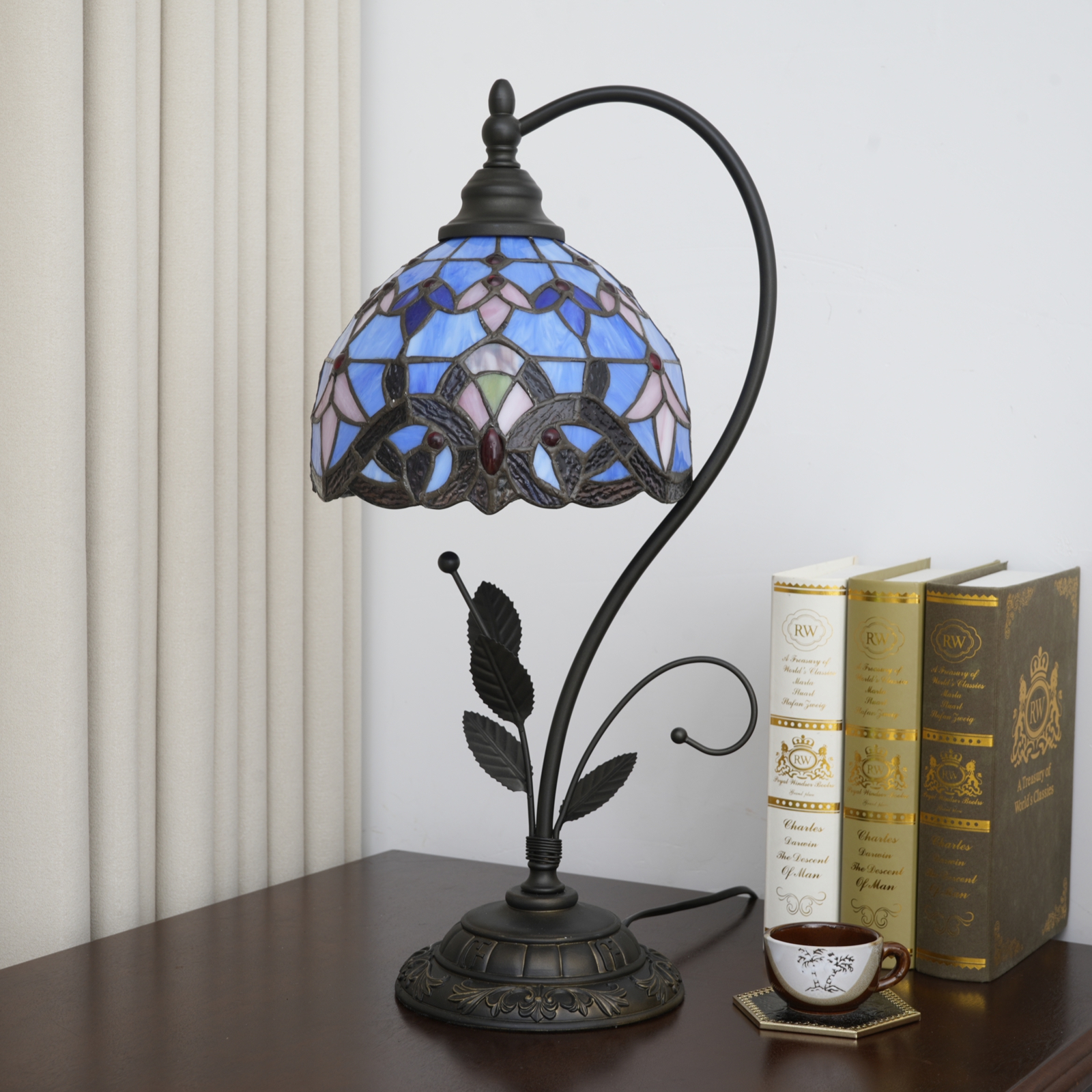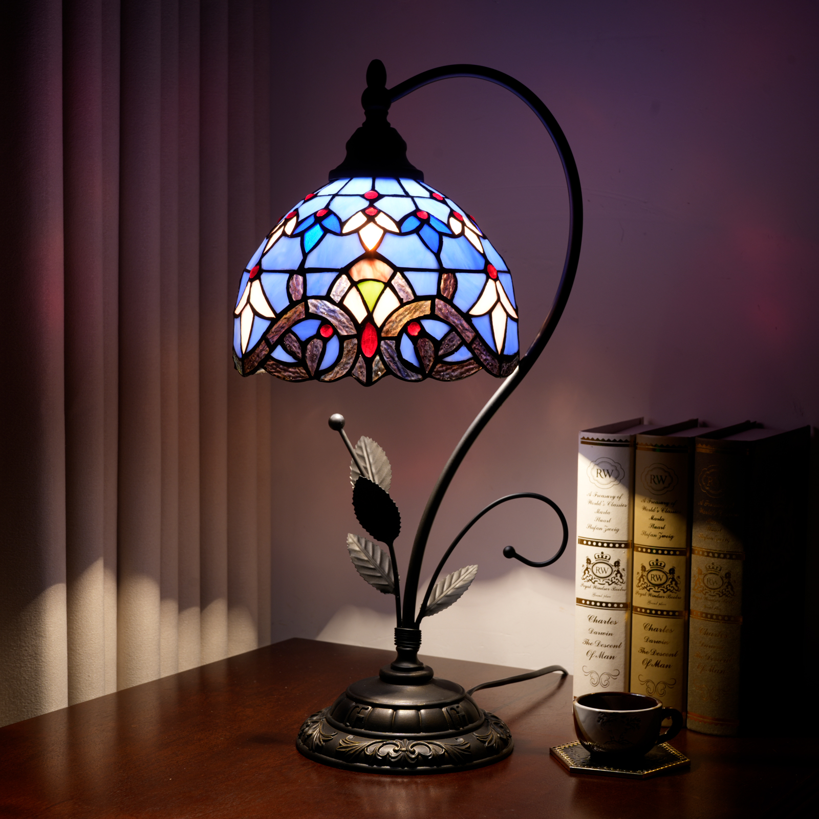 We always adhere to the concept of "Letting art integrate daily life, letting retro light up life", dedicated to combining the classic Tiffany craftsmanship with modern home needs, creating home goods that combine aesthetics and practicality. This blue Baroque leaf table lamp is meticulously crafted at every stage of its design and production, aiming to make each product an artistic masterpiece that can withstand the test of time. We believe that a good lamp not only illuminates the space but also brings poetry and romance to life, making ordinary home moments unique due to art.