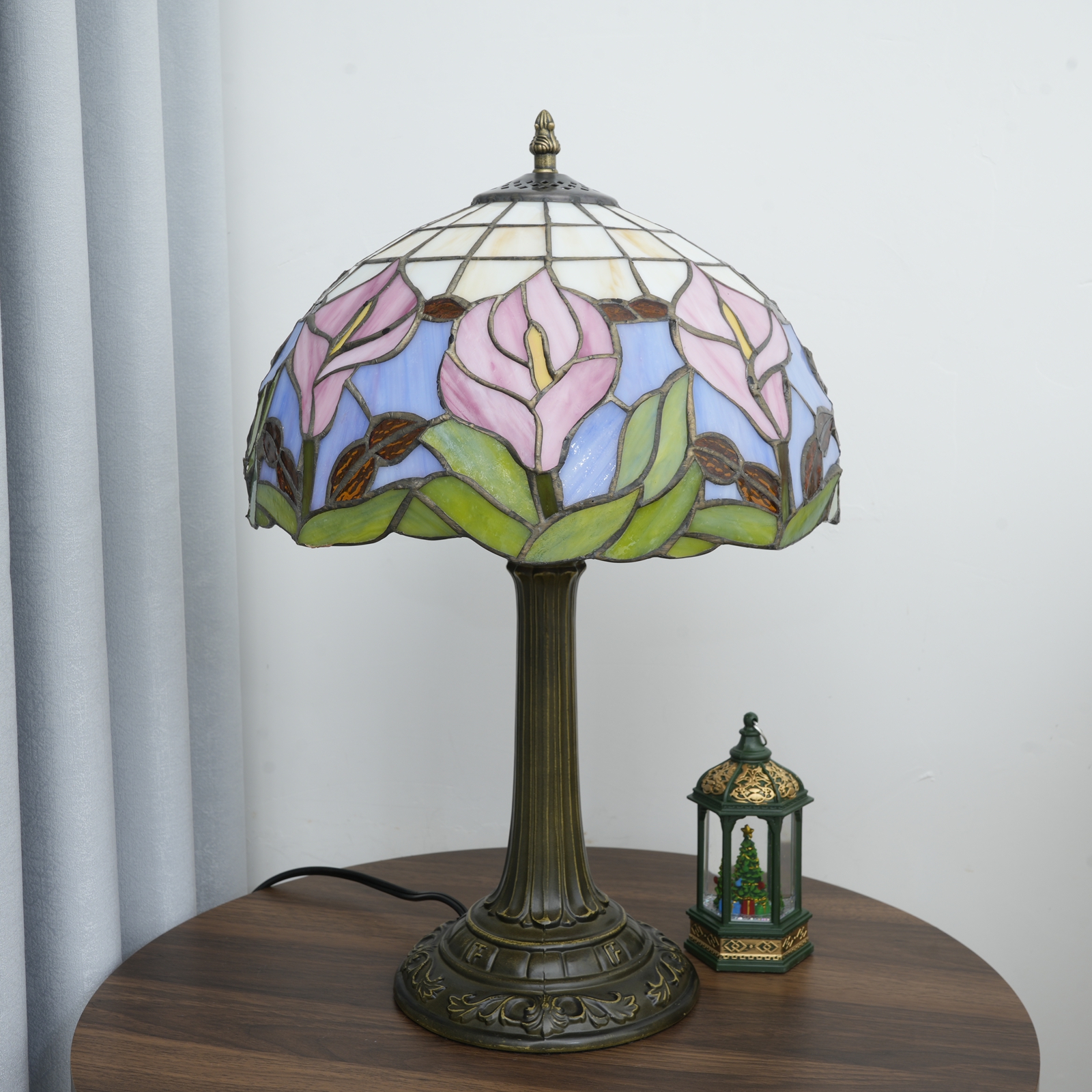 When night falls, simply press the switch, and this Tiffany lamp will use its gentle light to dispel the fatigue and noise of the day. The pink calla lilies bloom in the light and shadow, as if telling a story about beauty and time.
