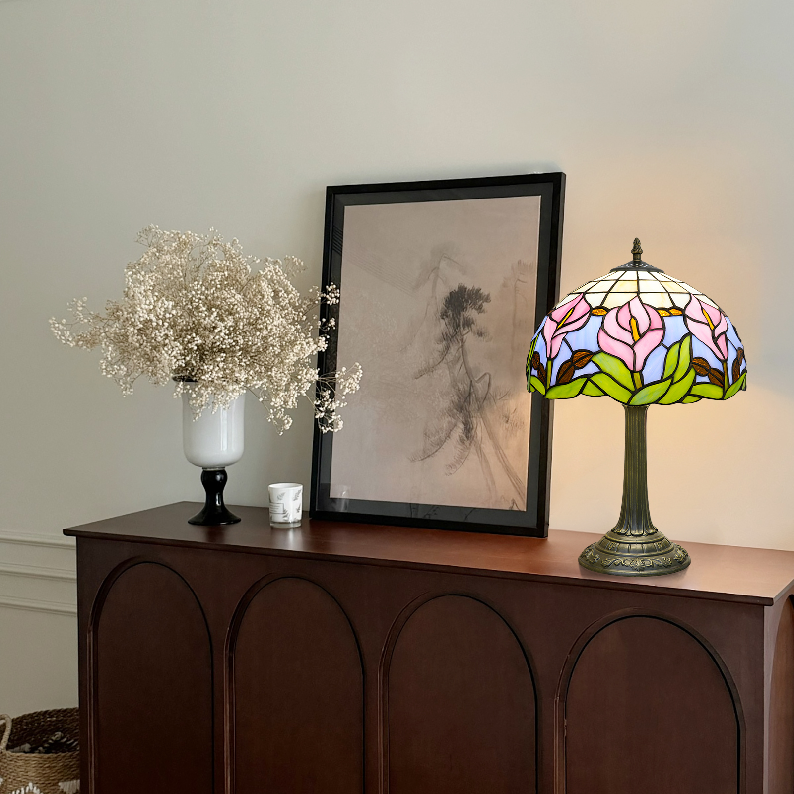 In the hustle and bustle of modern life, there is always a longing that drives us back to pure aesthetics and warm textures. This Tiffany vintage-style colored glass table lamp, with its unique pink calla lily design, is not just a lamp but also a home art piece that carries the essence of a century of art, injecting eternal elegance and poetry into your space.