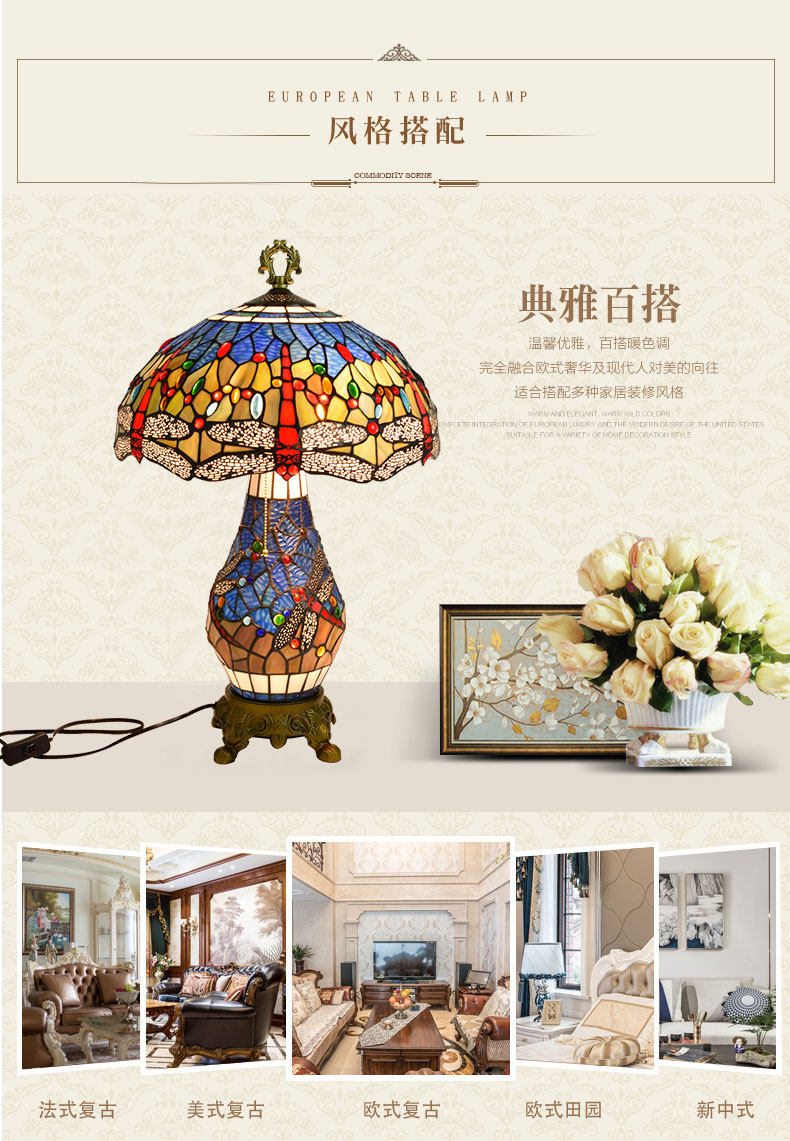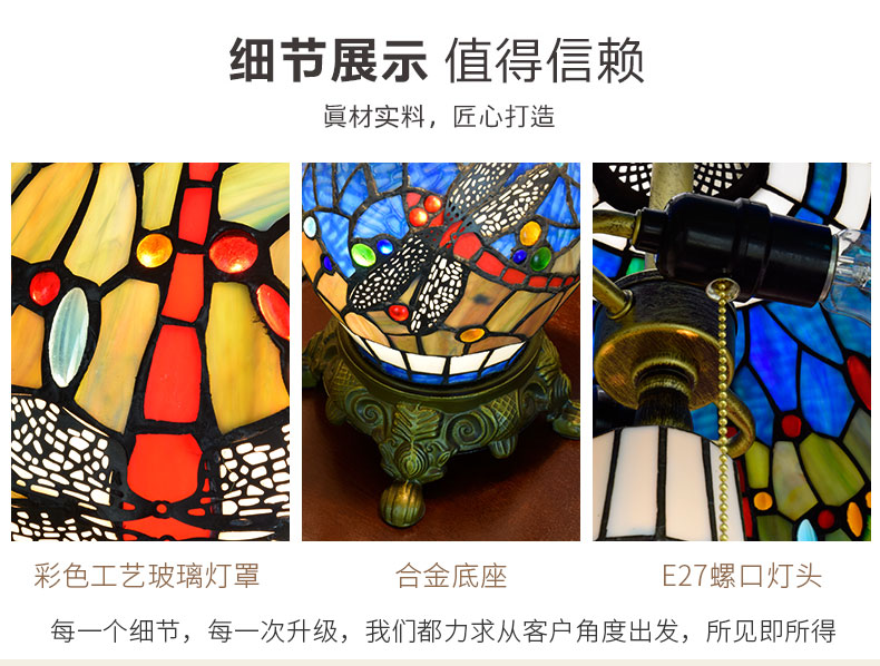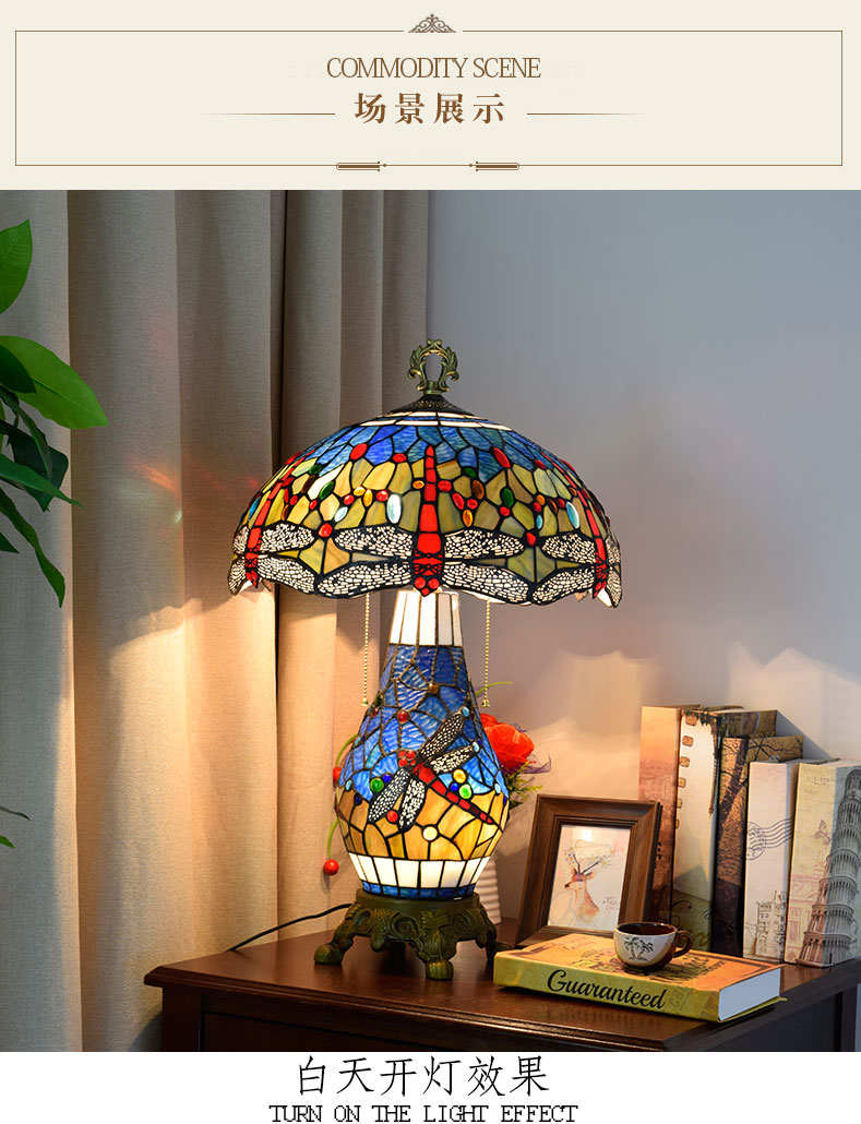 In this fast-paced era, we often overlook the beauty in life. And this Tiffany-style colored glass dragonfly twin table lamp is intended to remind us: Art is never a distant luxury, it can be a lamp, a beam of light, accompanying us and warming our daily lives. When you press the switch, the colorful light and shadow flow through the space, and the agile dragonflies dance in the light and shadow. You will discover that life can be so poetic and so beautiful. It is not just a piece of lighting fixture, but also an expression of a lifestyle - in the noisy world, hold onto the inner tranquility and beauty, and let art become a part of your daily life.