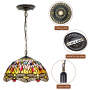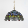 Blivuself Tiffany Style Stained Glass 12 Inch Blue Dragonfly Chandelier European And American Retro Garden Style Suitable For Living Room, Dining Room, Bedroom, Bar And Other Indoor Home Decoration 12 Inch Beads Dragonfly - Regular Single Chain Chandelier OFP1153