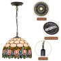 Blivuself Tiffany Style Stained Glass 12-Inch Pink Tulip Flower Chandelier European And American Retro Pastoral Style Suitable For Living Room, Dining Room, Bedroom, Bar And Other Indoor Home Decoration 12-Inch Pink Tulip - Regular Single Chain Chandelier OFP1059