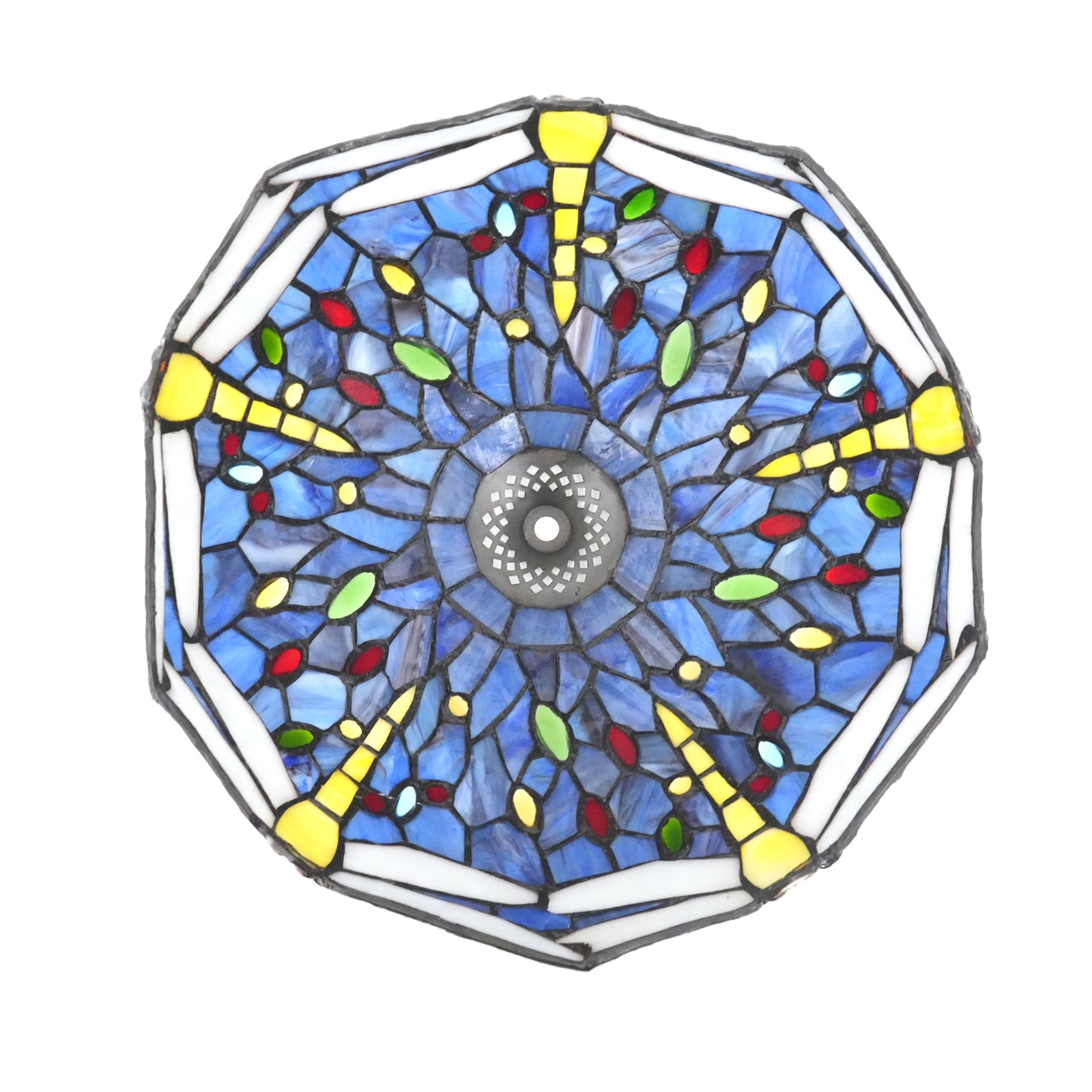 Nearly a thousand hand-cut colored glass pieces are used and precisely spliced through the traditional copper foil wrapping method.