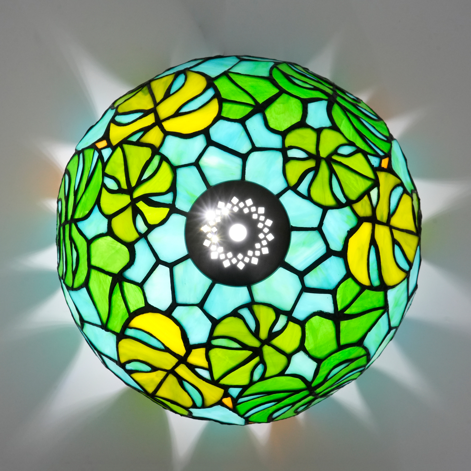 12-Inch Blivuself Tiffany Retro-Style Stained Glass Replacement Lampshade, Rural And Pastoral, Green Palm Leaf Small Opening Design, Suitable For Floor Lamps, Chandeliers, Ceiling Lamps, Etc. (Dz12008x, 1pcs, Monsteradeliciosa Liebm)