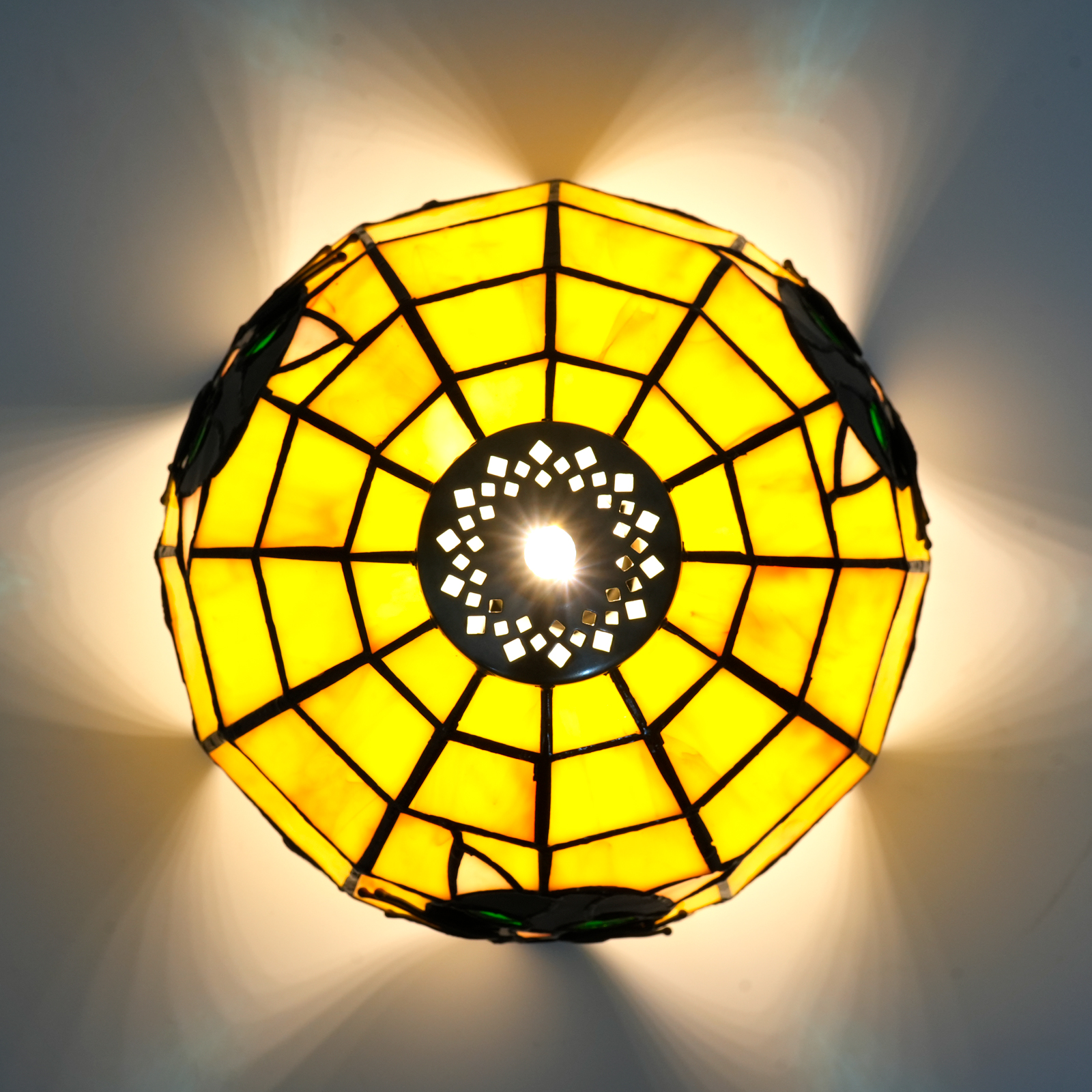 True stained glass lampshade: The lampshade is beautifully hand-crafted from true stained glass. The elaborately handcrafted colored glass lamps are an important part of the art movement. Made of high-quality tinted glass, each lamp undergoes a comprehensive inspection throughout the production process to ensure there are no quality issues. Each product is a unique handicraft. Due to the high-temperature manufacturing process, the glass may contain streaks, ice cracks, rich colors and bubbles. Natural formation is inevitable. Eventually, truth will prevail. They are not only used as household items but also as valuable collectibles. There is a certain gap between the lighting effect on and the lighting effect off in our lighting. Durable and long-lasting, it can effectively prevent scratches and fading, always maintaining an elegant and charming appearance.