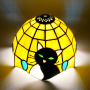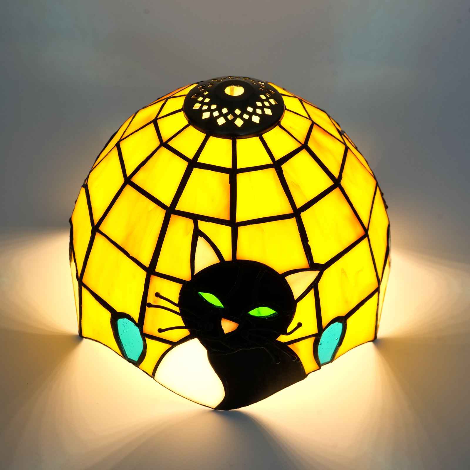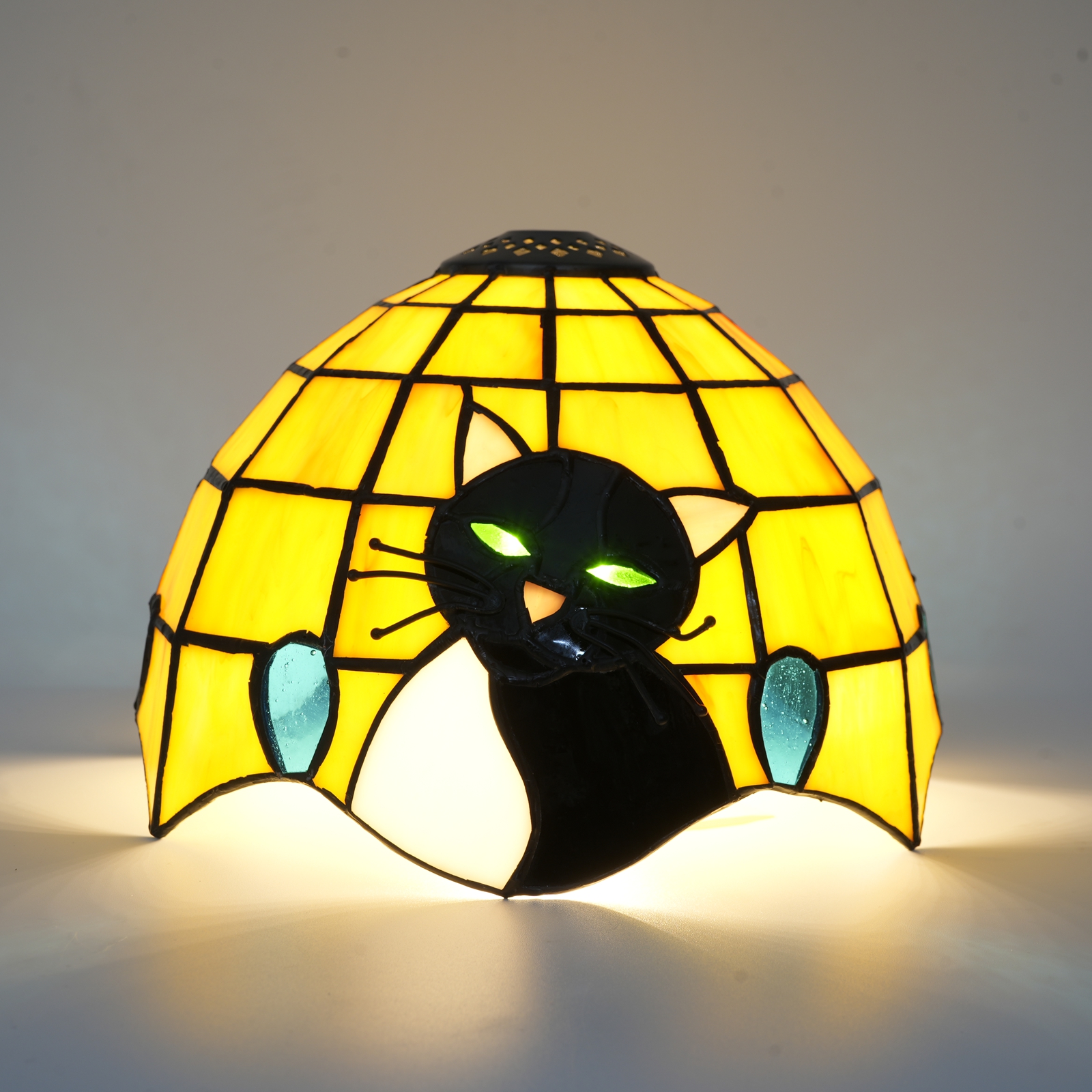 Blivuself Tiffany Stained Glass Lampshade, 8-Inch Warm Black Kitten Pattern, Handcrafted, Small Hole Replacement Design, Suitable For Home Decoration Art Such As Table Lamps And Chandeliers(Yellow,DZ08034X)