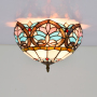 Blivuself Tiffany Style Stained Glass 12 Inch Blue Full Ceiling Light European And American Retro Style, Suitable For Living Room, Dining Room, Bedroom, Bar And Other Indoor Home Decoration 12 Inch Blue Love - Full Ceiling Light OFC4011