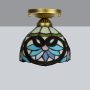 Blivuself Tiffany Style Stained Glass 8-Inch Blue Ceiling Light European And American Retro Style, Suitable For Living Room, Dining Room, Bedroom, Bar And Other Indoor Home Decoration 8-Inch Blue Love big Mouth - Small Ceiling Light OFC1014