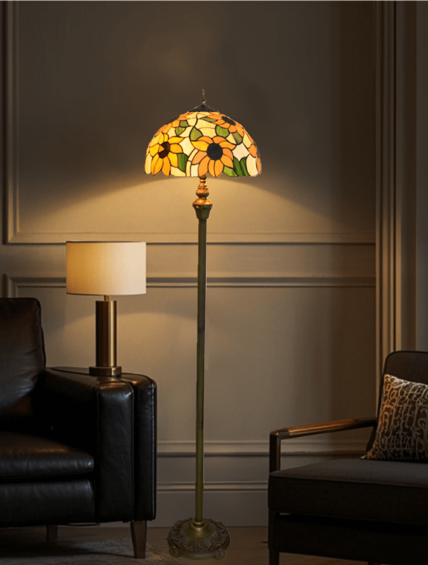 Product name: Blivuself Tiffany 16-inch white sunflower - four-legged bronze floor lamp