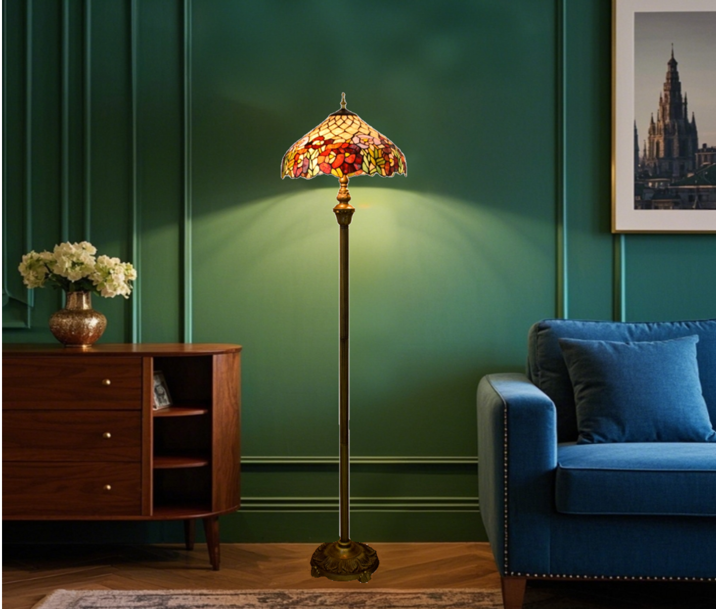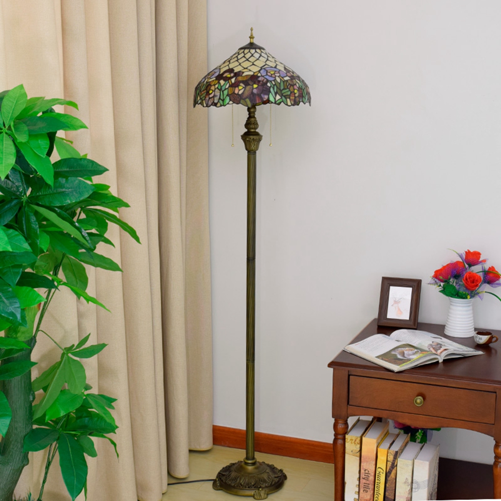 Product name: Blivuself Tiffany 16-inch Clematis - four-legged bronze floor lamp