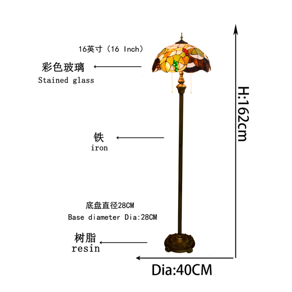 Product name: Blivuself Tiffany 16-inch brown grape - four-legged bronze floor lamp