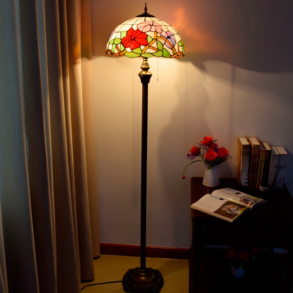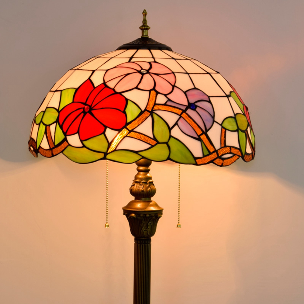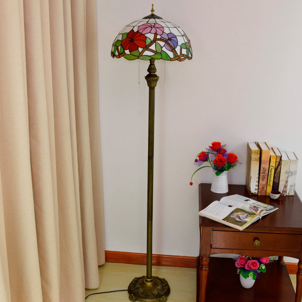 Product name: Blivuself Tiffany 16-inch morning glory - Four-legged bronze floor lamp - three-color flower