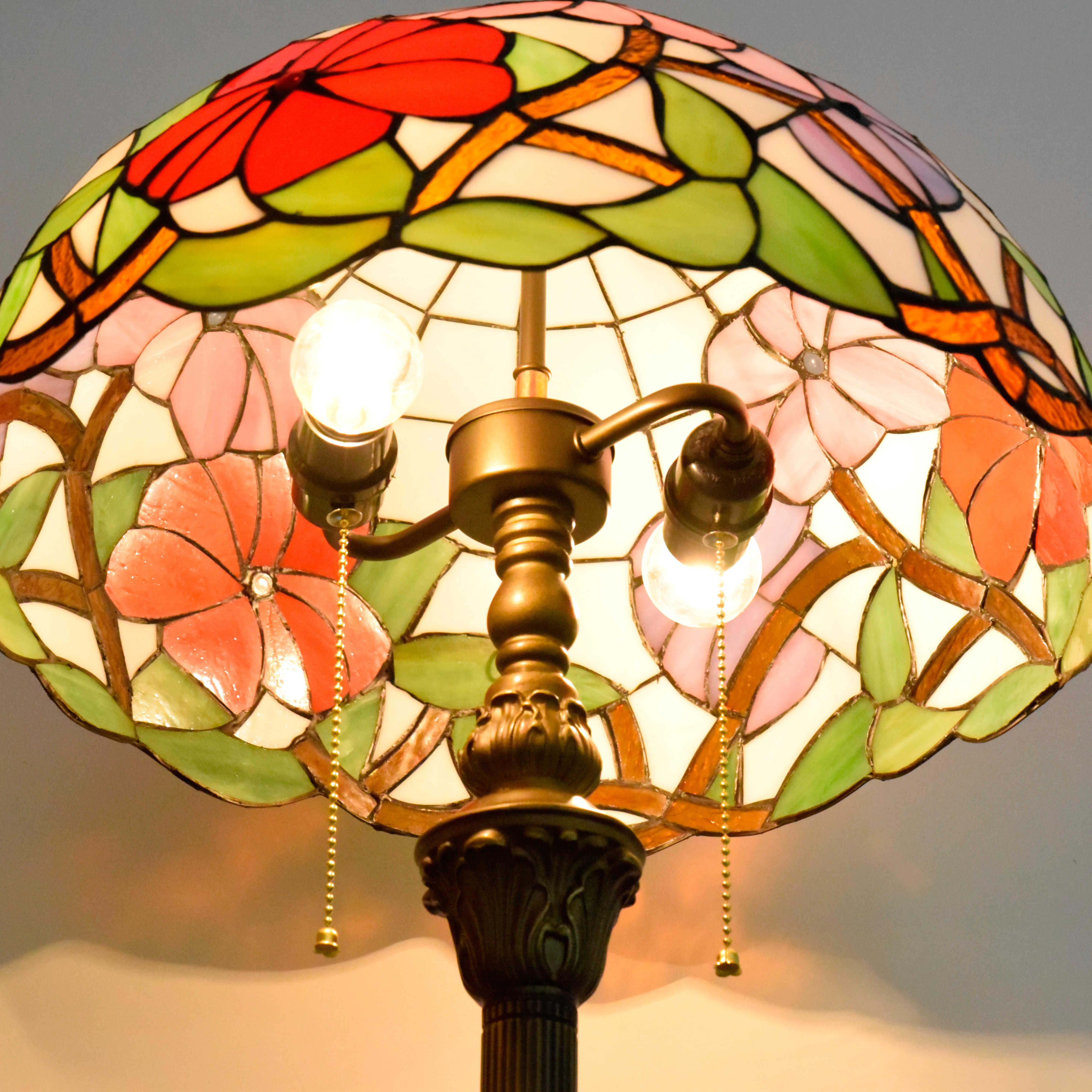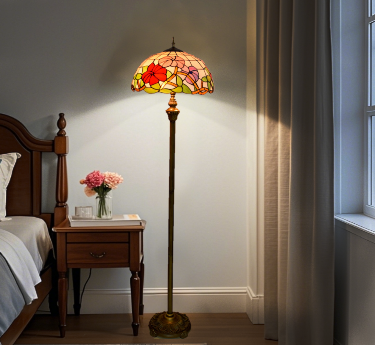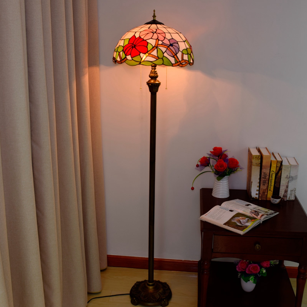 Product name: Blivuself Tiffany 16-inch morning glory - Four-legged bronze floor lamp - three-color flower