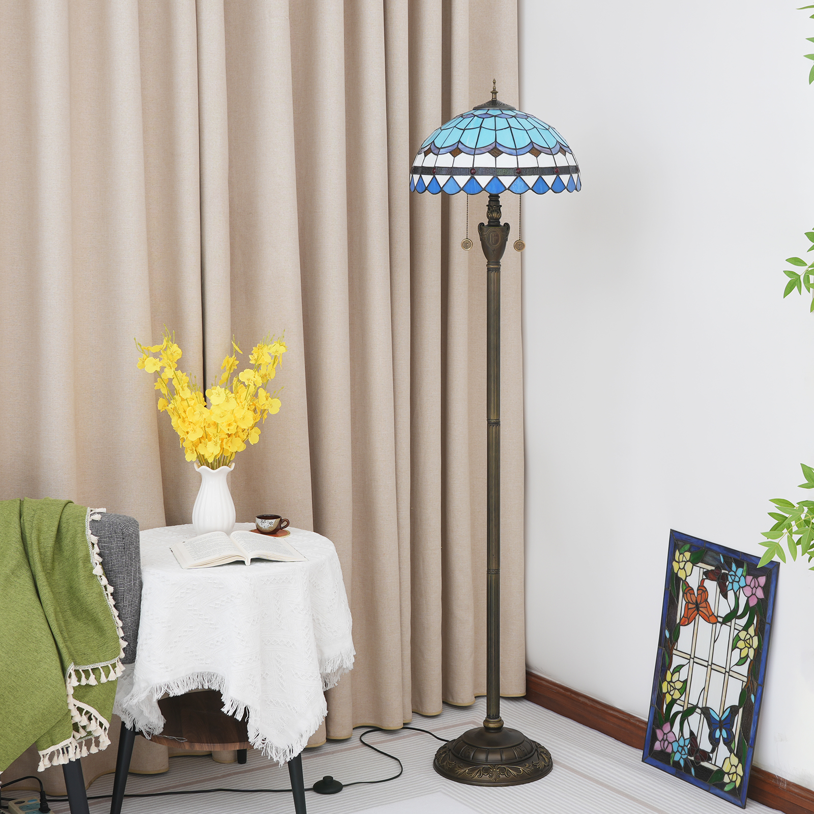 Product name: Tiffany OF 16 inch Mediterranean-of floor lamp - feather