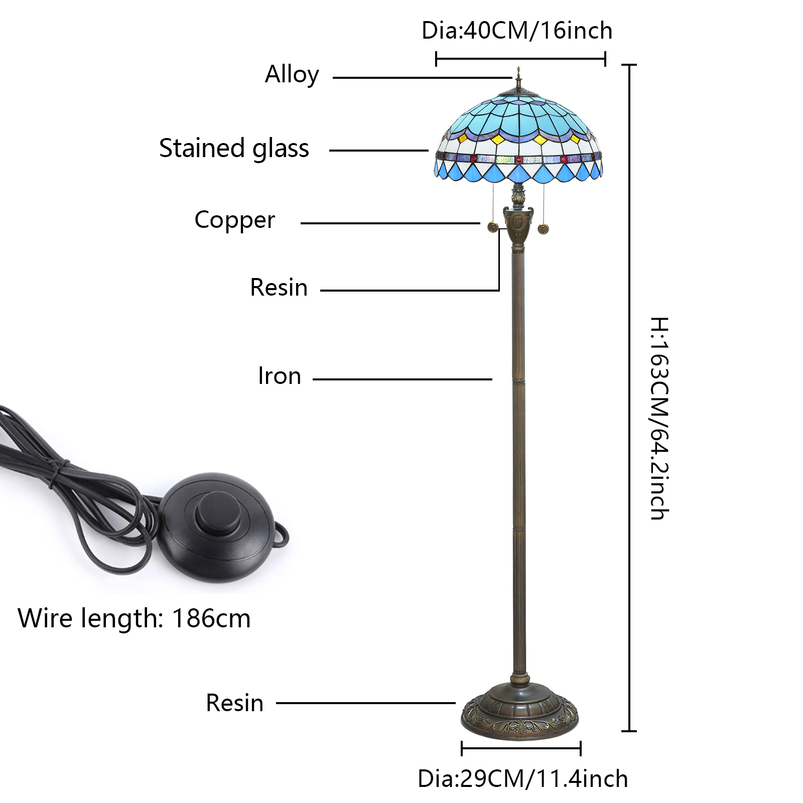 Product size Lamp diameter: 40CM lamp height: 163CM