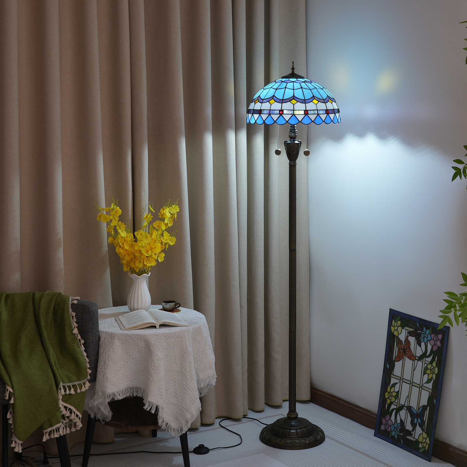 Material: Stained glass lamp shade, accessory material: resin