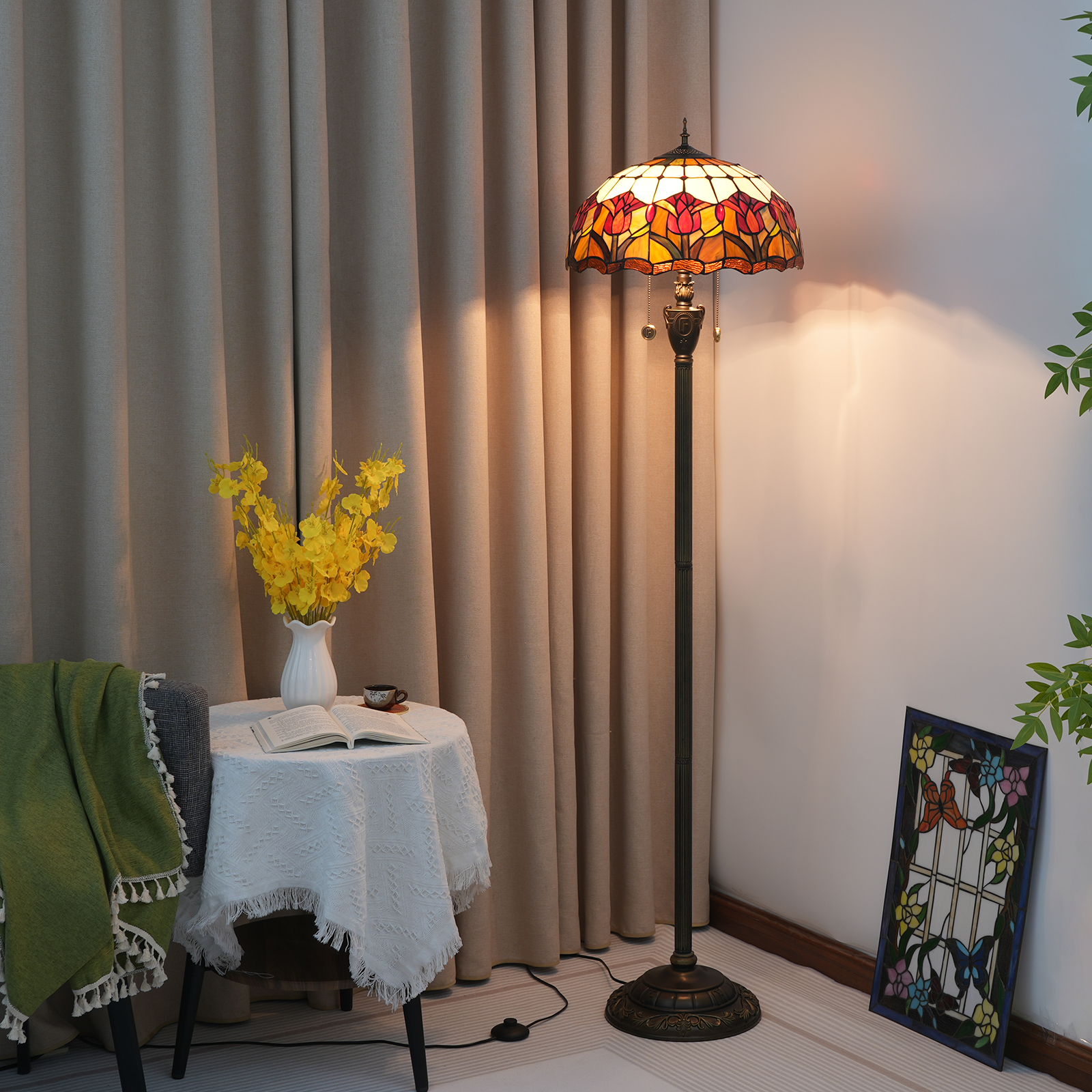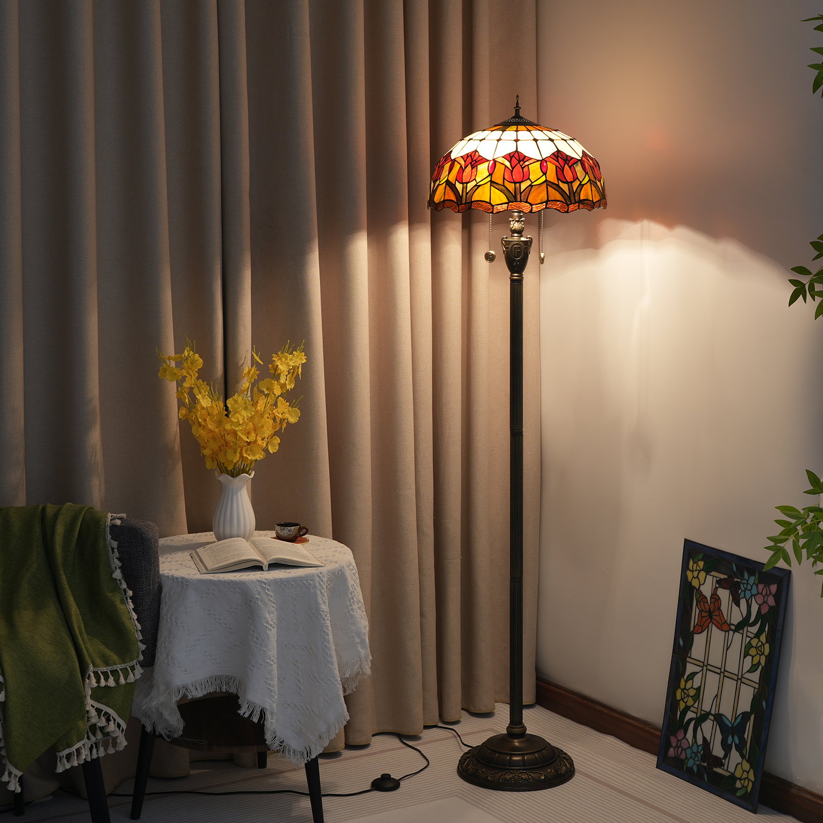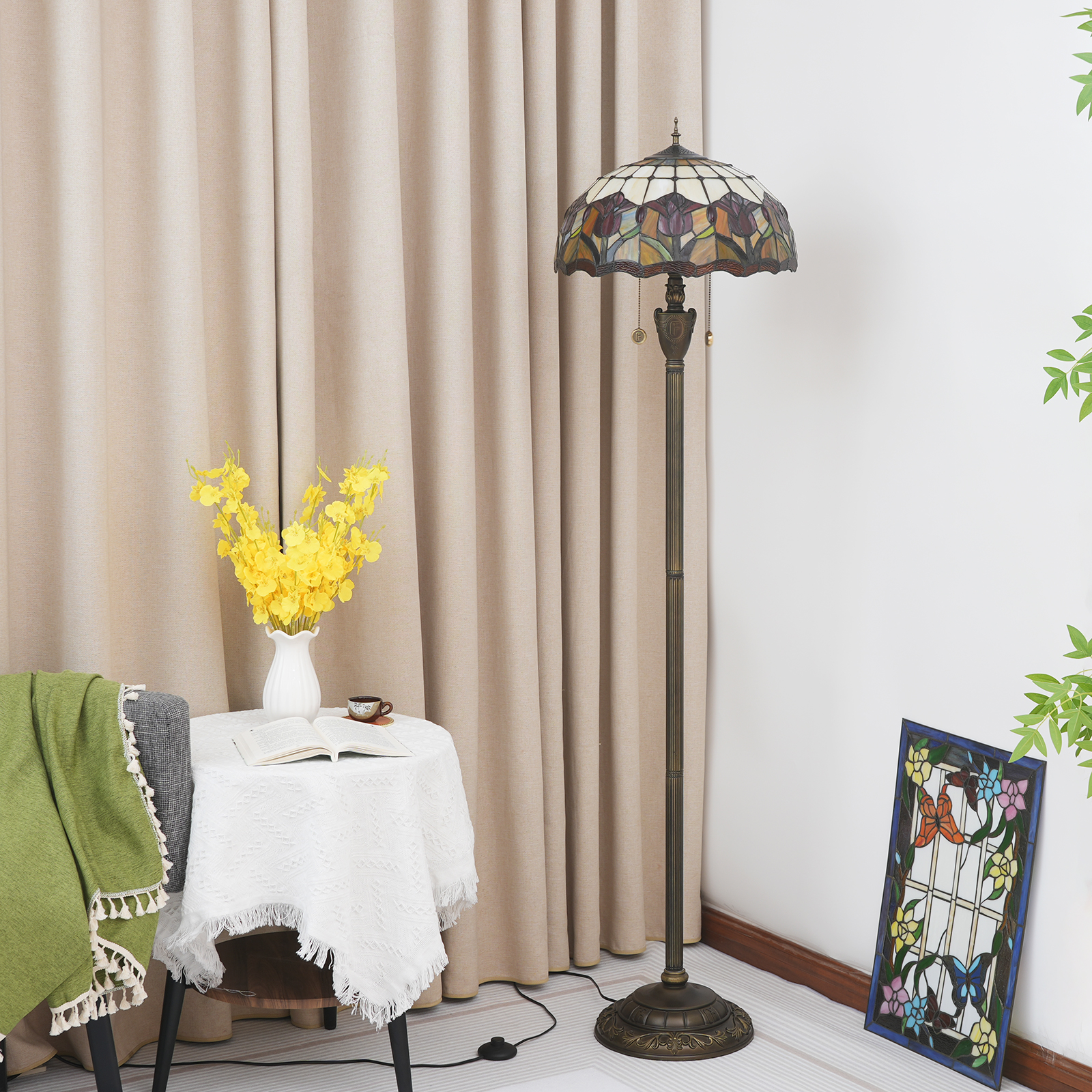 Material: Stained glass lamp shade, accessory material: resin