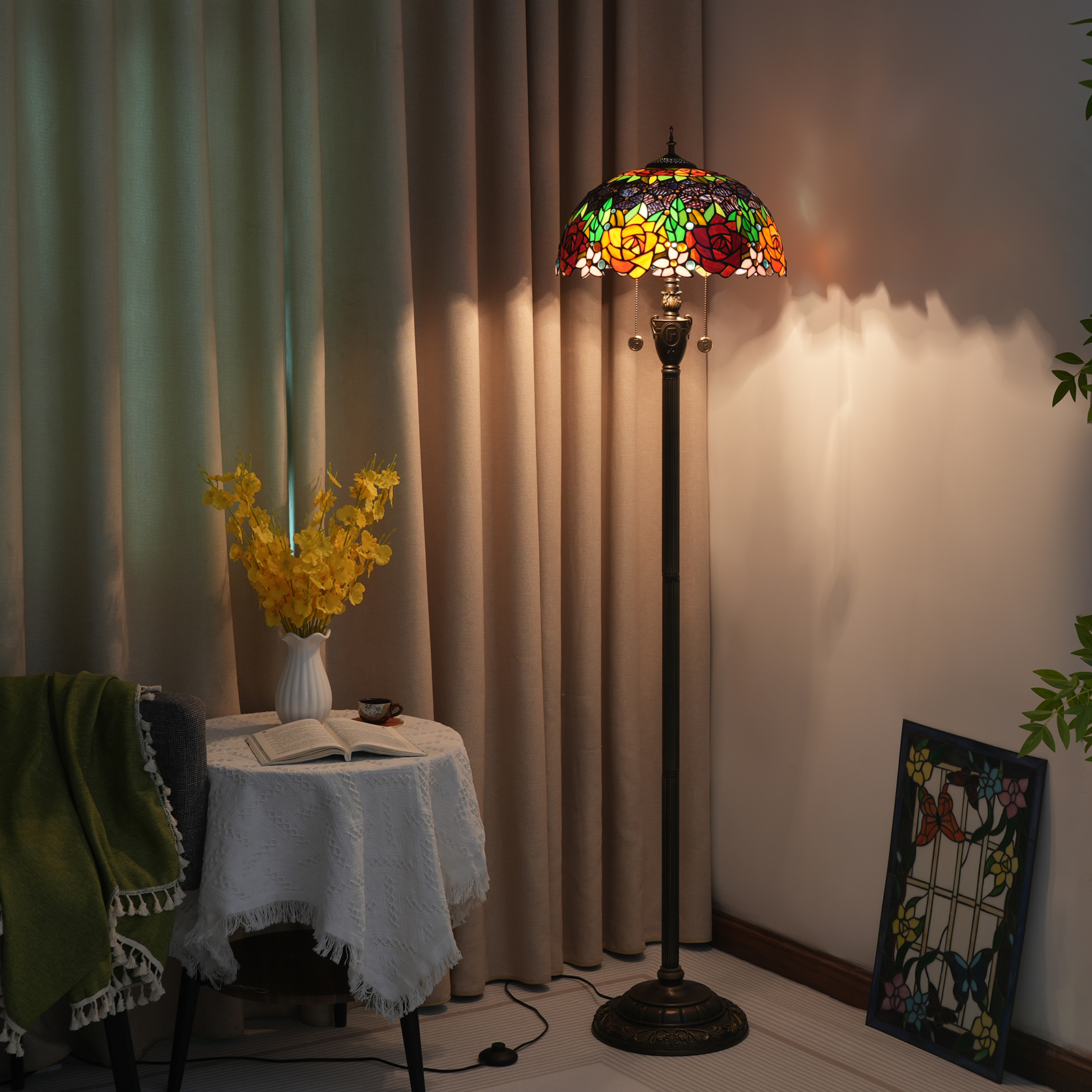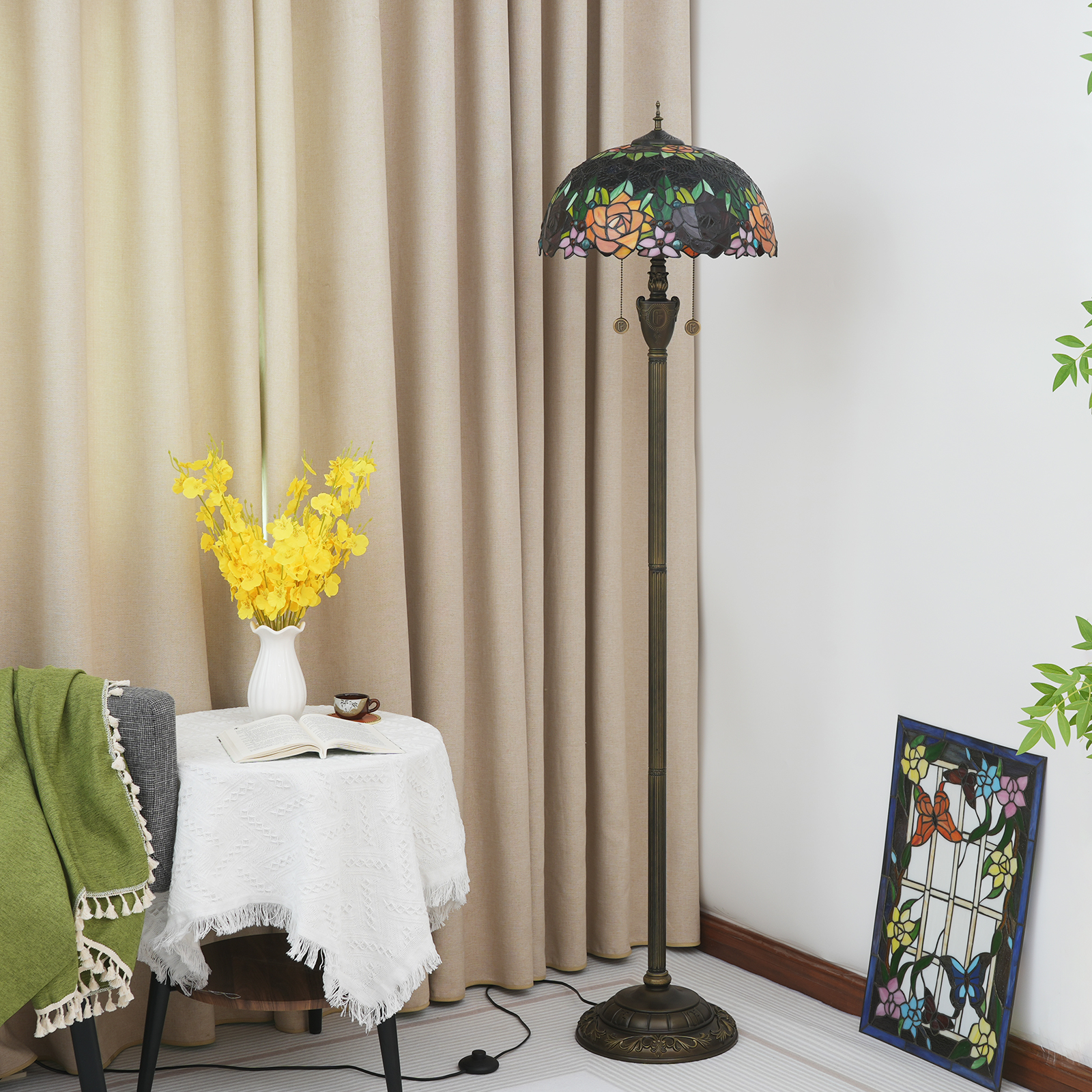 Product name: Tiffany OF 16 inch black rose -OF floor lamp