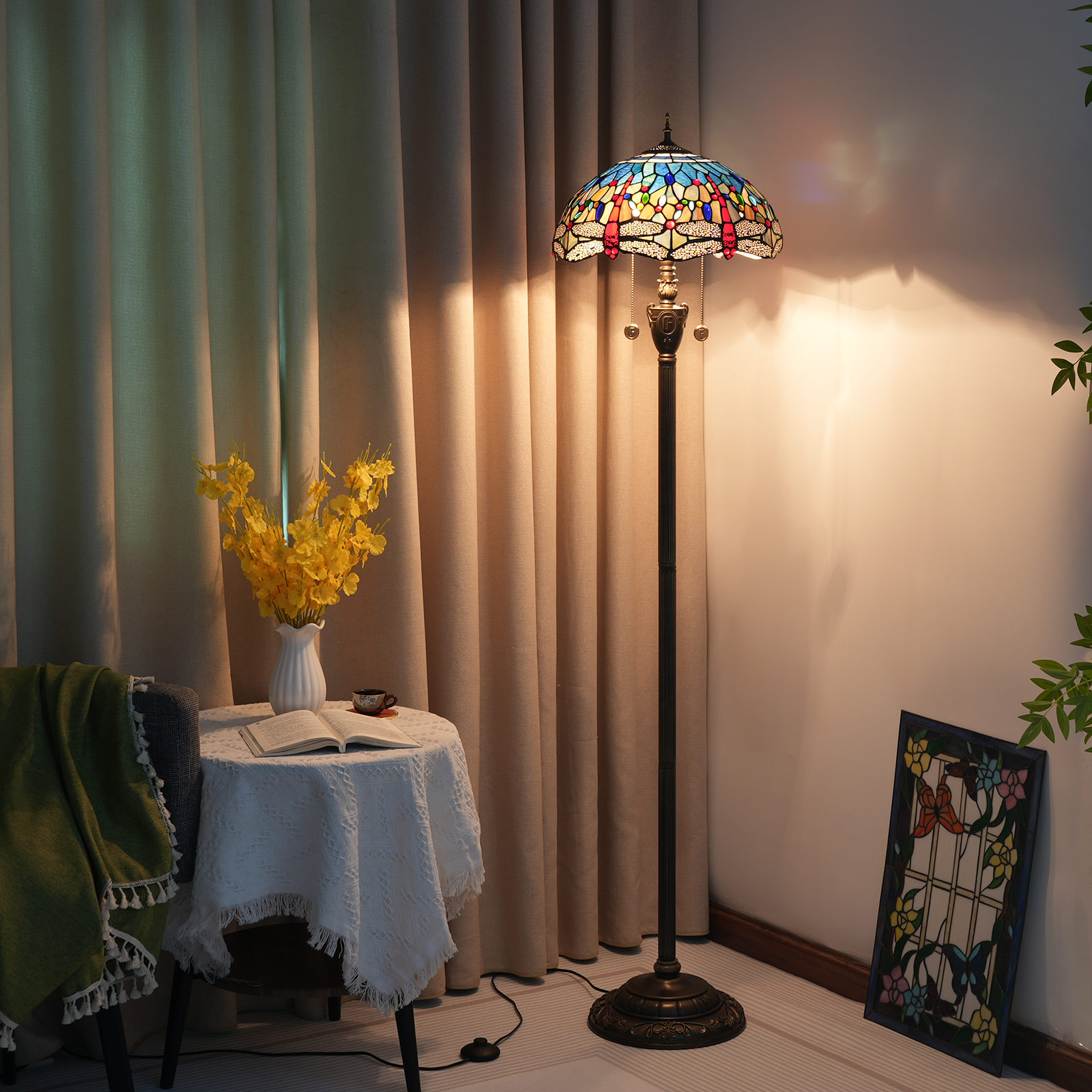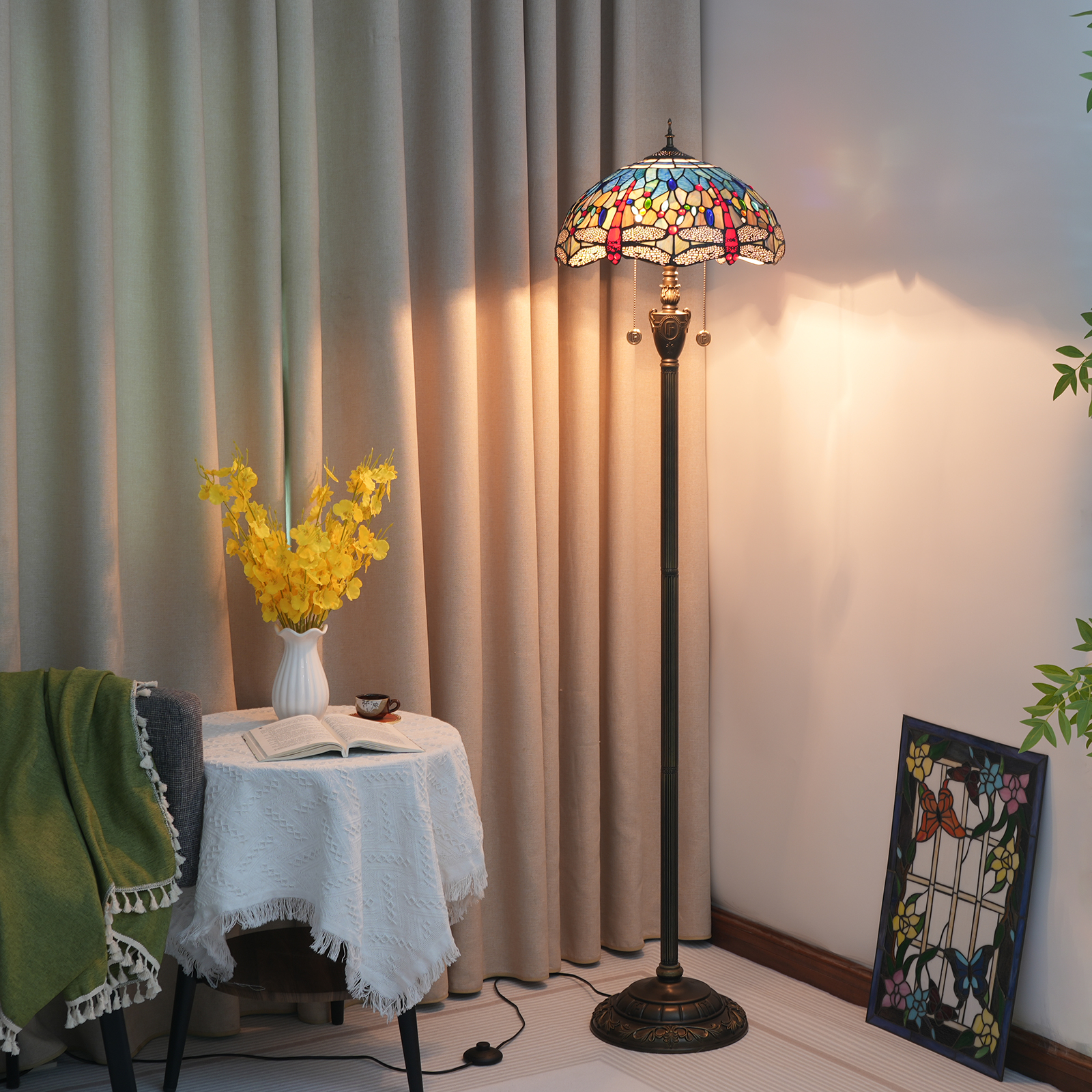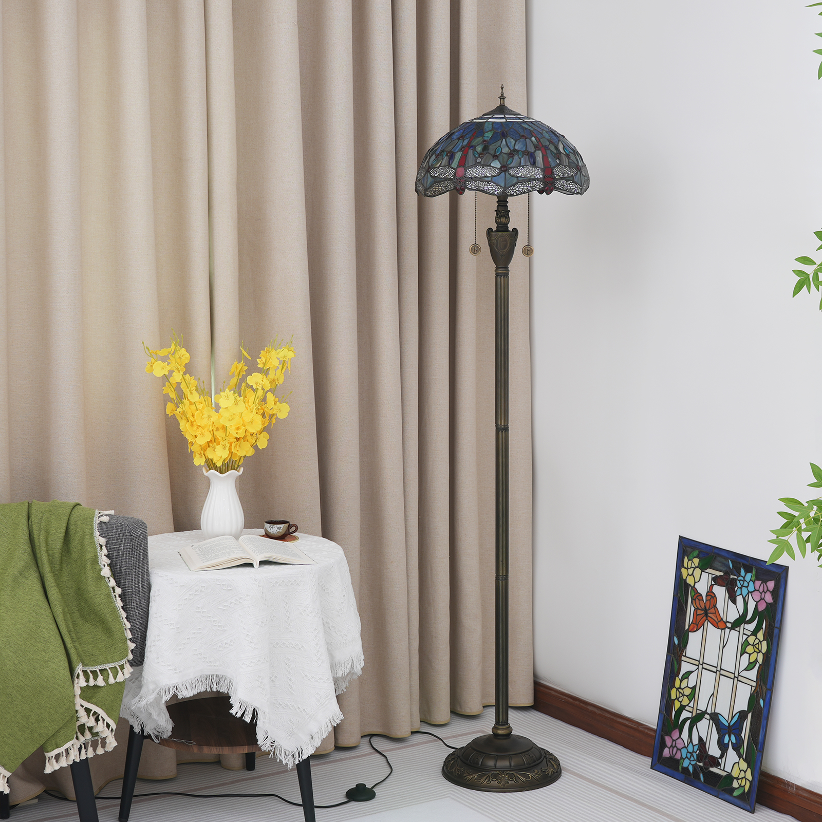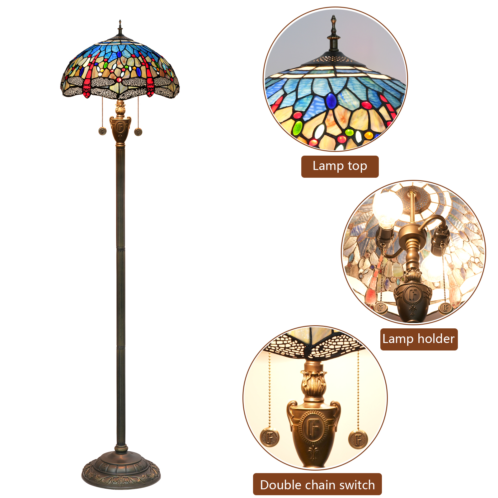 Product name: Tiffany OF 16 inch blue bottom dragonfly -OF floor lamp