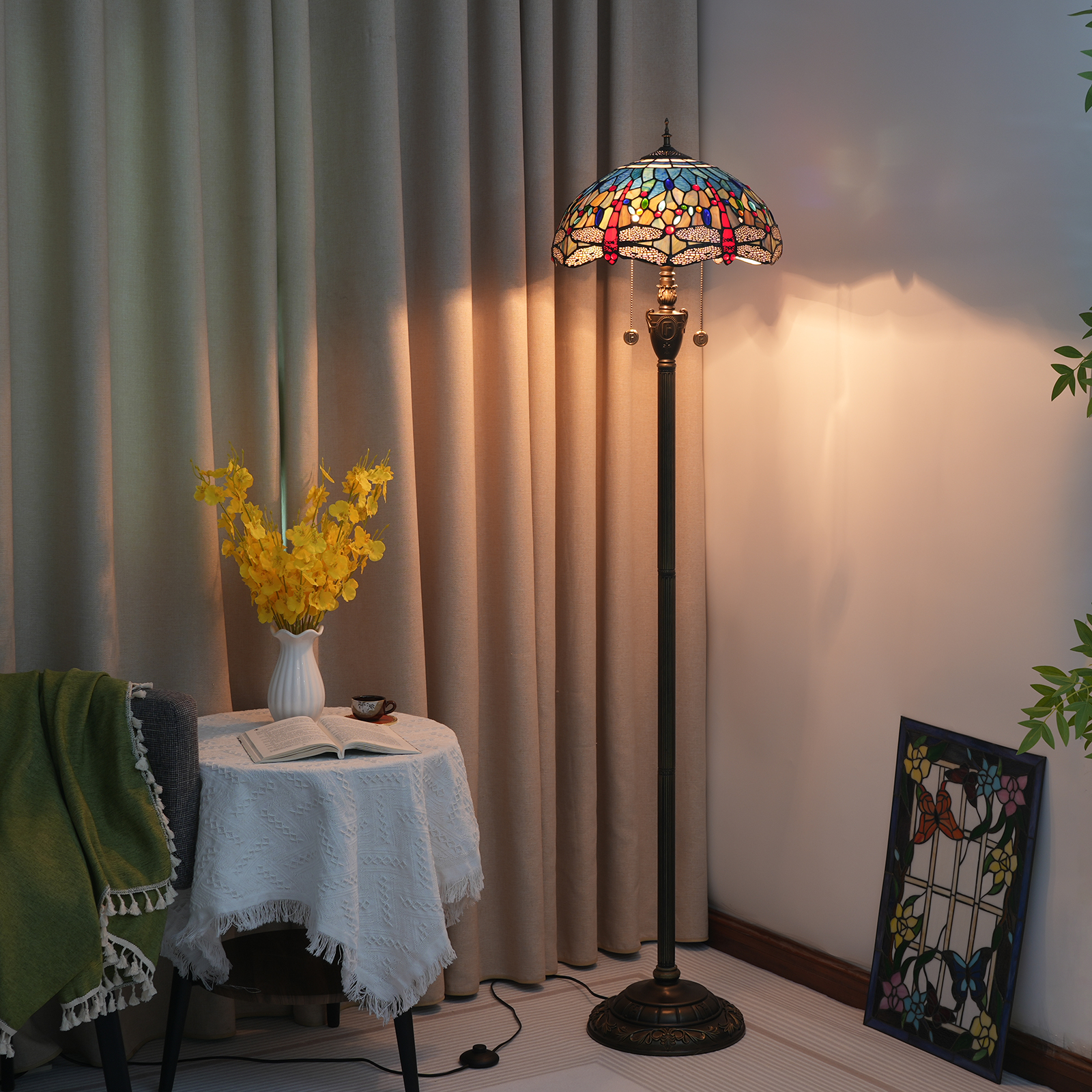 Material: Stained glass lamp shade, accessory material: resin