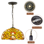 Blivuself Tiffany Style Stained Glass 12 Inch Brown Chandelier European And American Retro Garden Style Suitable For Living Room, Dining Room, Bedroom, Bar And Other Indoor Home Decoration 12 Inch Sunflower - Regular Single Chain Chandelier OFP1175
